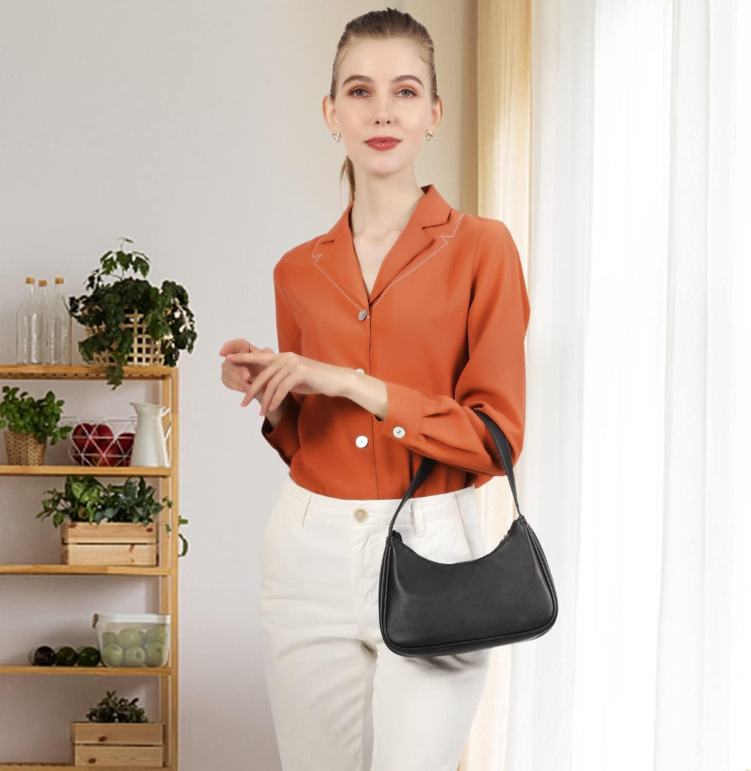imageLoiral Small Purse for Women Retro Classic Tote HandBag Shoulder Bags Clutch Purse1 Black Pro Leather