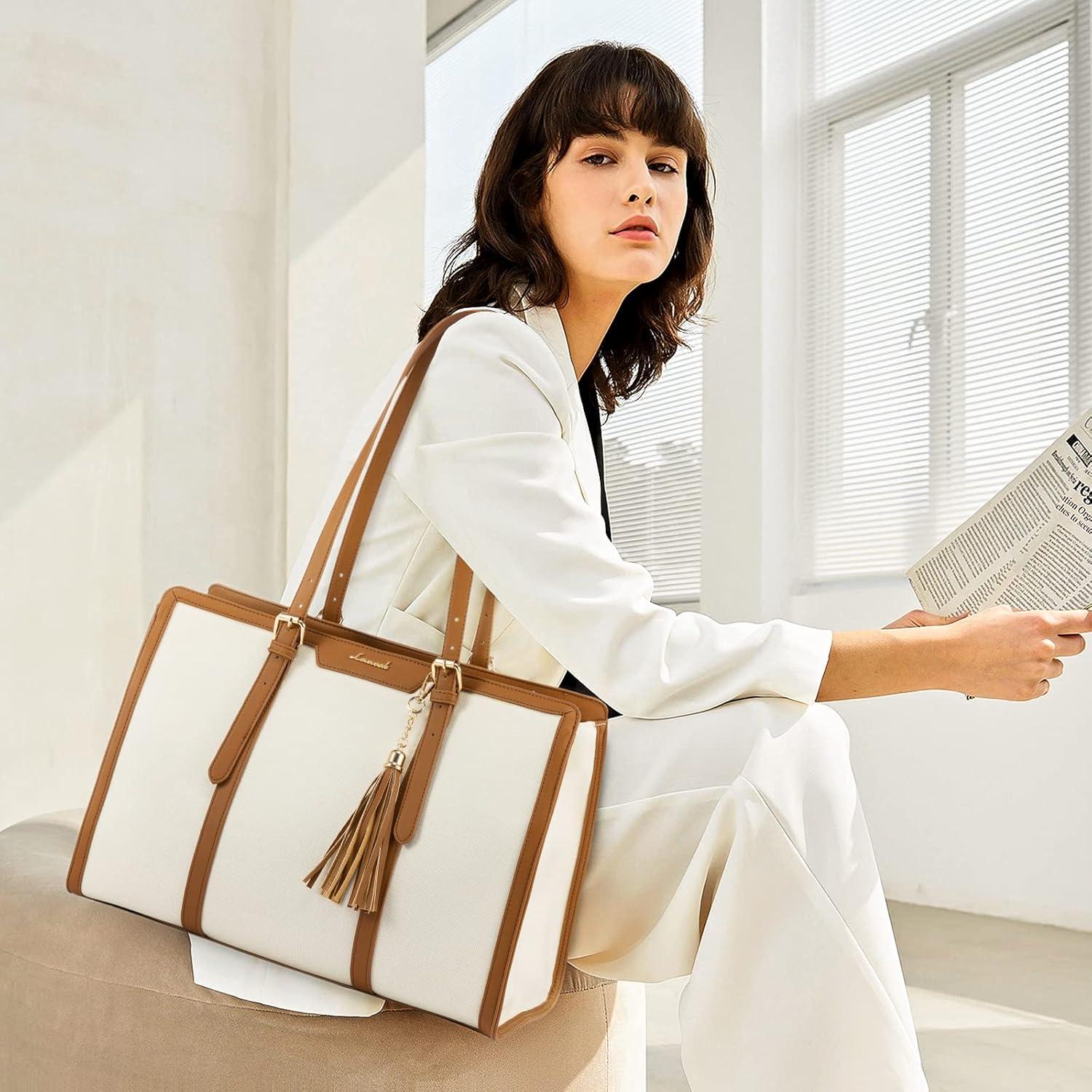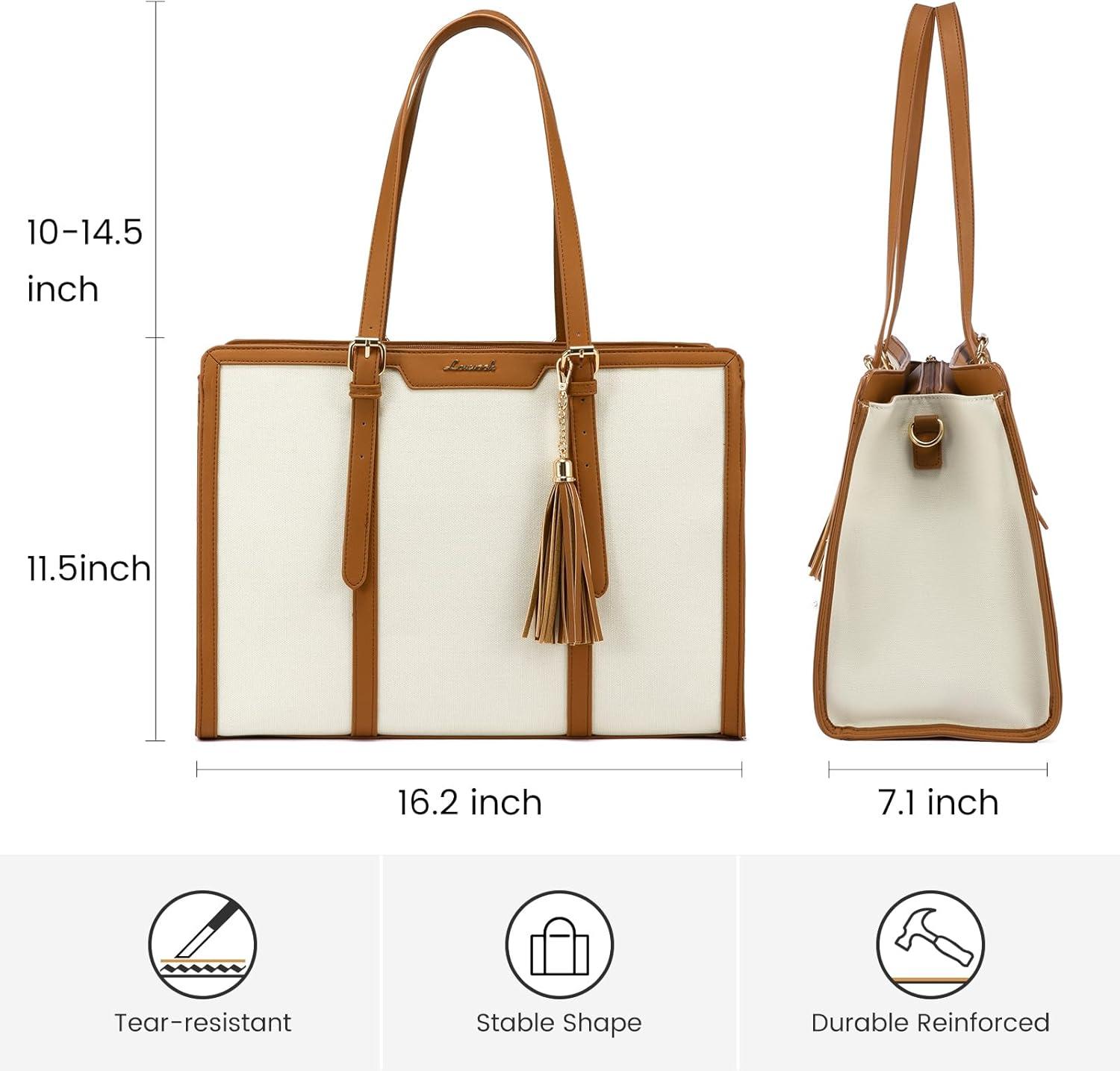 【Elegant & High Quality Laptop Tote Bag】 Our laptop purse is made of waterproof and wear-resistant canvas material, high quality PU leather edge embellishment. Tassel pendants add a sense of style to our cute laptop bag, keep our womens briefcase balanced and coordinated to keep it elegant at work and business.