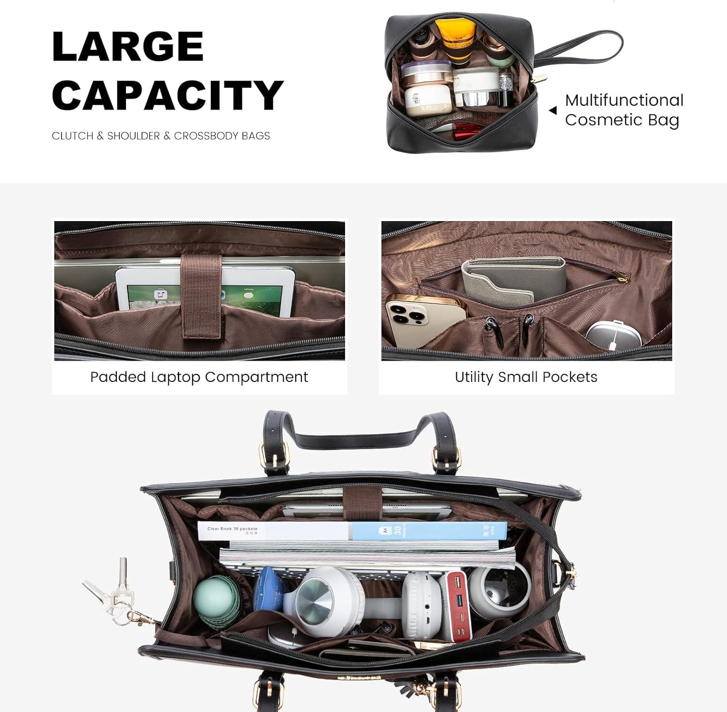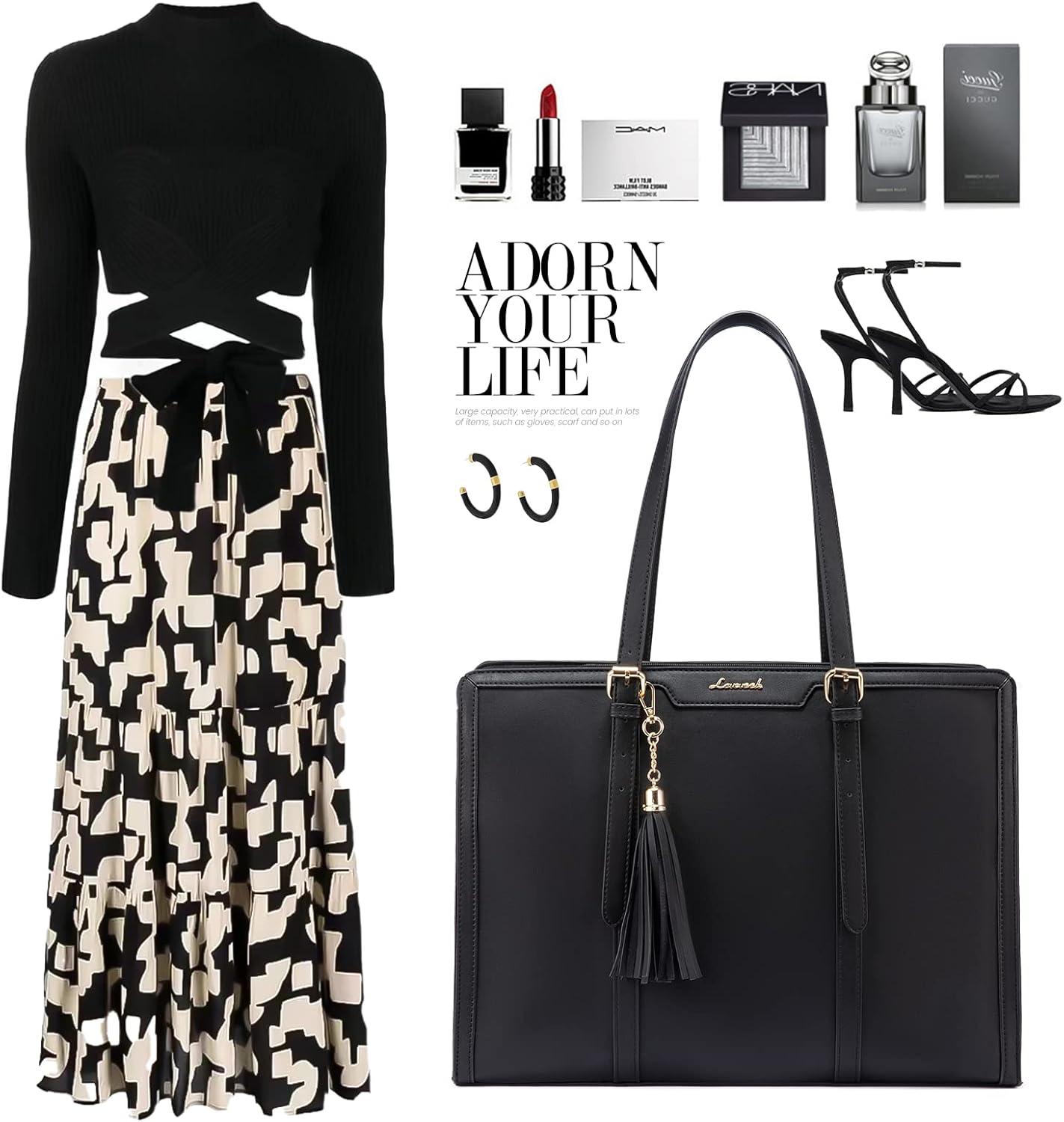 【Elegant & High Quality Laptop Tote Bag】 Our laptop purse is made of waterproof and wear-resistant canvas material, high quality PU leather edge embellishment. Tassel pendants add a sense of style to our cute laptop bag, keep our womens briefcase balanced and coordinated to keep it elegant at work and business.