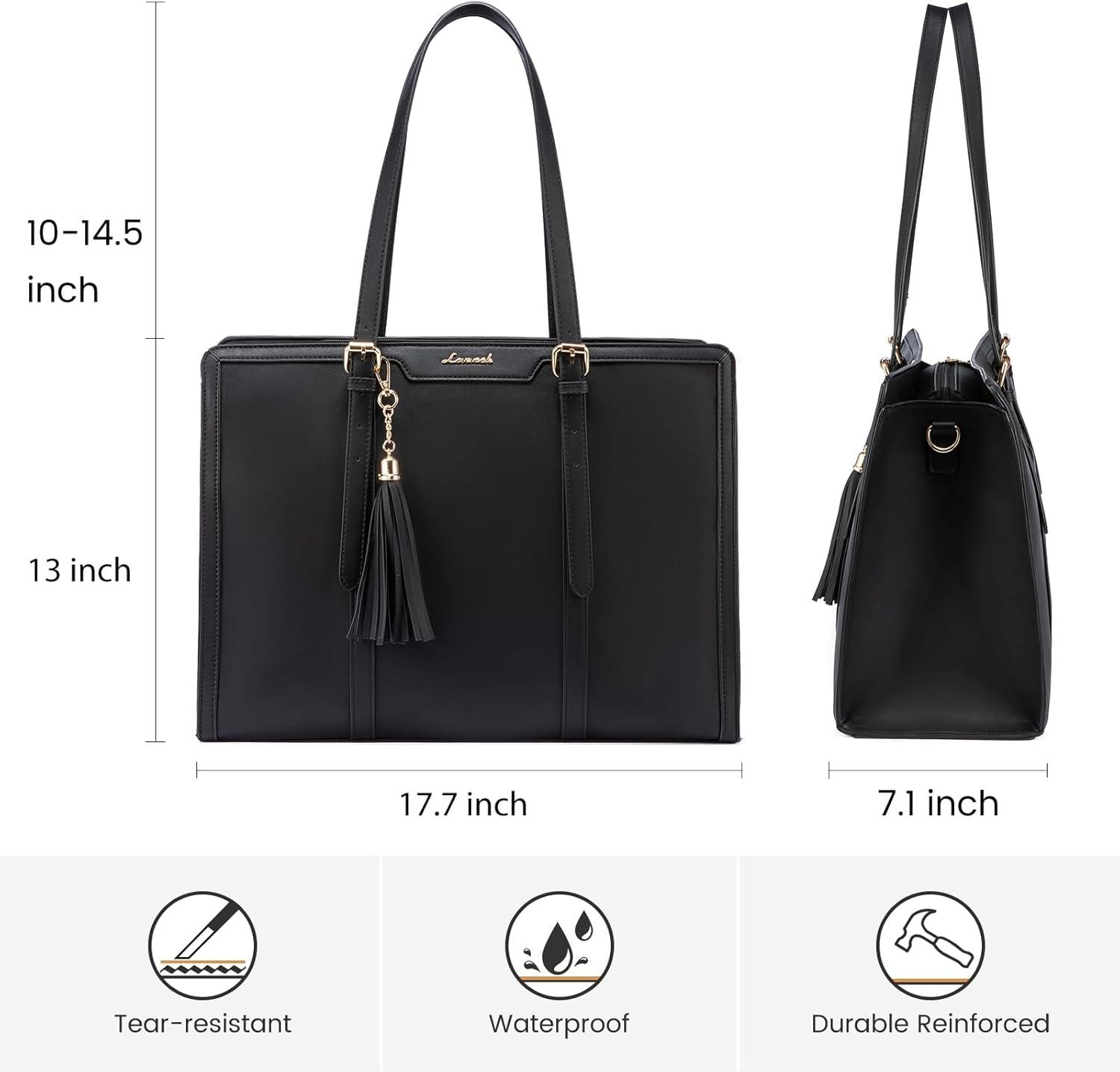 【Elegant & High Quality Laptop Tote Bag】 Our laptop purse is made of waterproof and wear-resistant canvas material, high quality PU leather edge embellishment. Tassel pendants add a sense of style to our cute laptop bag, keep our womens briefcase balanced and coordinated to keep it elegant at work and business.