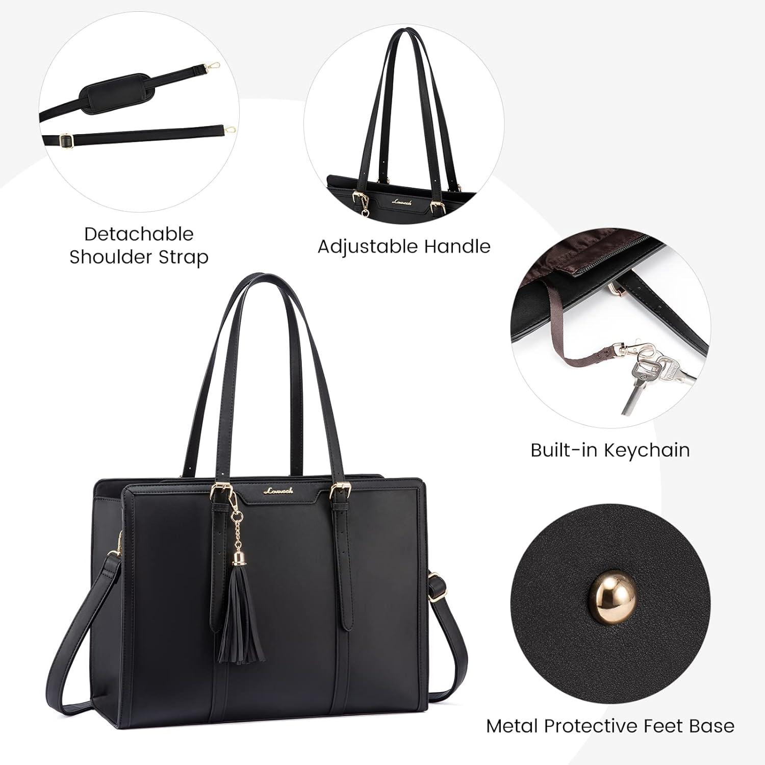 imageLOVEVOOK 156inch Canvas Laptop Tote with Clutch for Women  Lightweight Large Capacity for Work Travel SchoolBlack  Leather 1