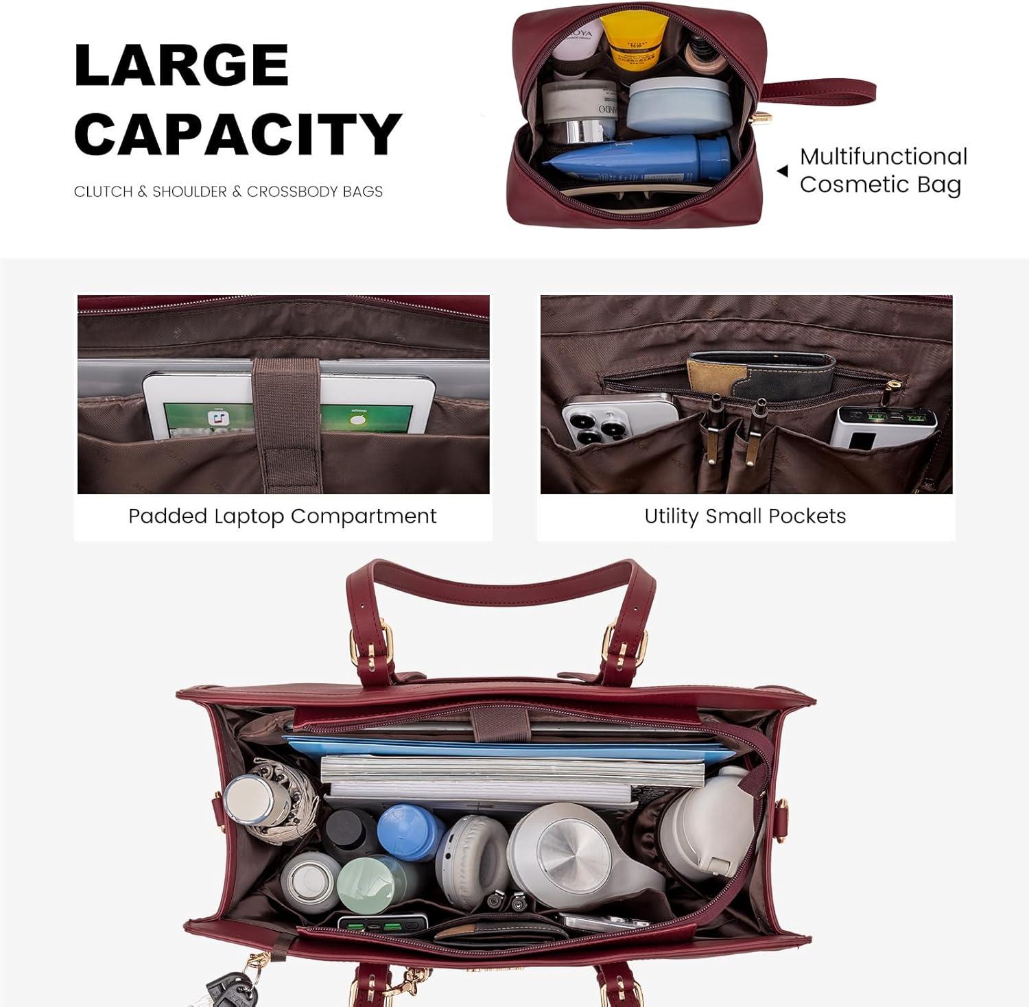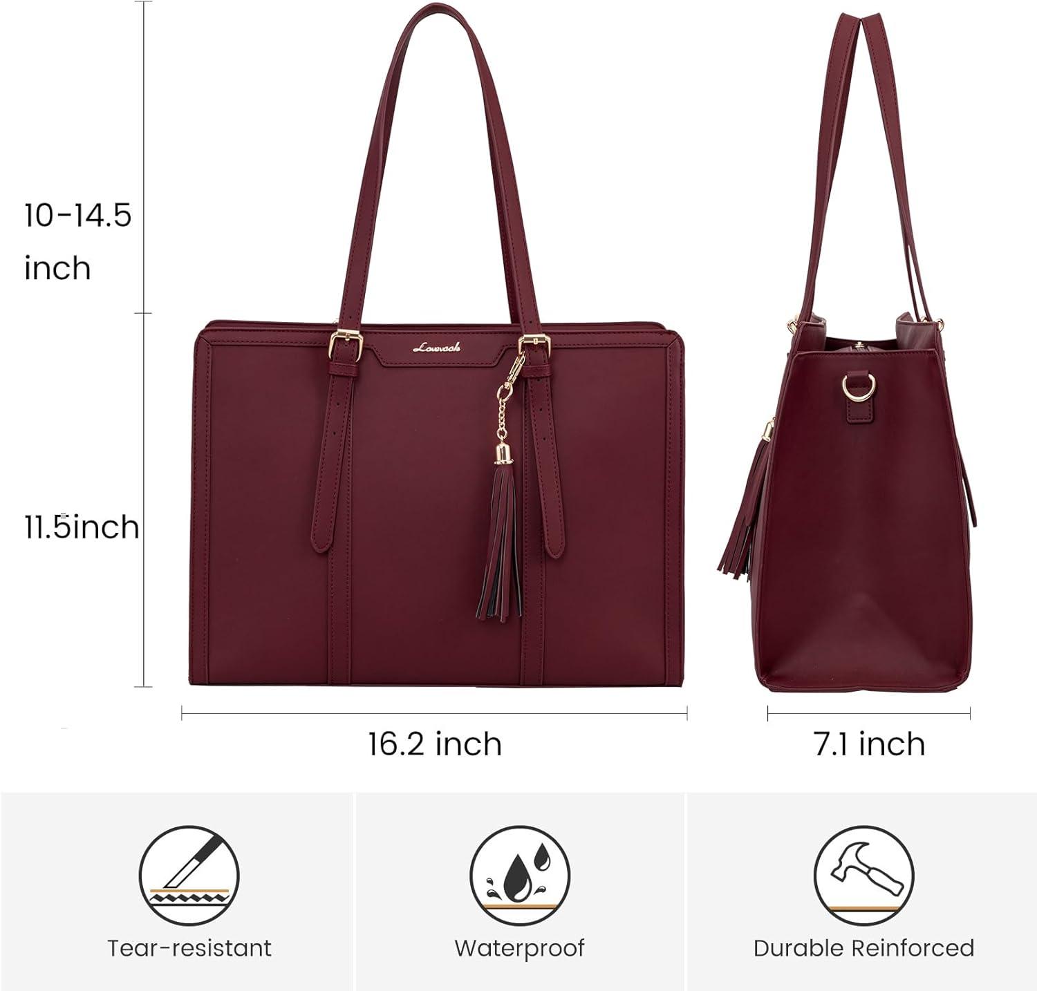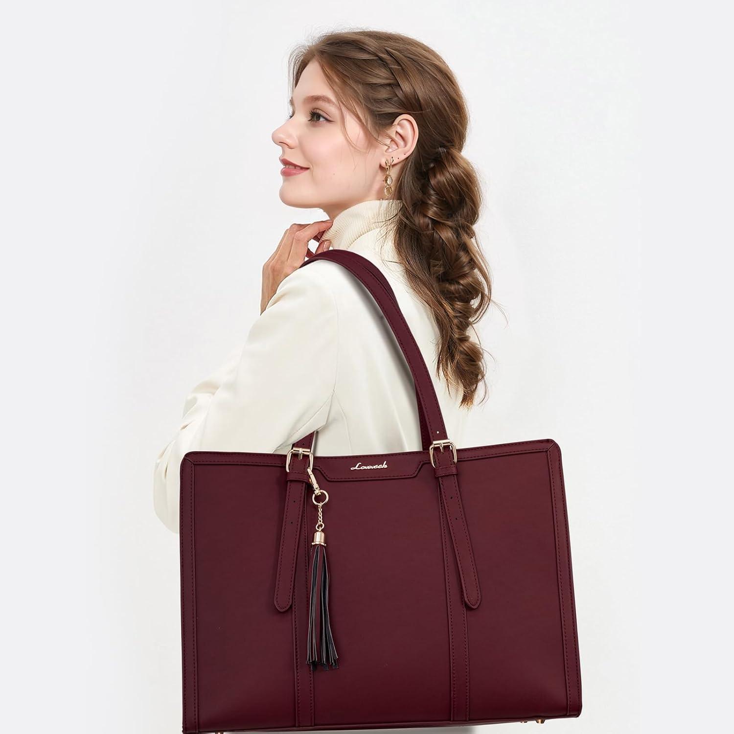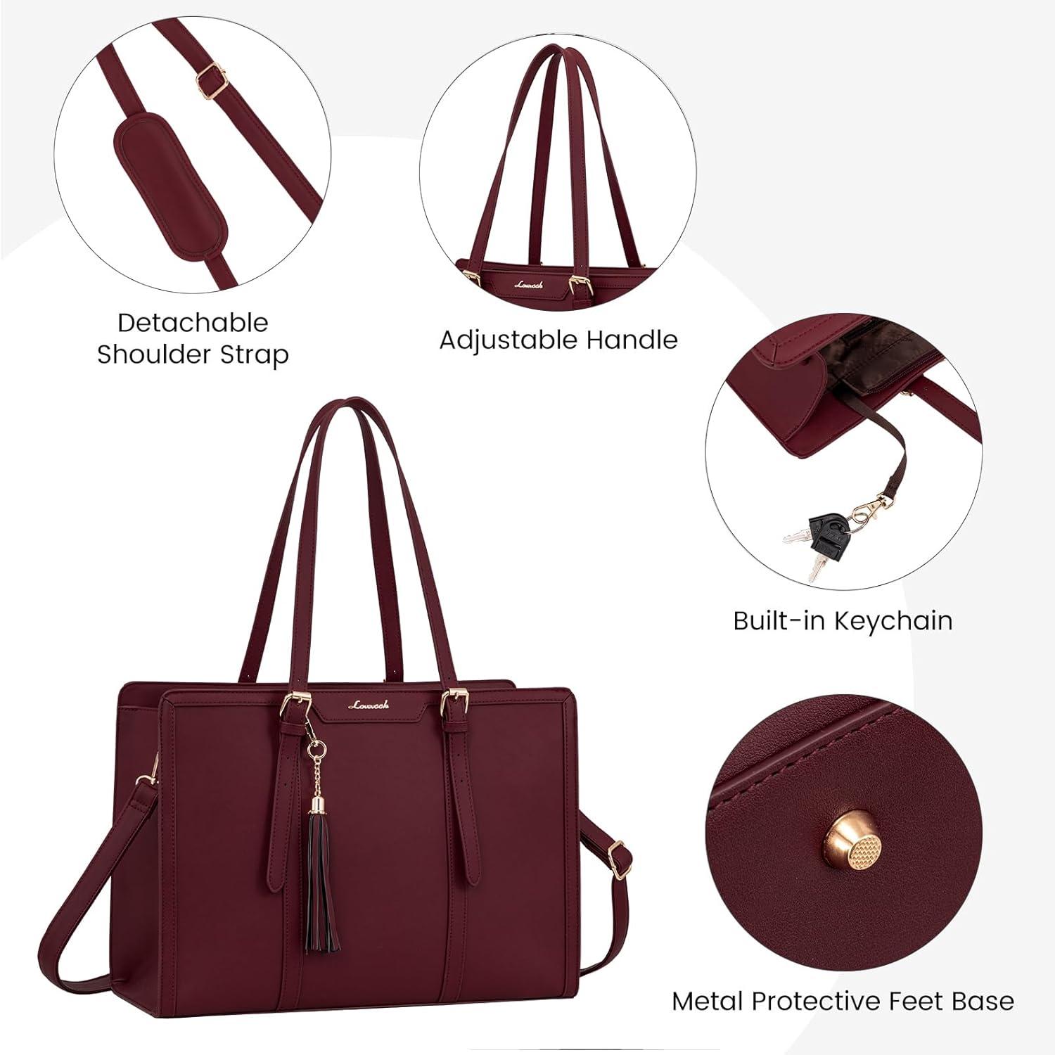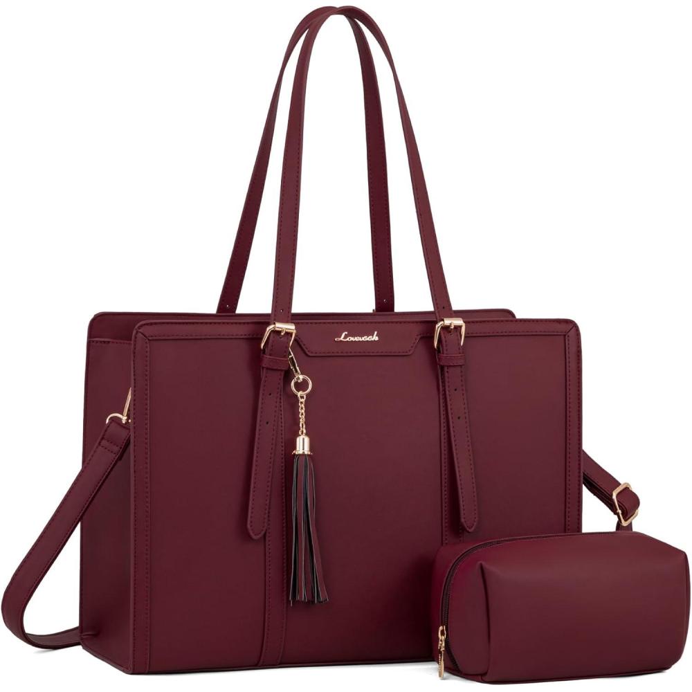 LOVEVOOK 15.6-inch Canvas Laptop Tote with Clutch for Women - Lightweight, Large Capacity for Work, Travel, School(Claret)