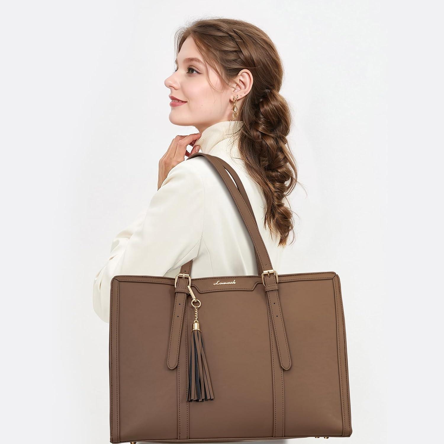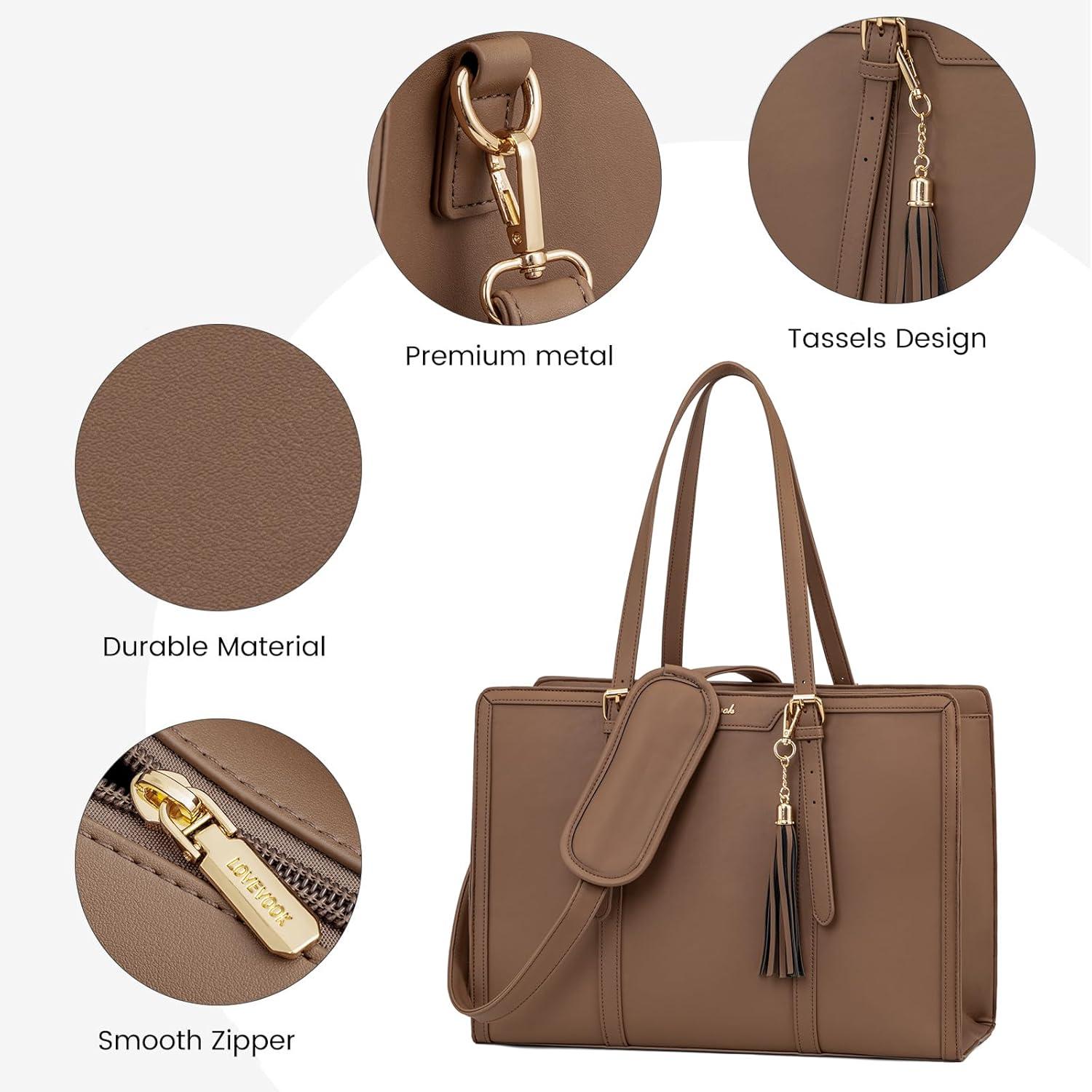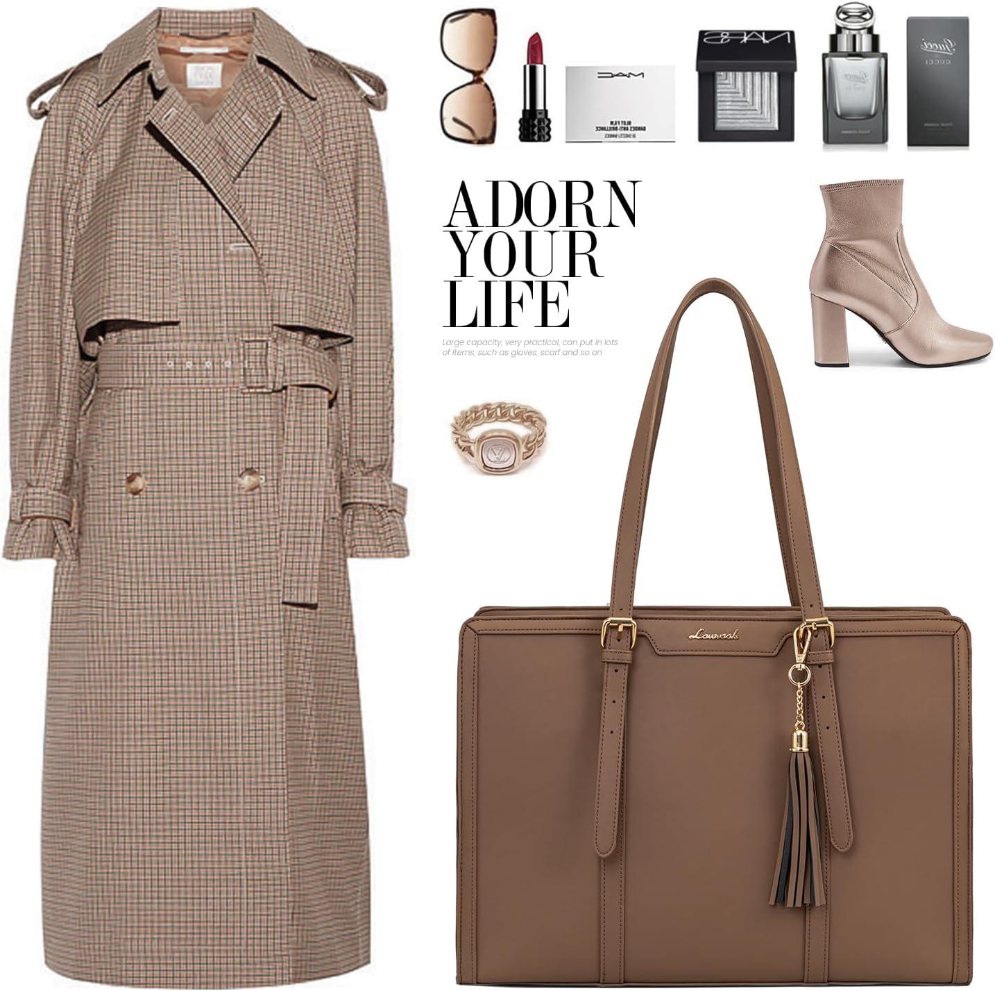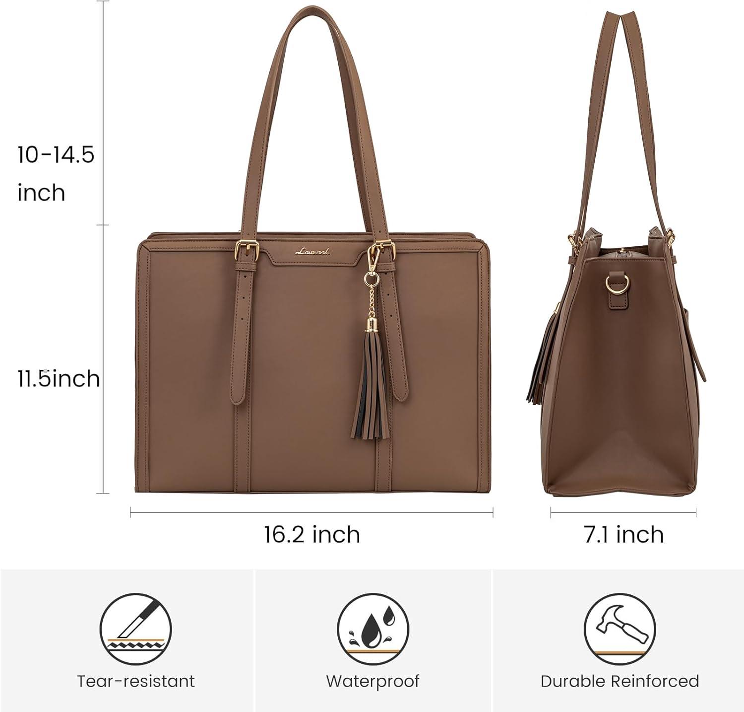 【Elegant & High Quality Laptop Tote Bag】 Our laptop purse is made of waterproof and wear-resistant canvas material, high quality PU leather edge embellishment. Tassel pendants add a sense of style to our cute laptop bag, keep our womens briefcase balanced and coordinated to keep it elegant at work and business.
