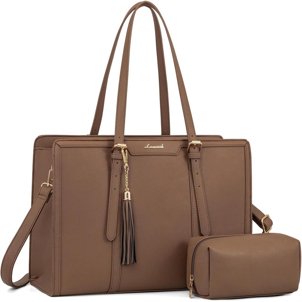 LOVEVOOK 15.6-inch Canvas Laptop Tote with Clutch for Women - Lightweight, Large Capacity for Work, Travel, School(Khaki)