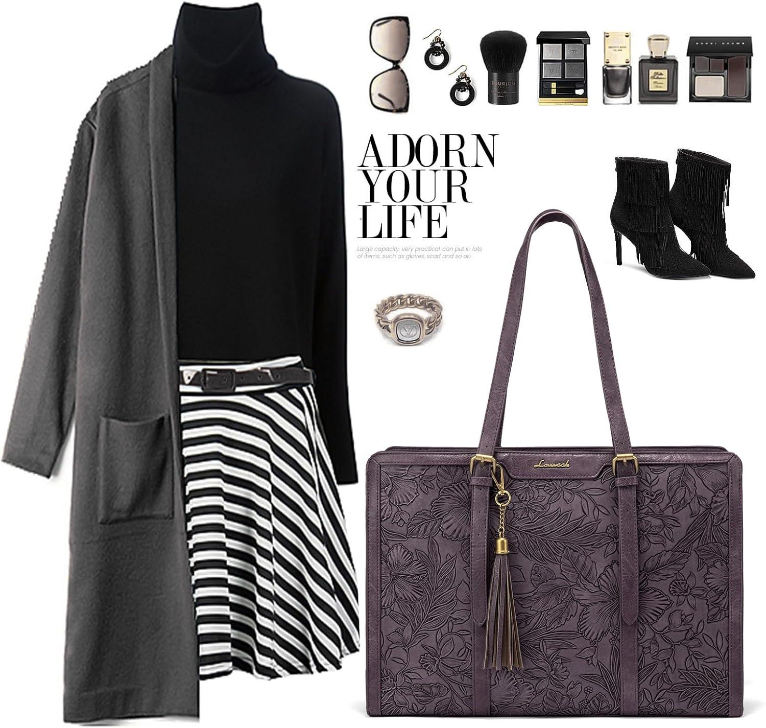imageLOVEVOOK 156inch Canvas Laptop Tote with Clutch for Women  Lightweight Large Capacity for Work Travel SchoolLight Maroon Embossedp