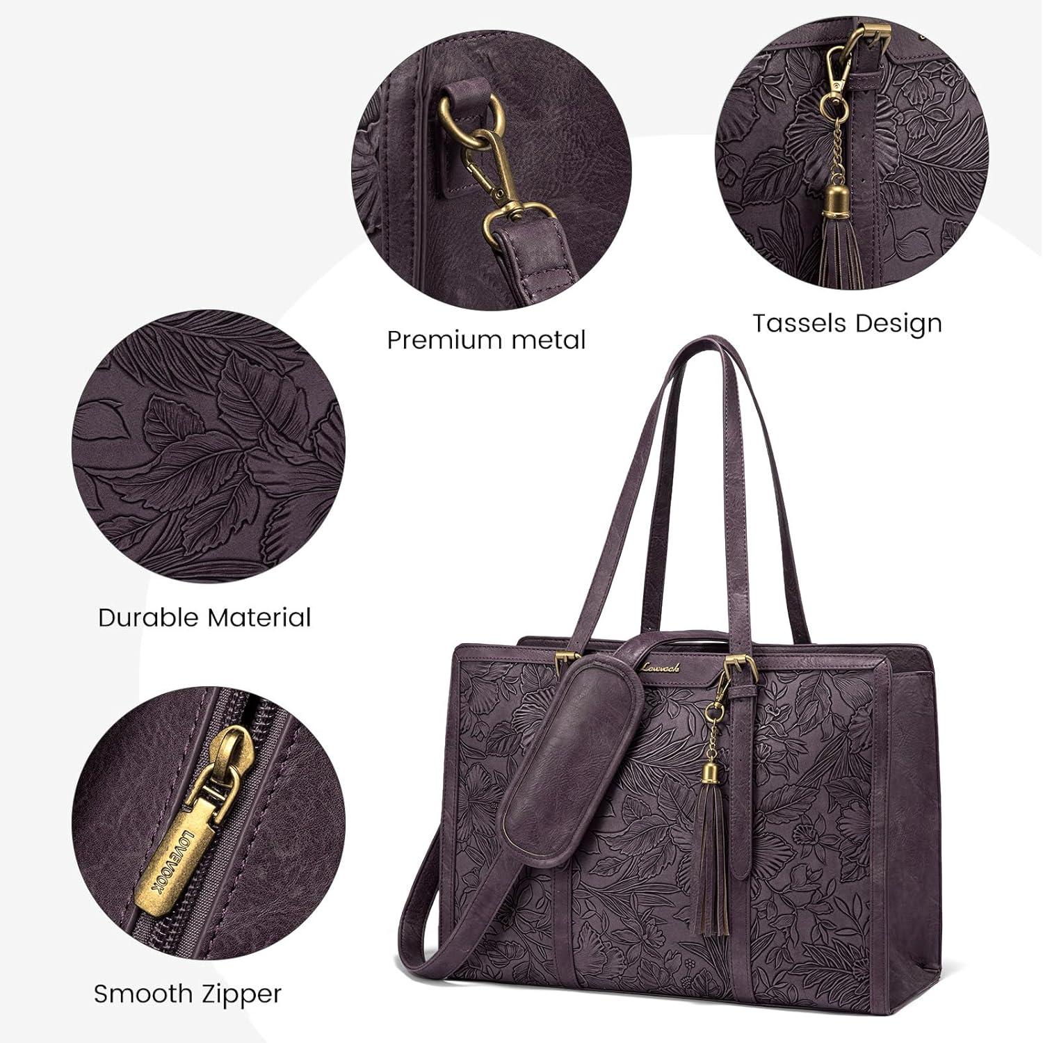 【Elegant & High Quality Laptop Tote Bag】 Our laptop purse is made of waterproof and wear-resistant canvas material, high quality PU leather edge embellishment. Tassel pendants add a sense of style to our cute laptop bag, keep our womens briefcase balanced and coordinated to keep it elegant at work and business.