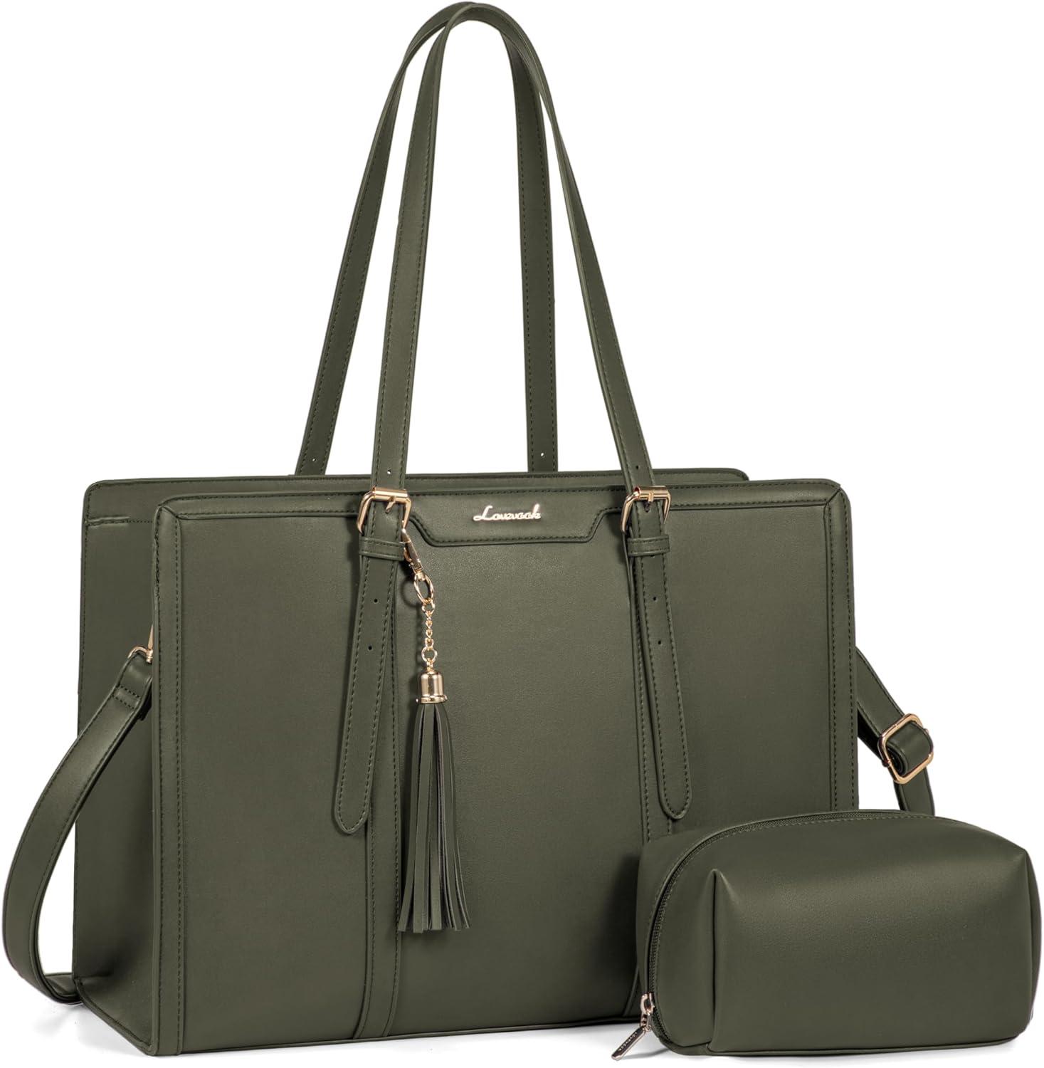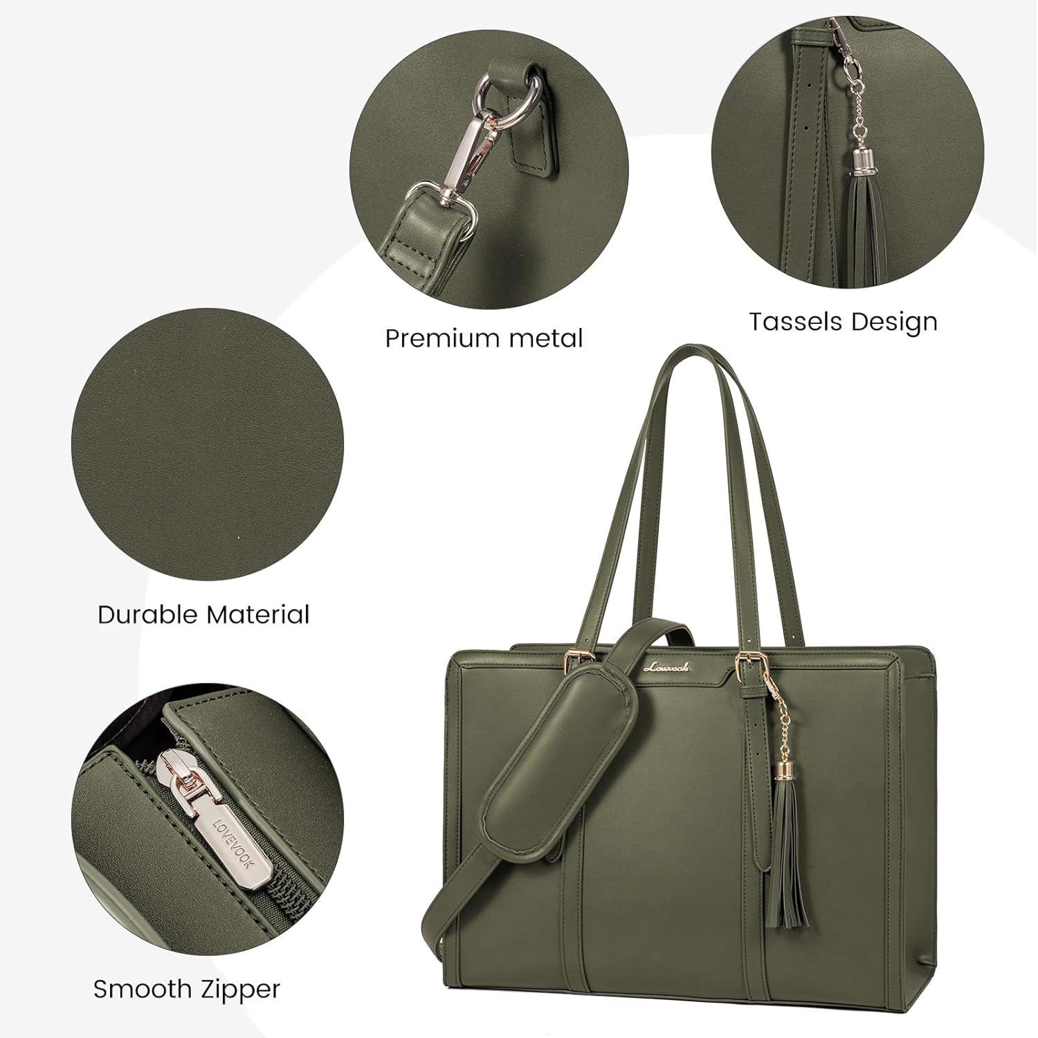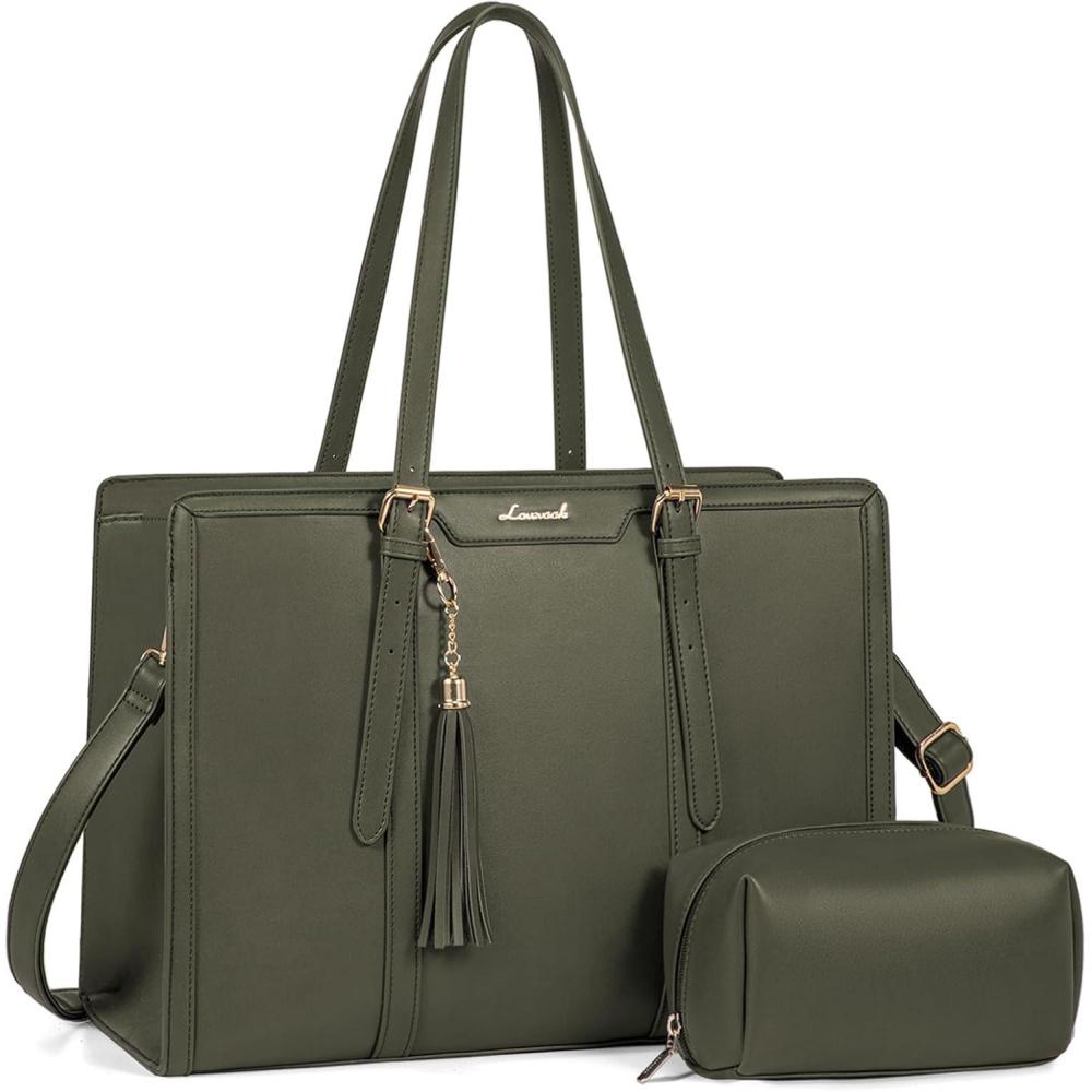 LOVEVOOK 15.6-inch Canvas Laptop Tote with Clutch for Women - Lightweight, Large Capacity for Work, Travel, School(Olive Green)