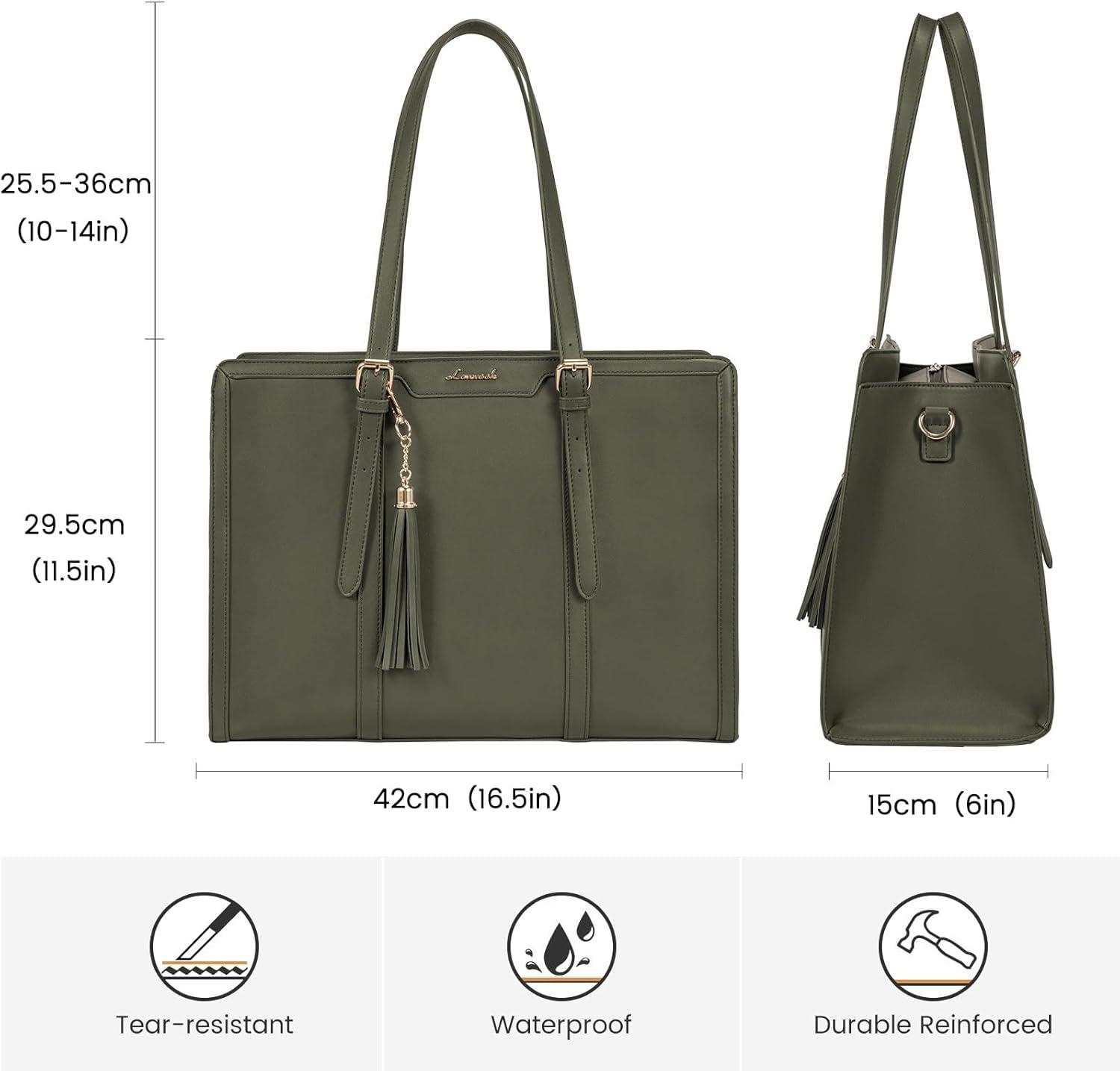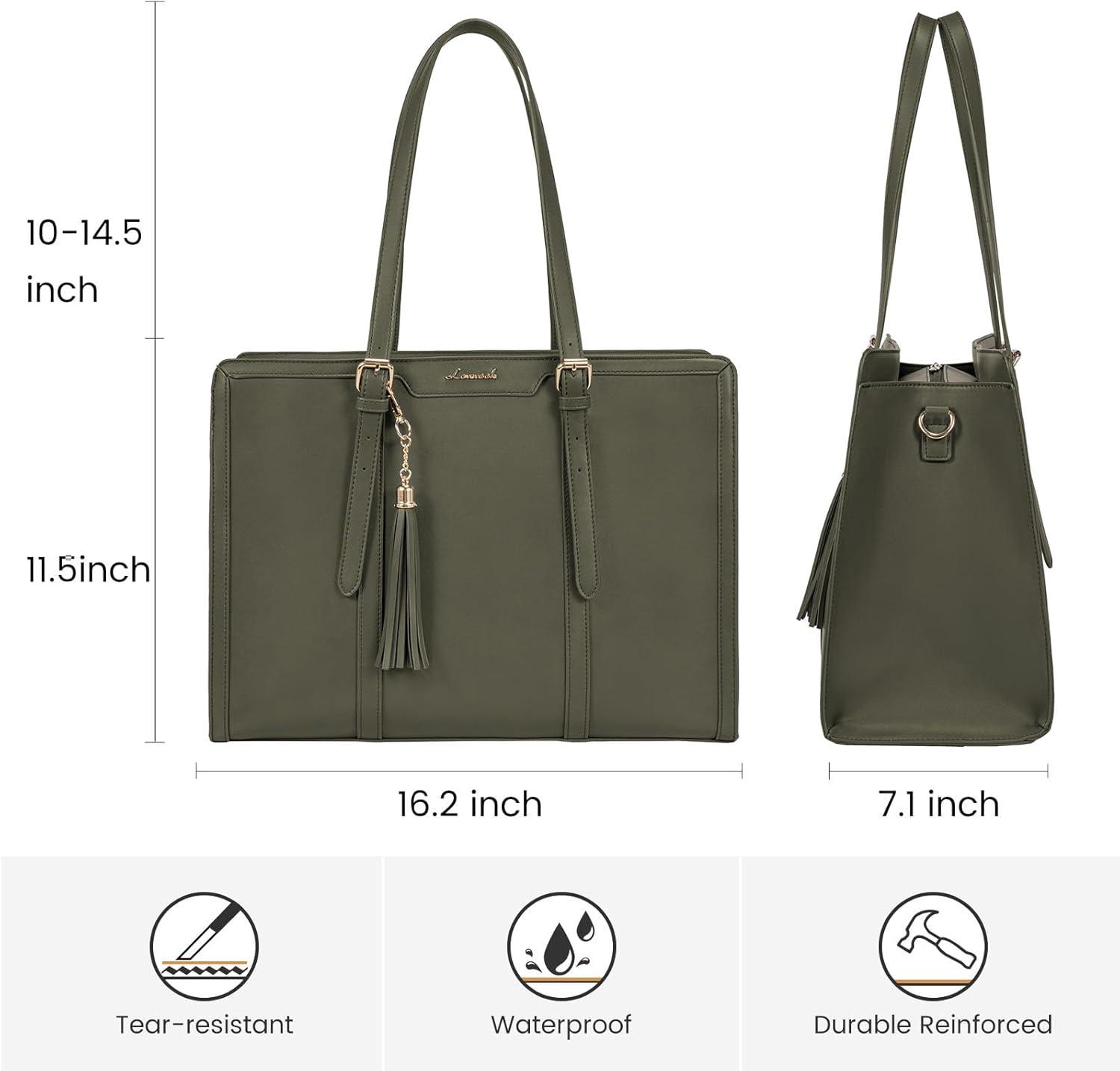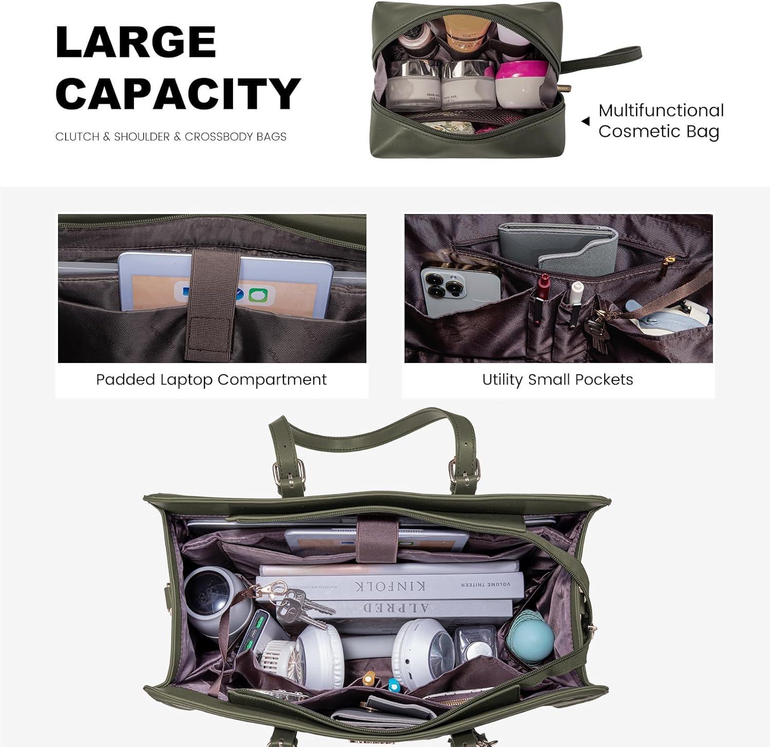 LOVEVOOK 15.6-inch Canvas Laptop Tote with Clutch for Women - Lightweight, Large Capacity for Work, Travel, School(Olive Green)