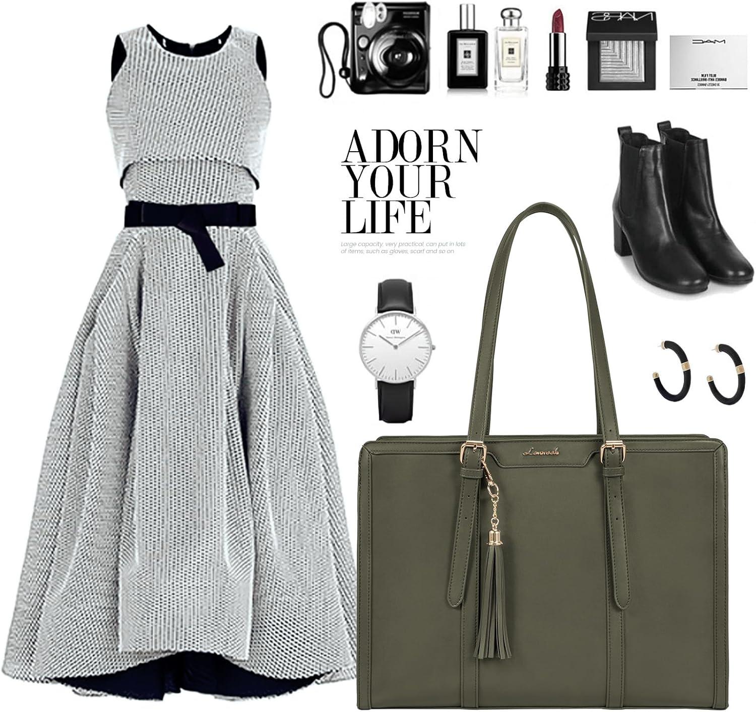 【Elegant & High Quality Laptop Tote Bag】 Our laptop purse is made of waterproof and wear-resistant canvas material, high quality PU leather edge embellishment. Tassel pendants add a sense of style to our cute laptop bag, keep our womens briefcase balanced and coordinated to keep it elegant at work and business.