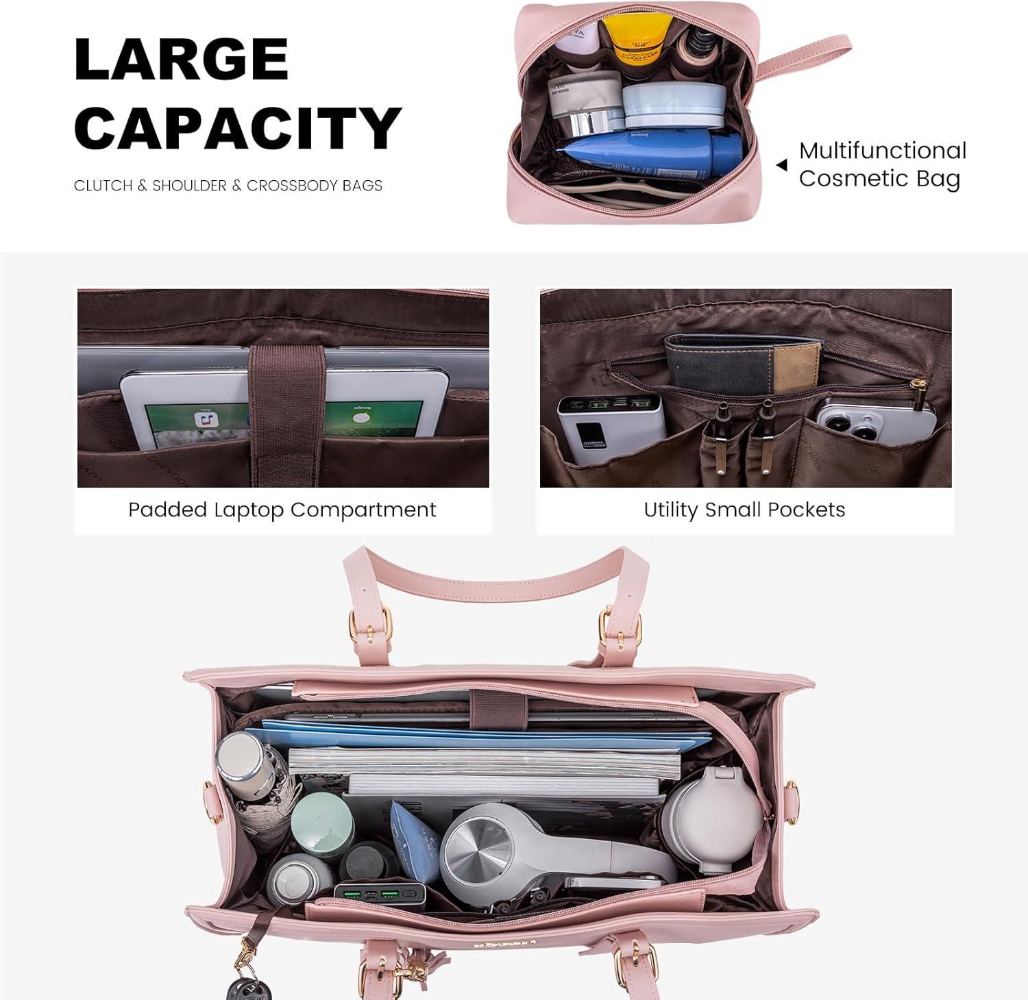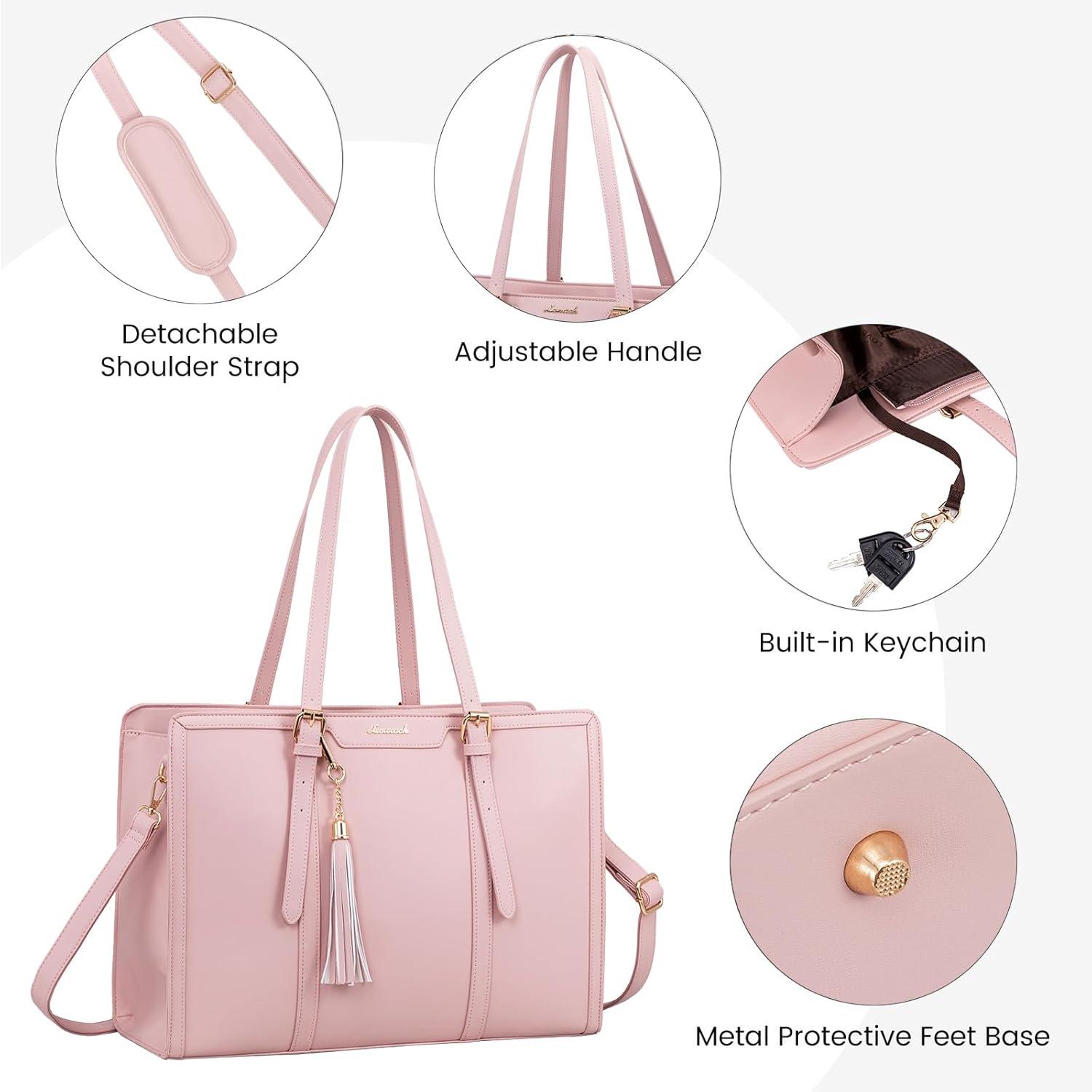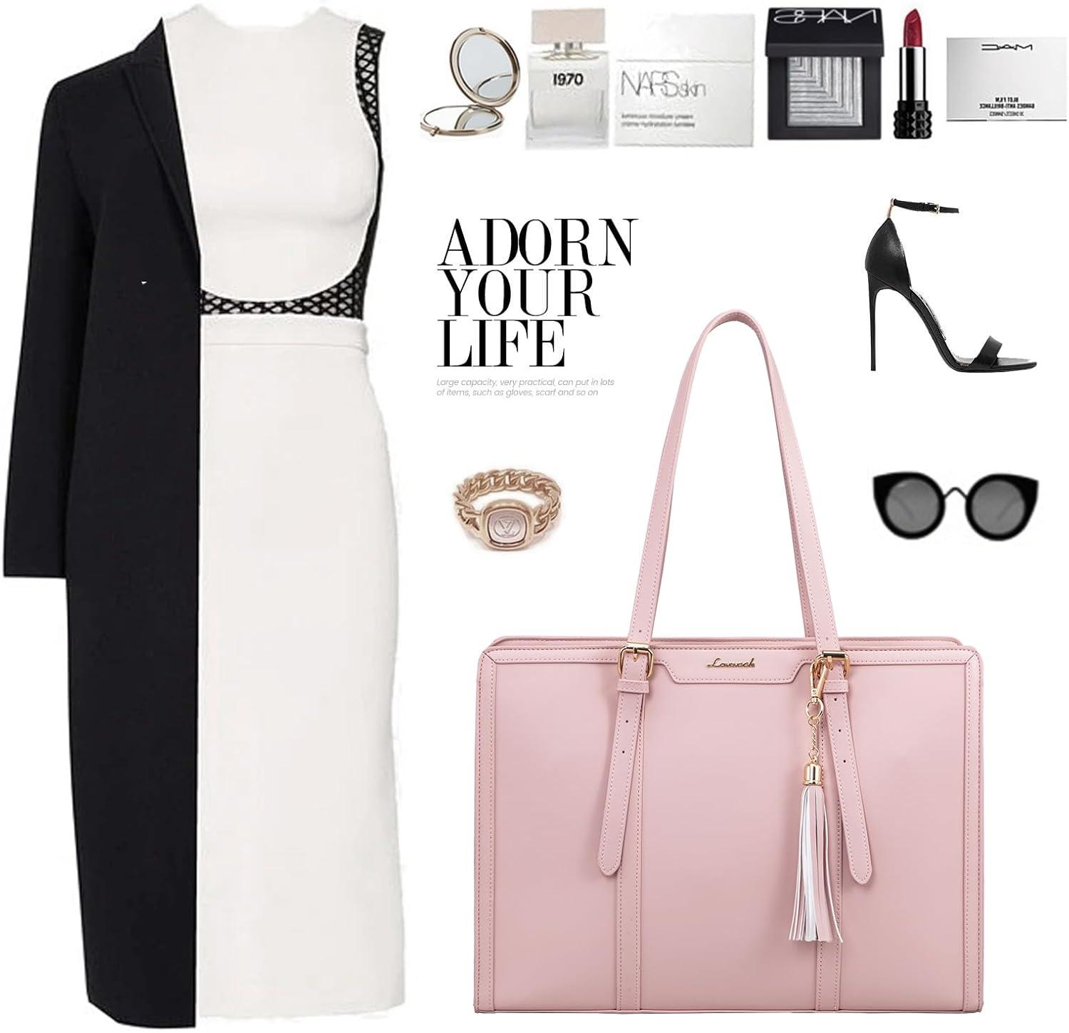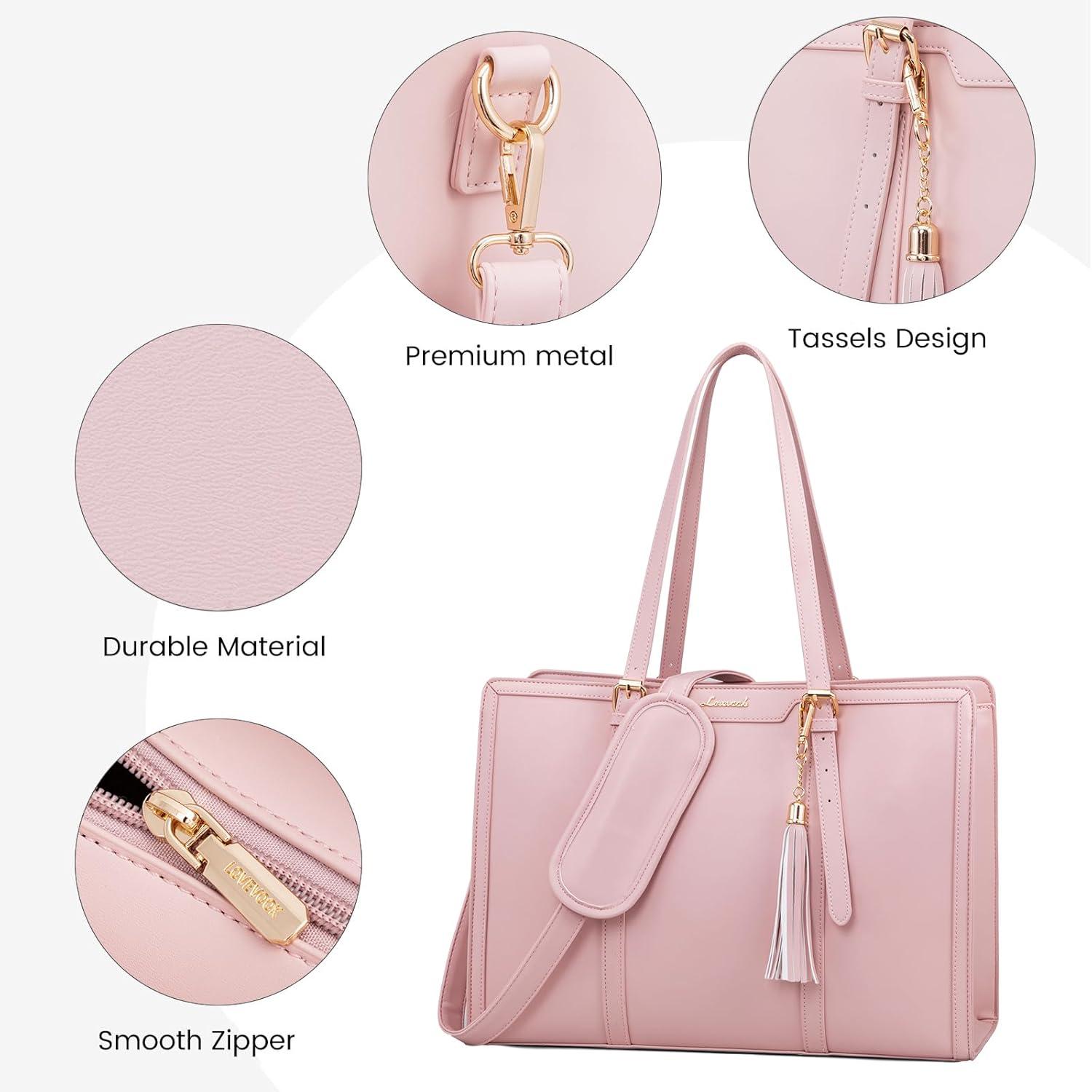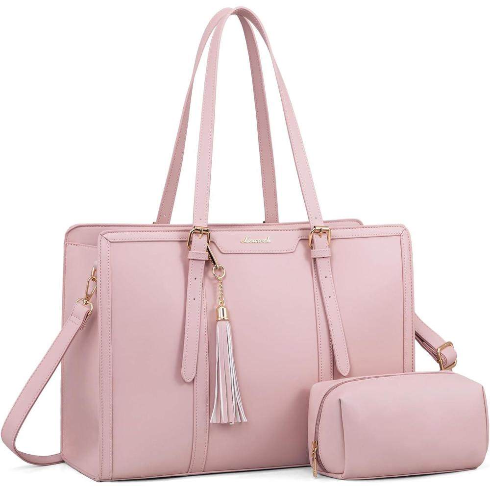 LOVEVOOK 15.6-inch Canvas Laptop Tote with Clutch for Women - Lightweight, Large Capacity for Work, Travel, School(Pink)