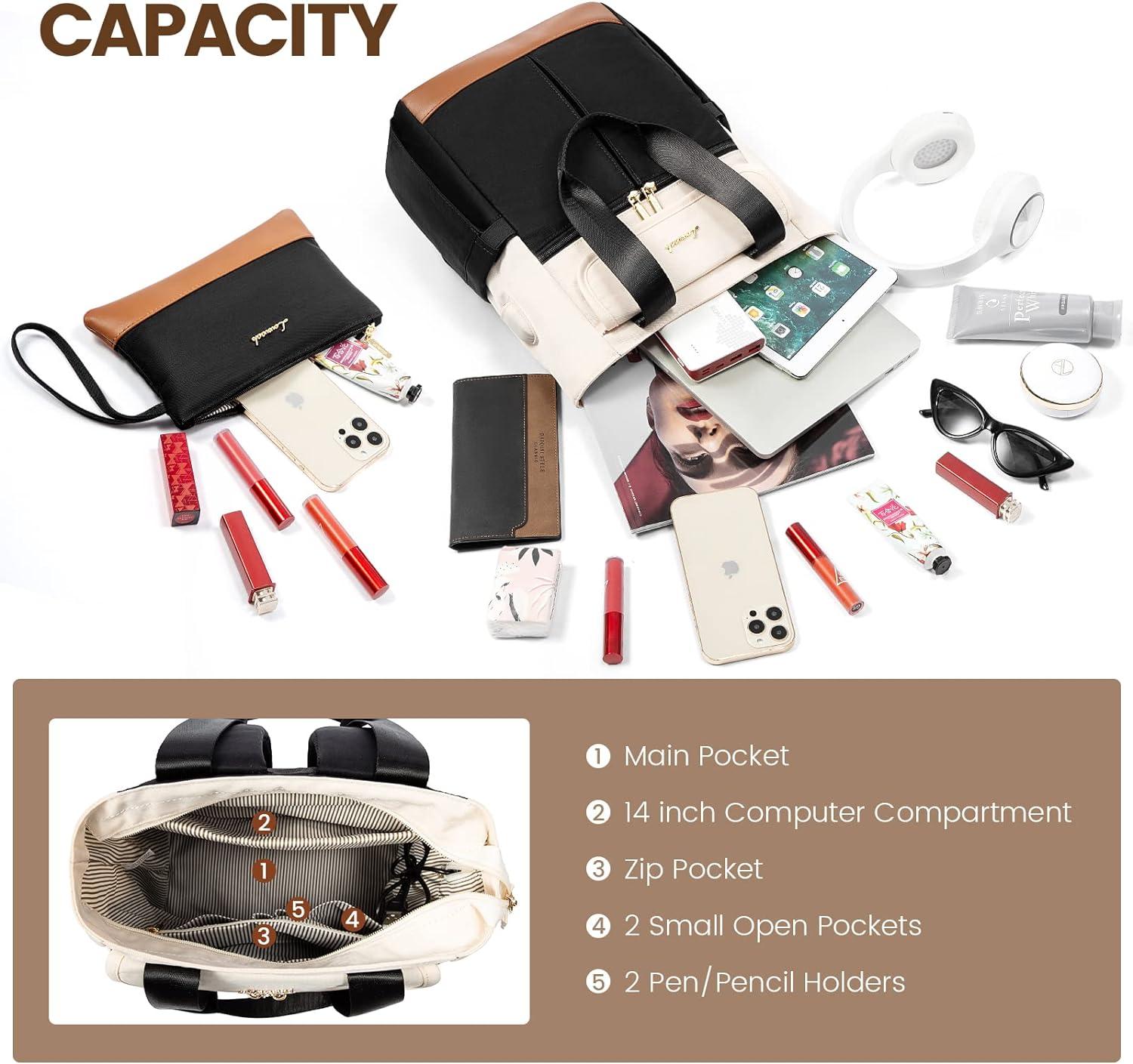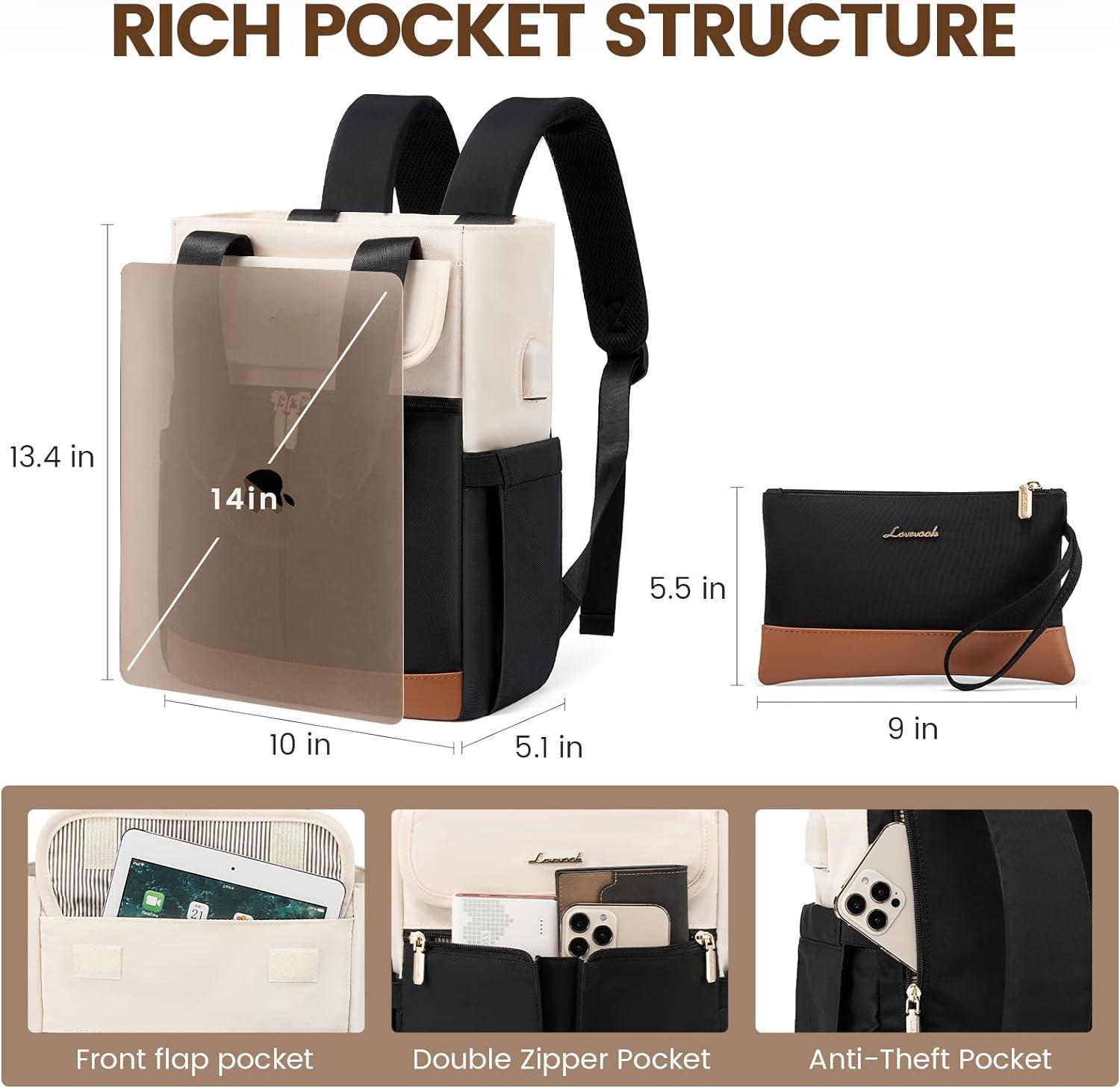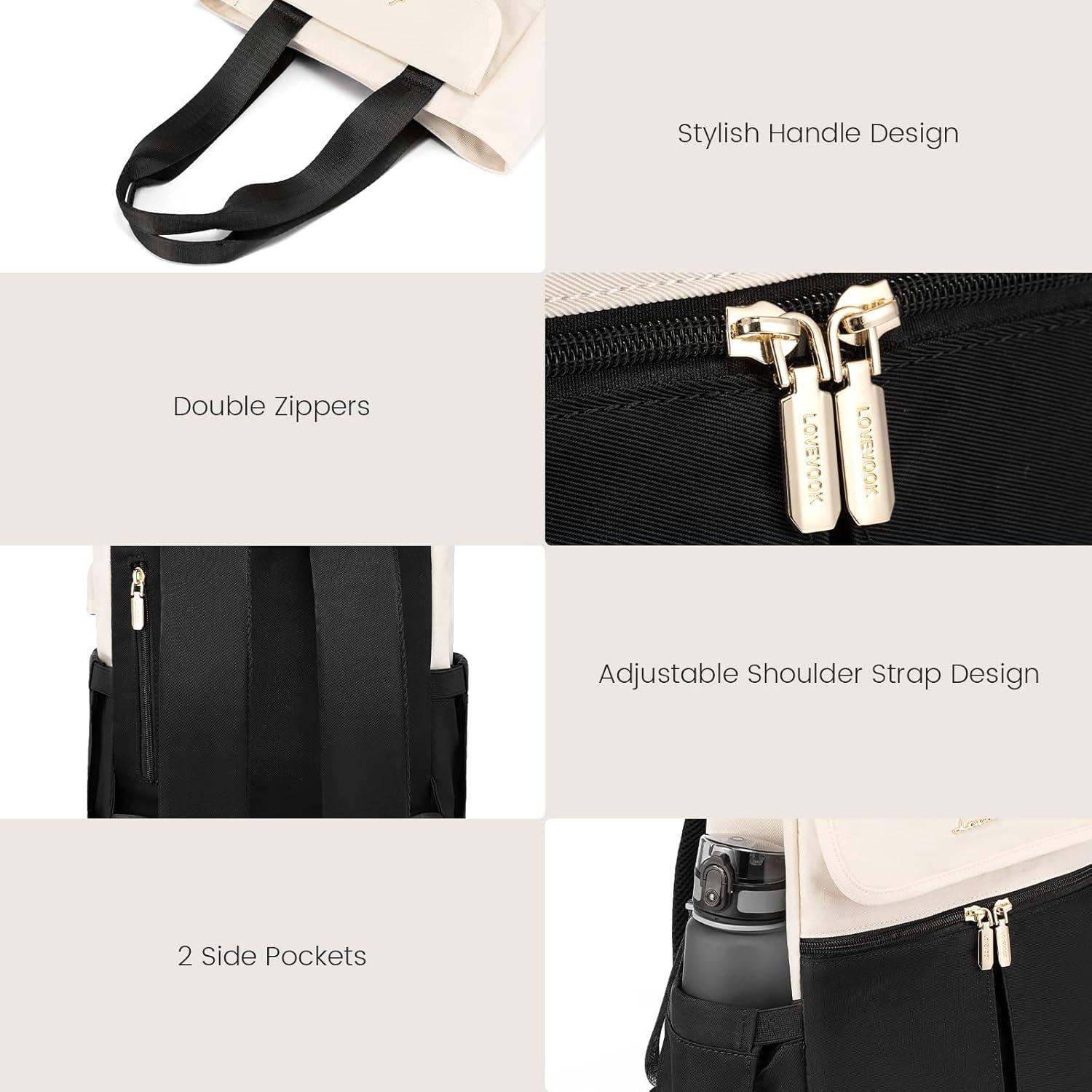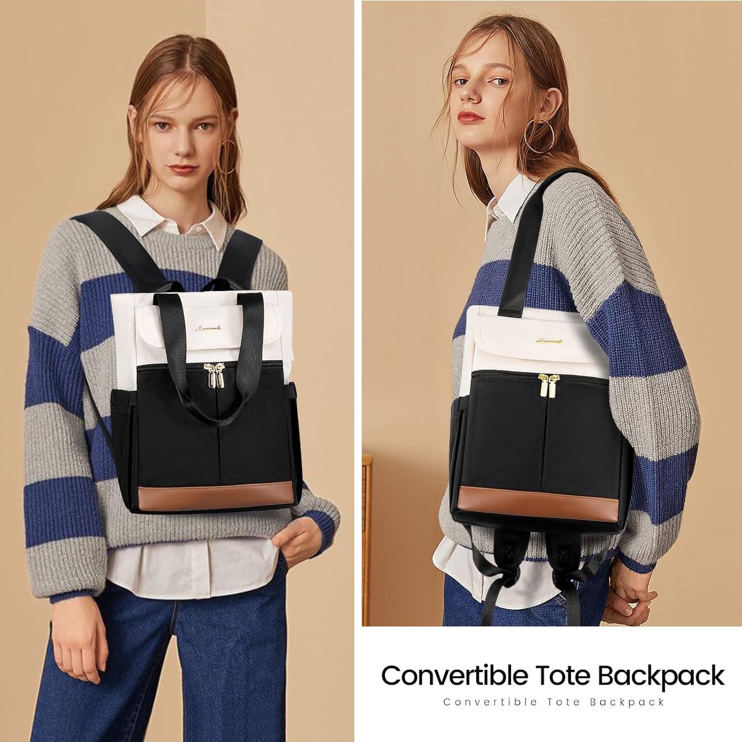 LOVEVOOK Backpack Purse for Women, Convertible Mini Backpacks Tote for Teen Girls, Small College Bookbag for Work, School, Travel, 2pcs set, Black-Cream(Black-cream)