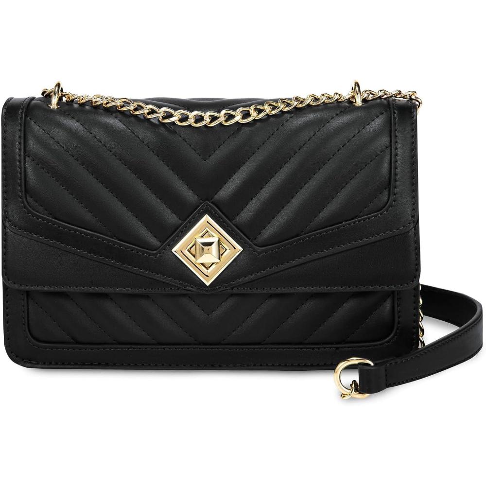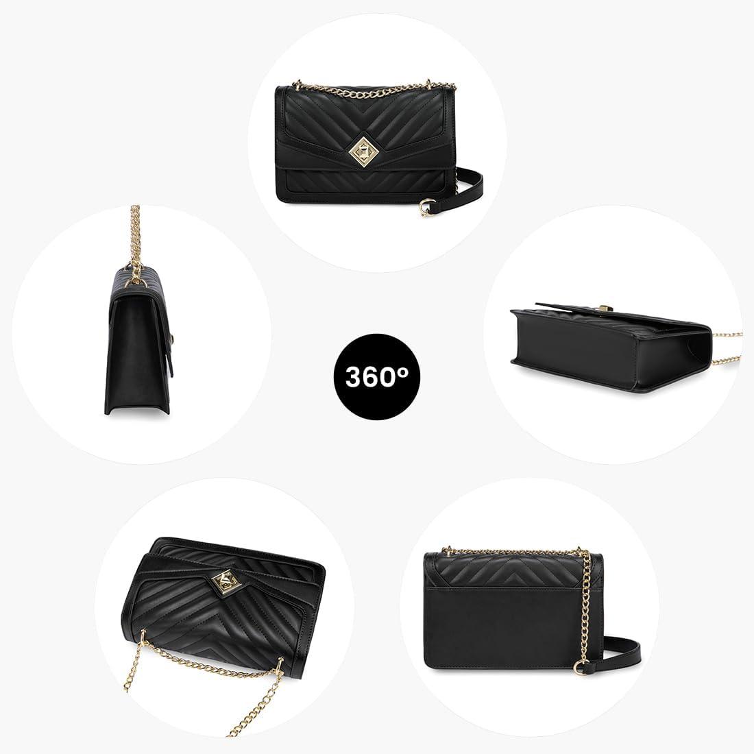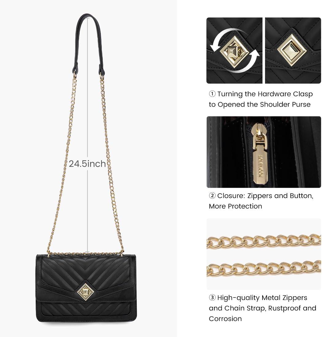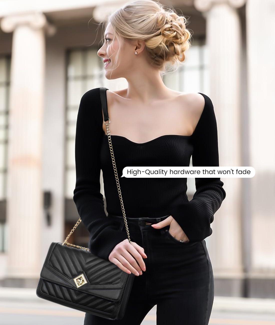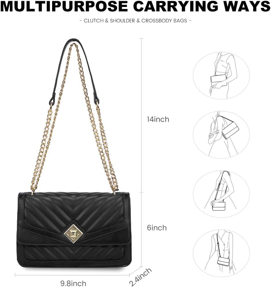 LOVEVOOK Crossbody Bags for Women Leather Quilted Shoulder Bag with Chain Strap Trendy Clutch Satchel Ladies Evening Bag(Type V/Black)
