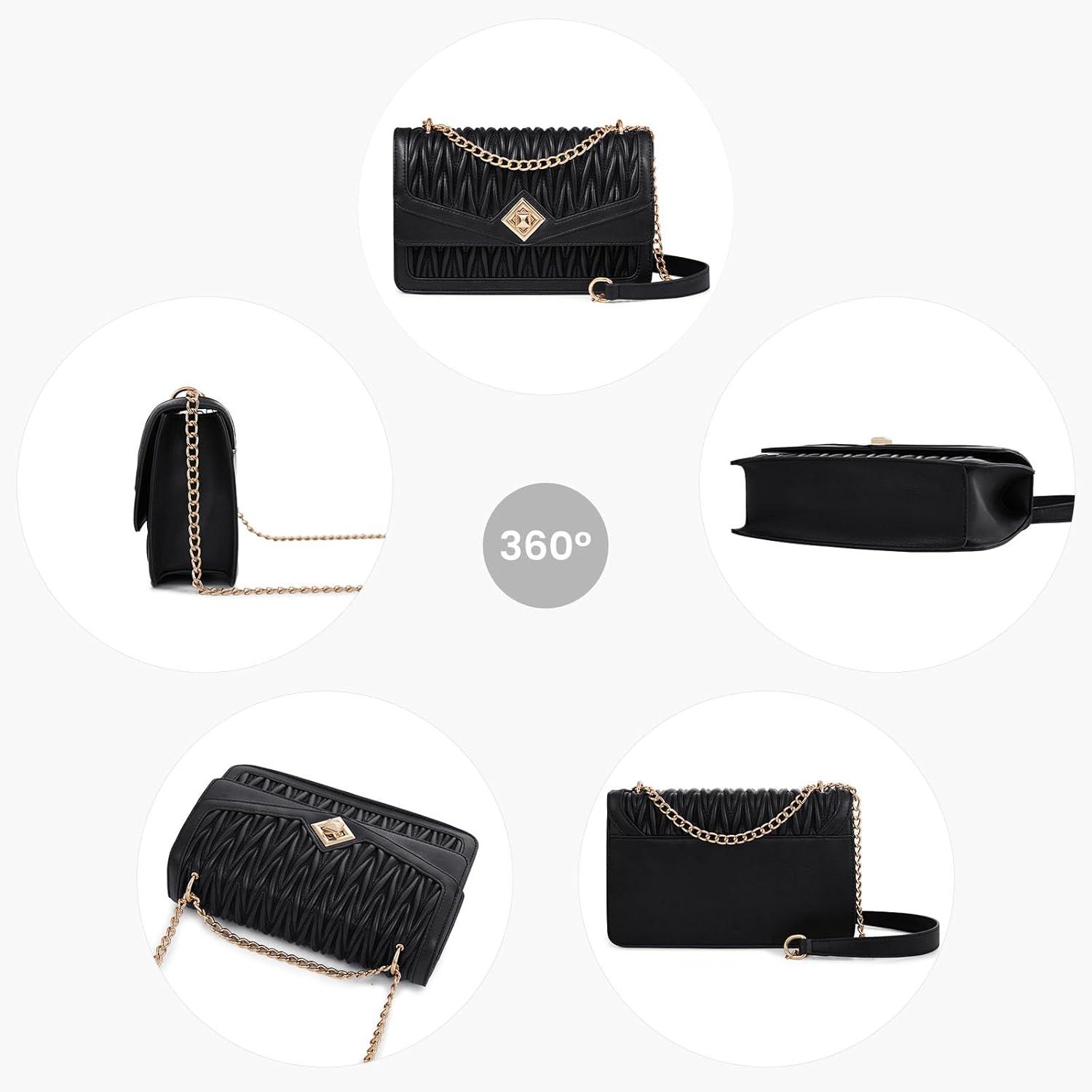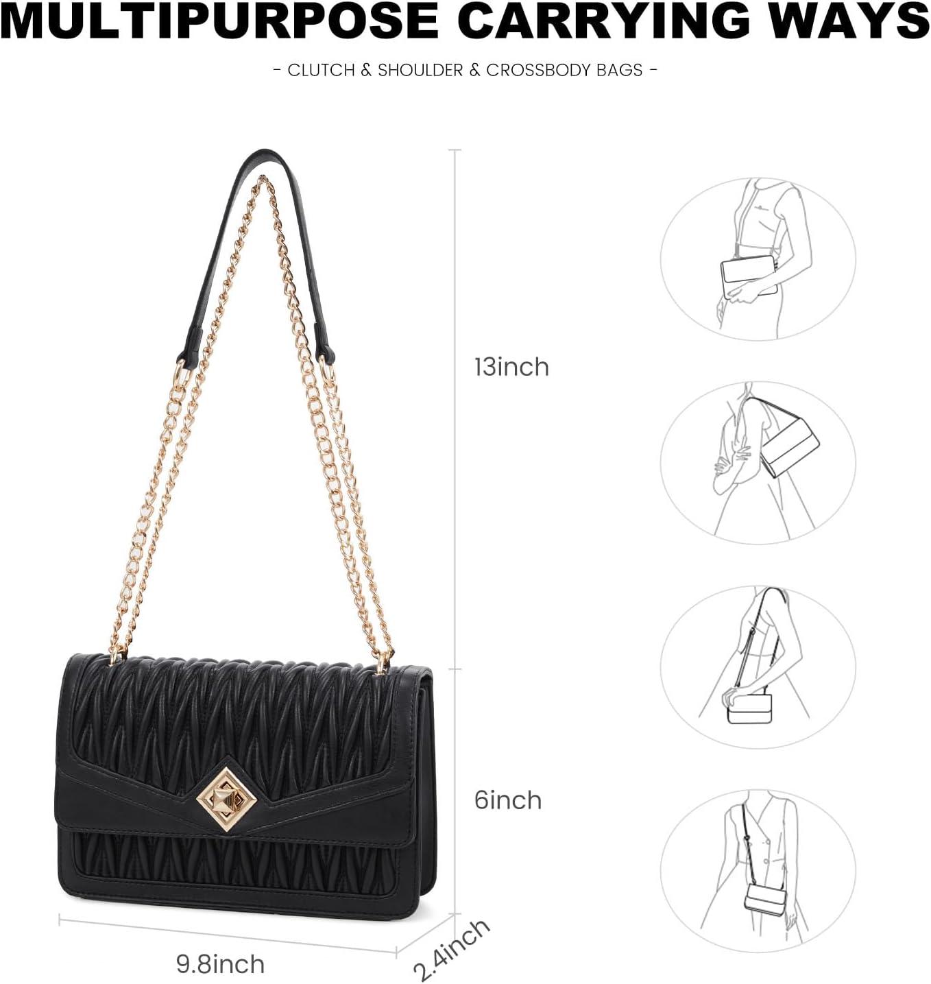 LOVEVOOK Crossbody Bags for Women Leather Quilted Shoulder Bag with Chain Strap Trendy Clutch Satchel Ladies Evening Bag(Type X/Black)