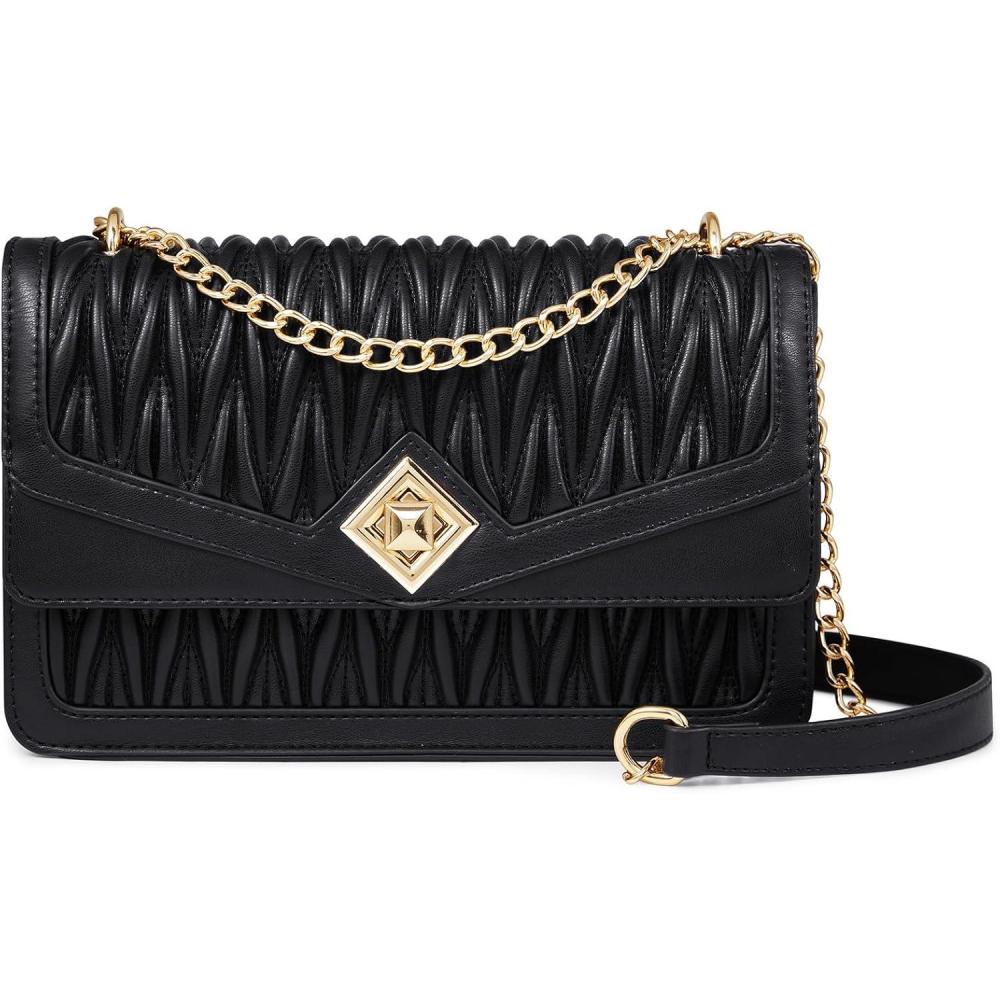 imageLOVEVOOK Crossbody Bags for Women Leather Quilted Shoulder Bag with Chain Strap Trendy Clutch Satchel Ladies Evening BagType XBlack