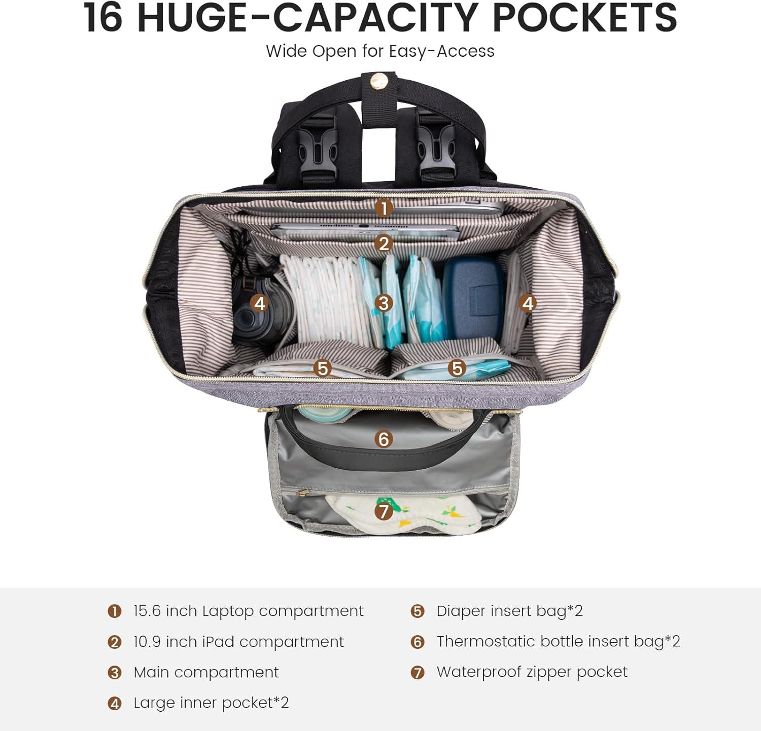 【Ultimate Mommy Bag】: Measuring 17.3'' x 12'' x 6.1'' with a 31L capacity, our diaper bag backpack boasts 16 thoughtfully designed pockets to offer ample storage for every outing with your baby.