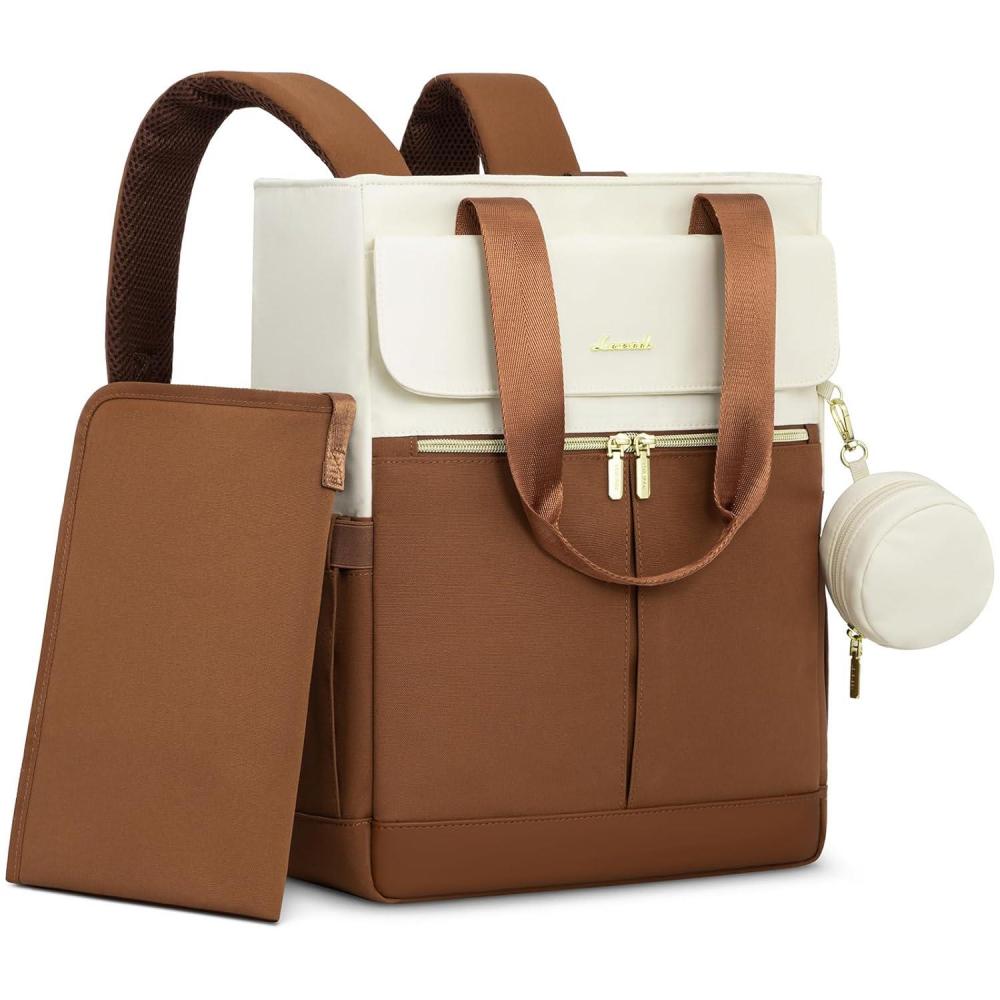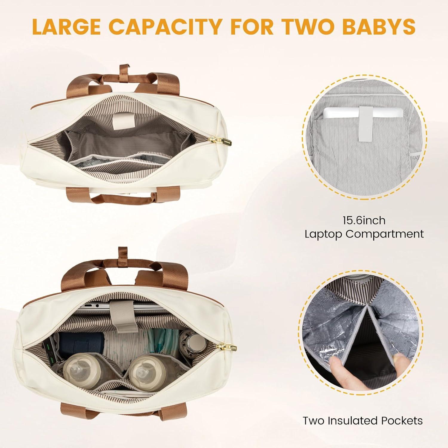 LOVEVOOK Diaper Bag Backpack,Diaper Bag Tote with Insulated Pockets,Baby Bag for Girl Boy with Changing Pad,Large Baby Diaper Bag with Pacifier Case,Anti-Theft Travel Backpack for Women(Brown and White)