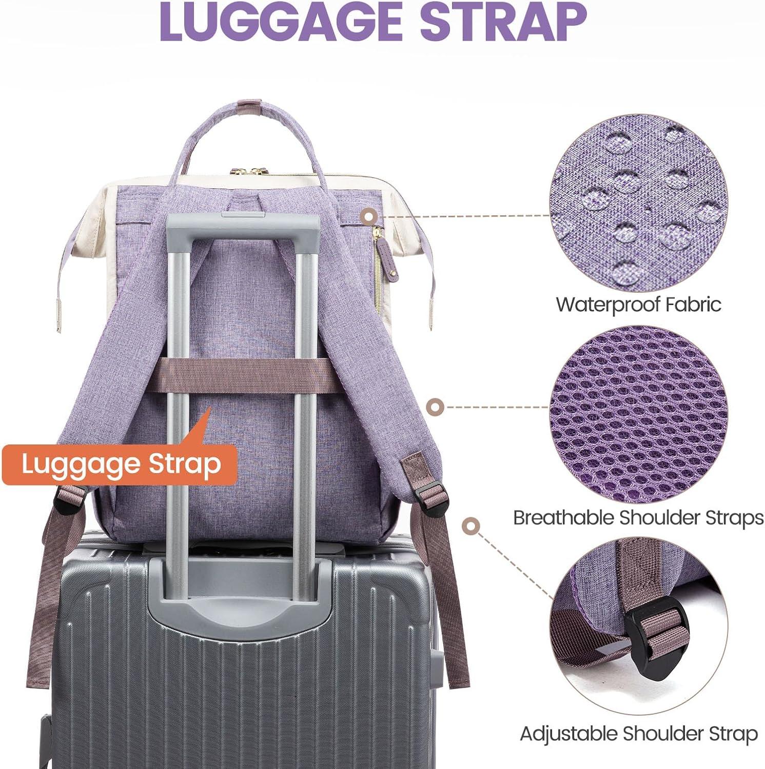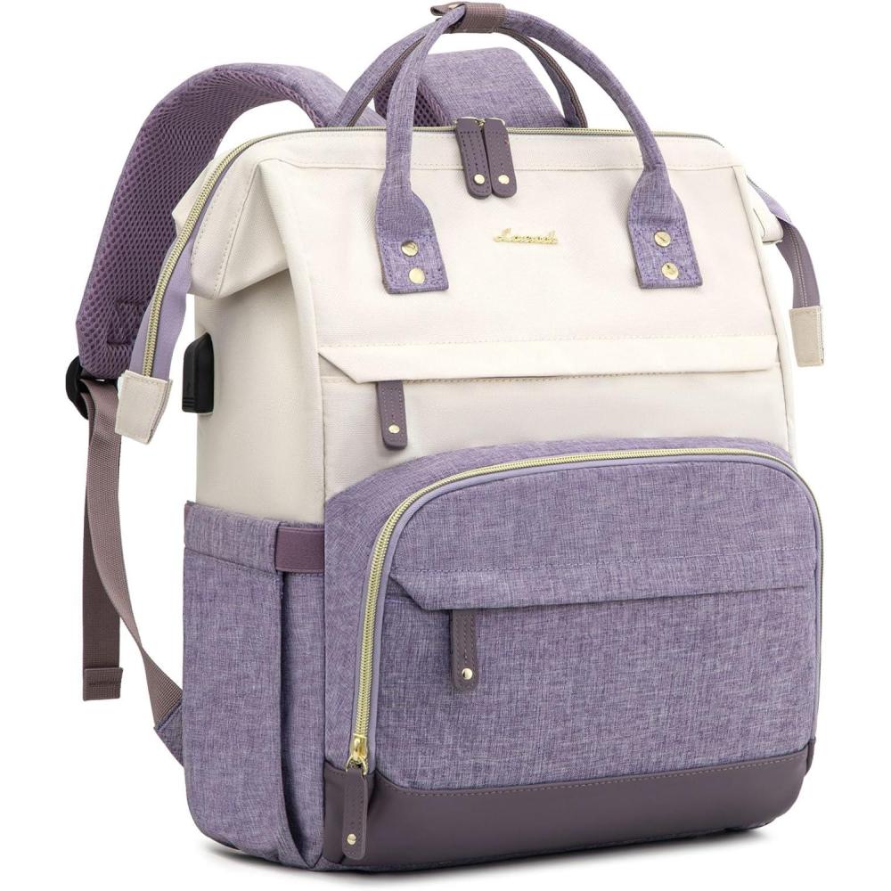 LOVEVOOK Laptop Backpack for Women, 15.6 Inch Work Business Backpacks Purse With Large Capacity, Waterproof Nurse Bag College Bookbag for School, Waterproof Casual Daypack for Travel(White-purple)