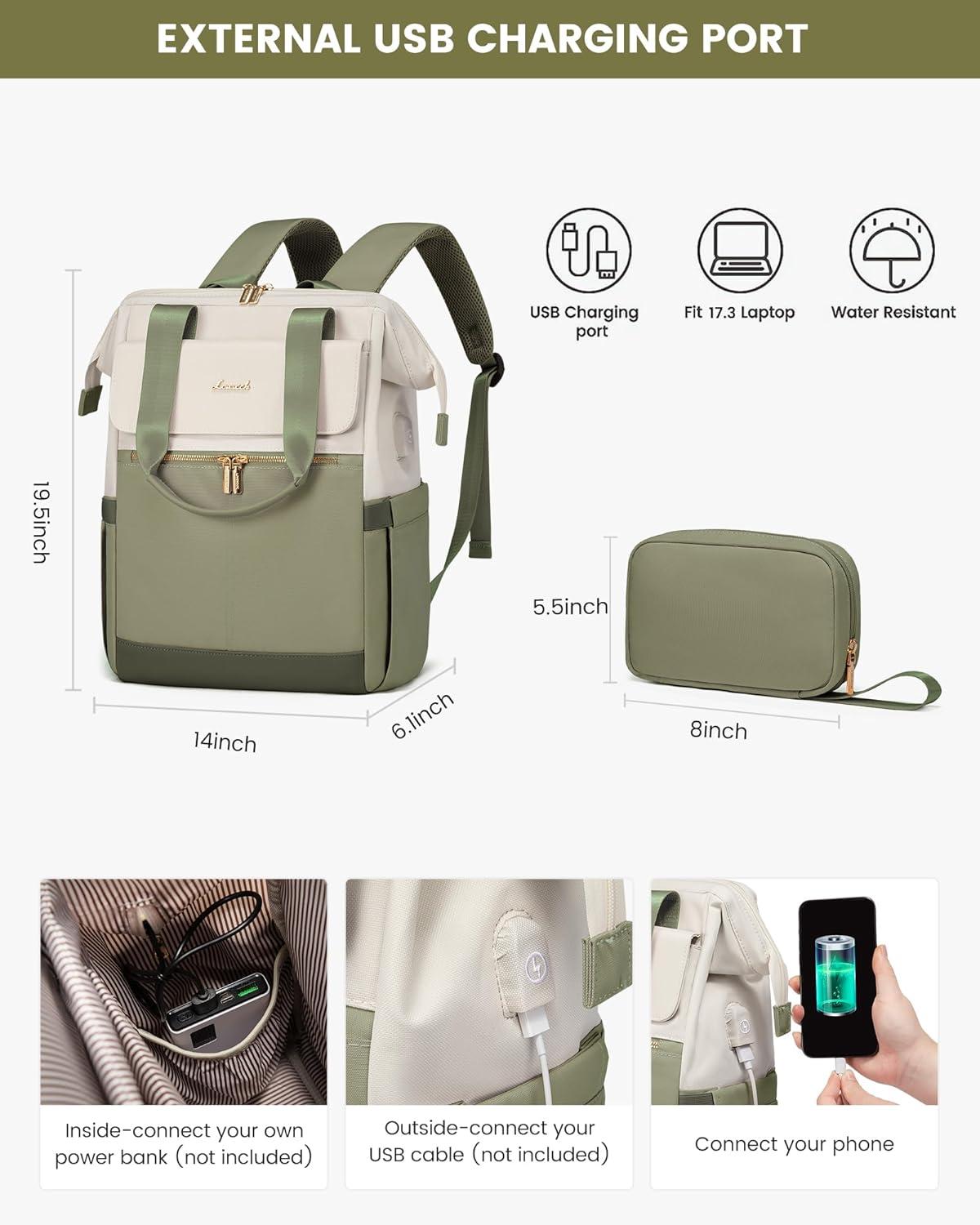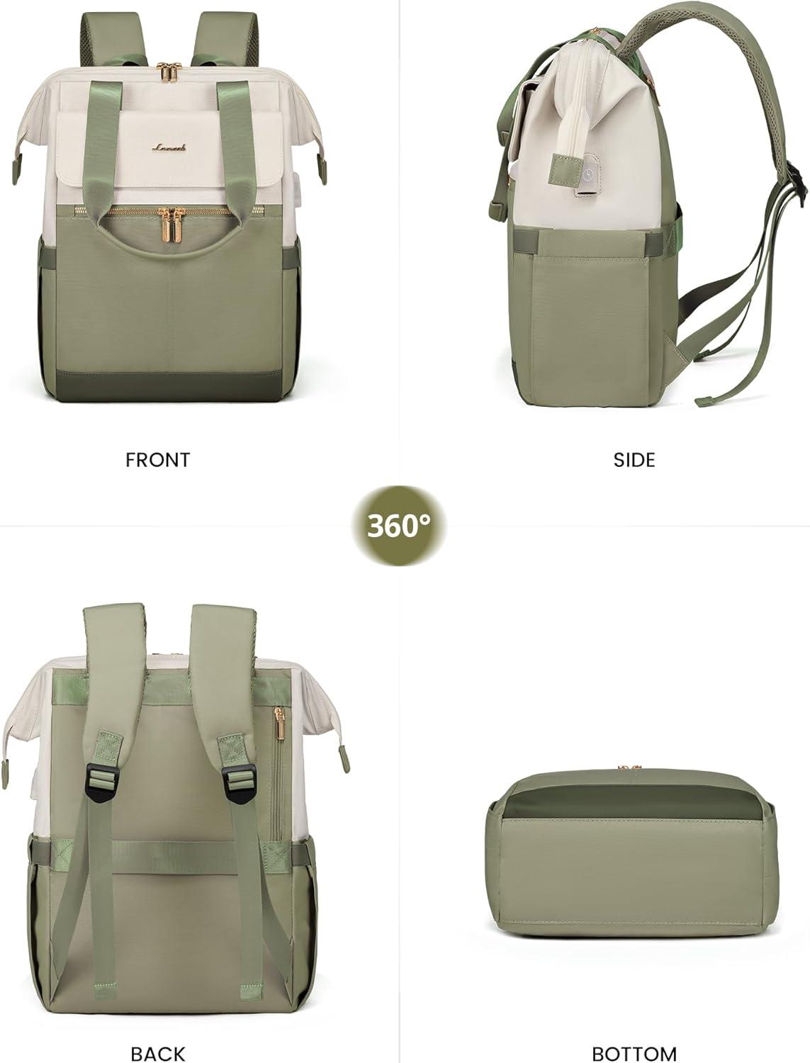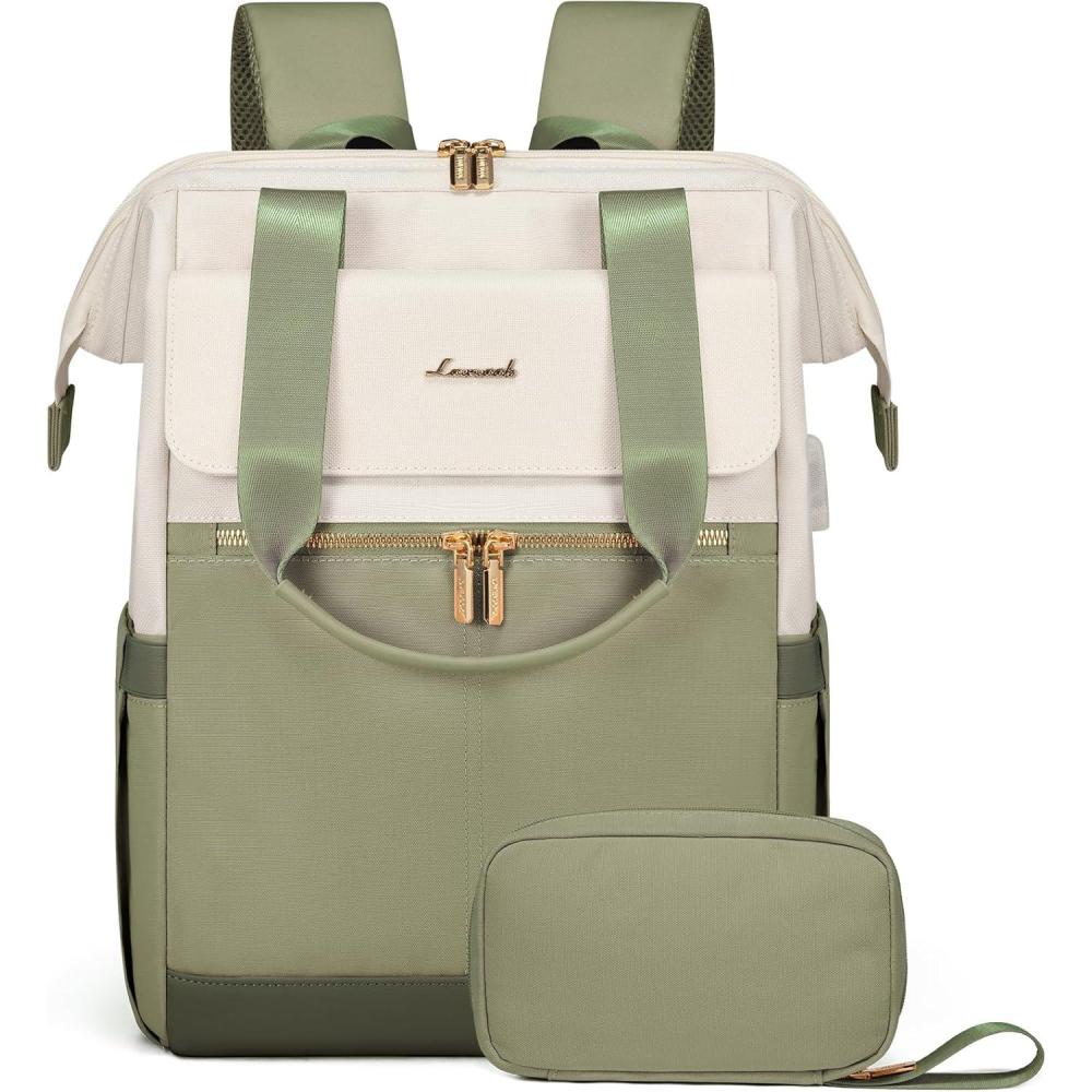 imageLOVEVOOK Laptop Backpack for Women 156 Inch Work Laptop Bag with USB Port Fashion Teacher Nurse Backpack Purse Waterproof Travel Computer Backpack with Organizer Bag 2PCS BeigeKhakiBeige  Bean Green