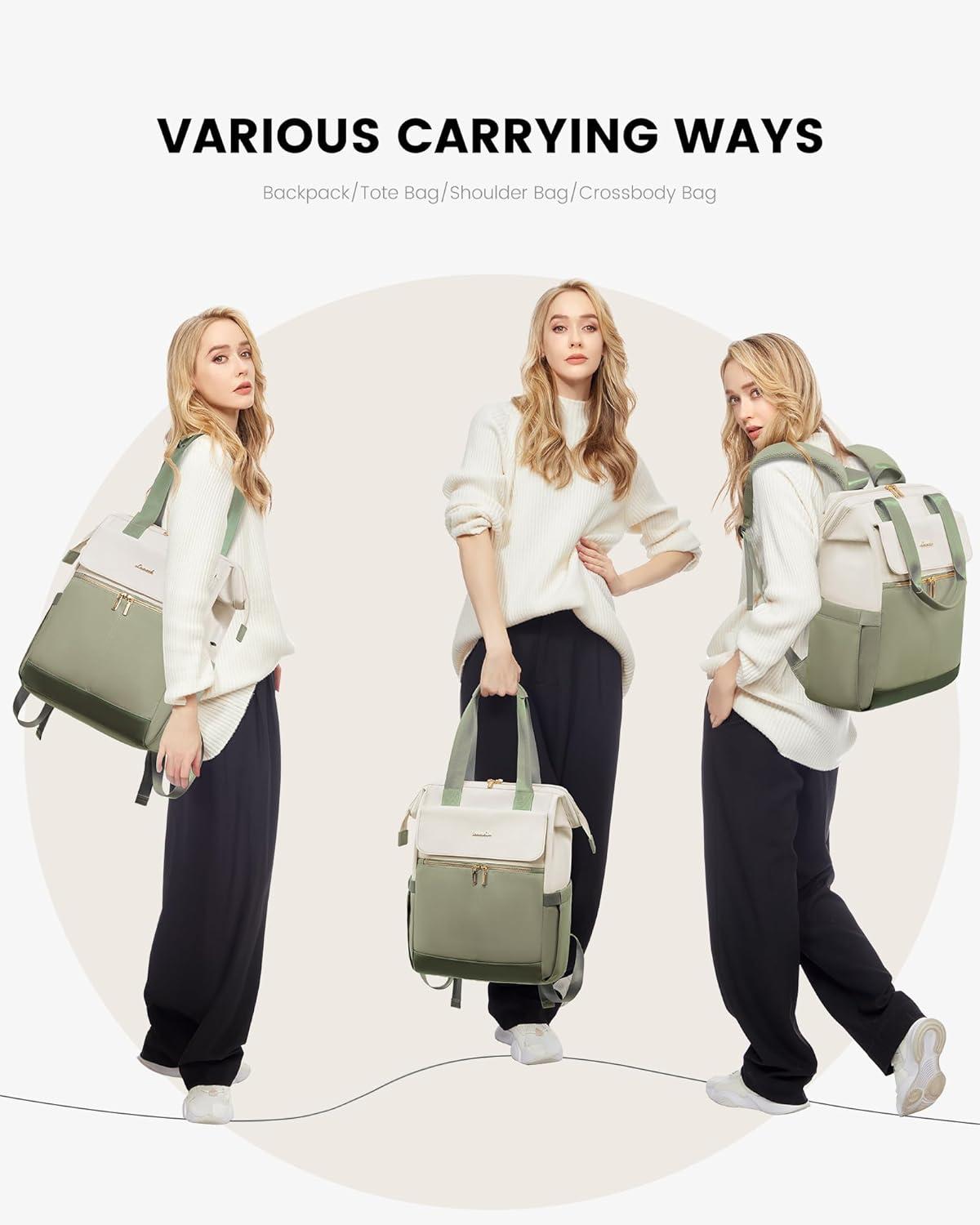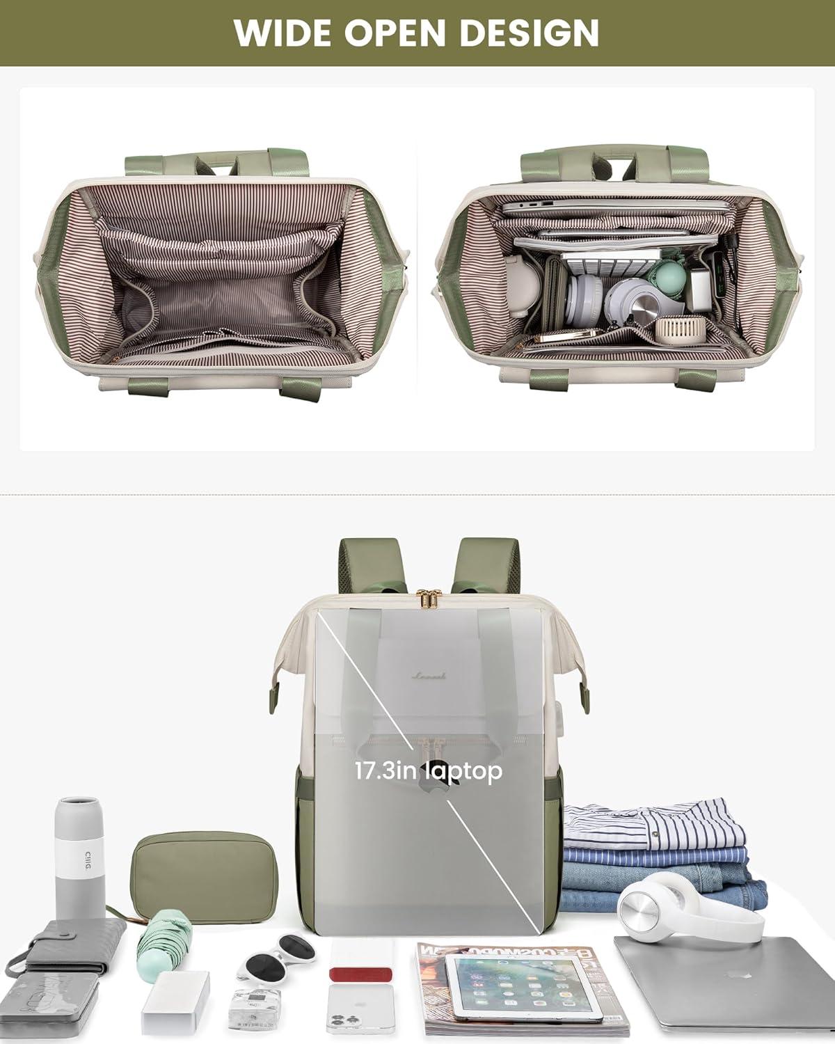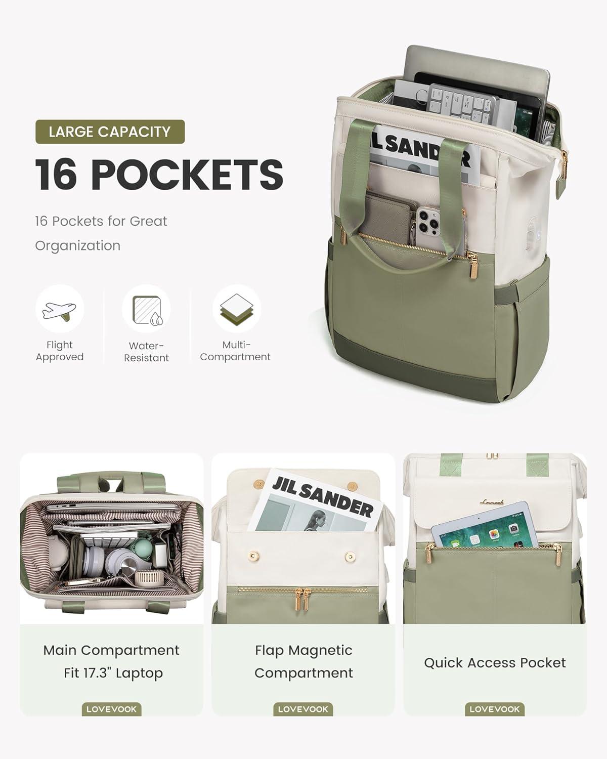 imageLOVEVOOK Laptop Backpack for Women 156 Inch Work Laptop Bag with USB Port Fashion Teacher Nurse Backpack Purse Waterproof Travel Computer Backpack with Organizer Bag 2PCS BeigeKhakiBeige  Bean Green