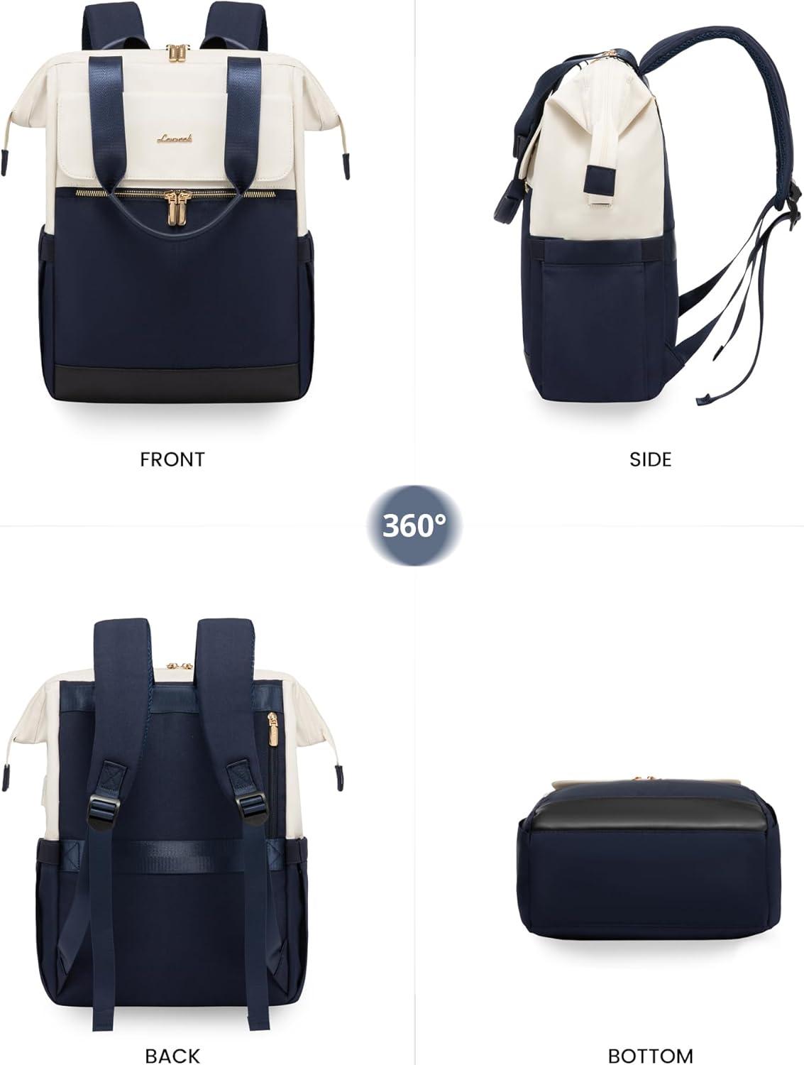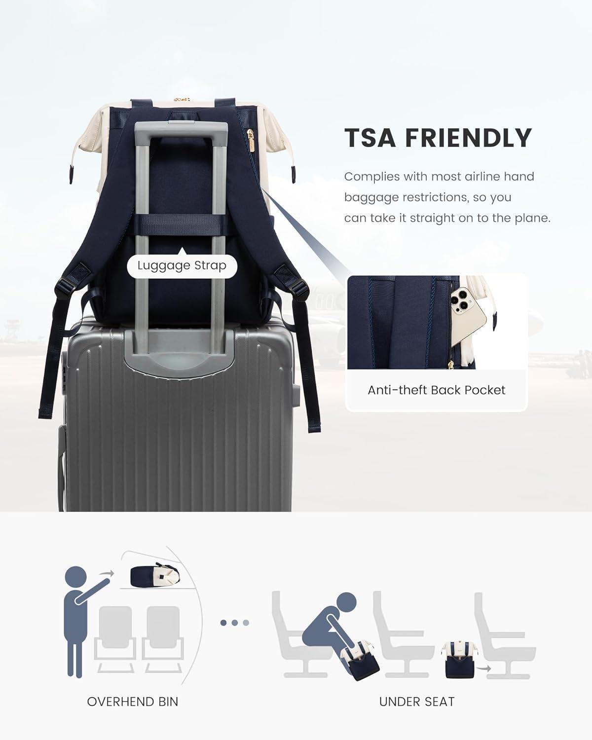 imageLOVEVOOK Laptop Backpack for Women 156 Inch Work Laptop Bag with USB Port Fashion Teacher Nurse Backpack Purse Waterproof Travel Computer Backpack with Organizer Bag 2PCS BeigeKhakiBeige  Blue