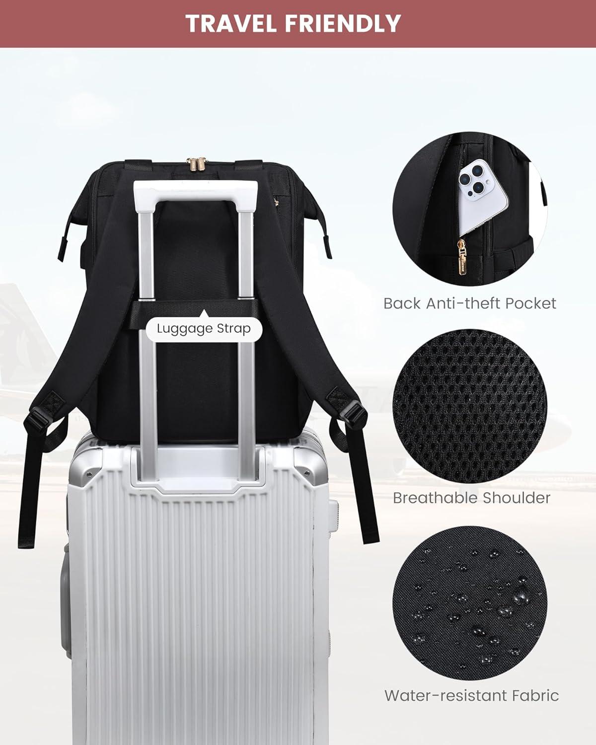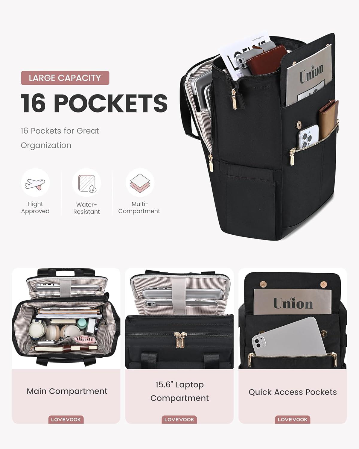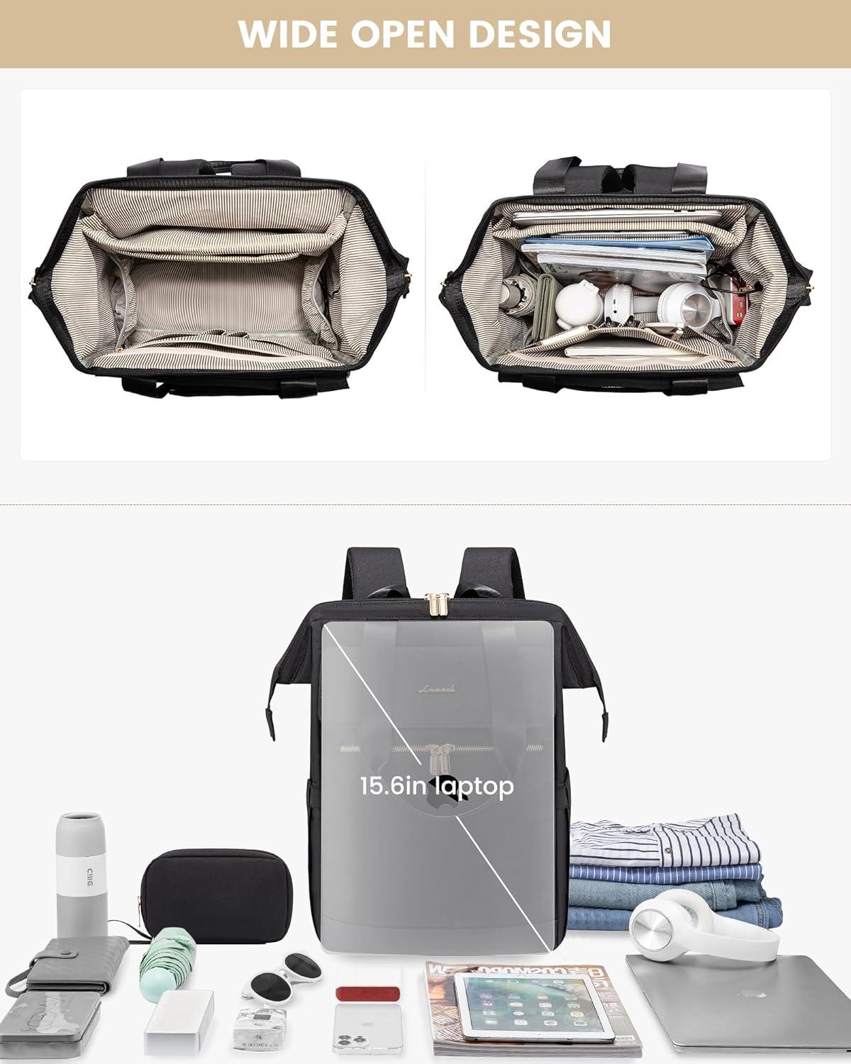 imageLOVEVOOK Laptop Backpack for Women 156 Inch Work Laptop Bag with USB Port Fashion Teacher Nurse Backpack Purse Waterproof Travel Computer Backpack with Organizer Bag 2PCS BeigeKhakiBlack