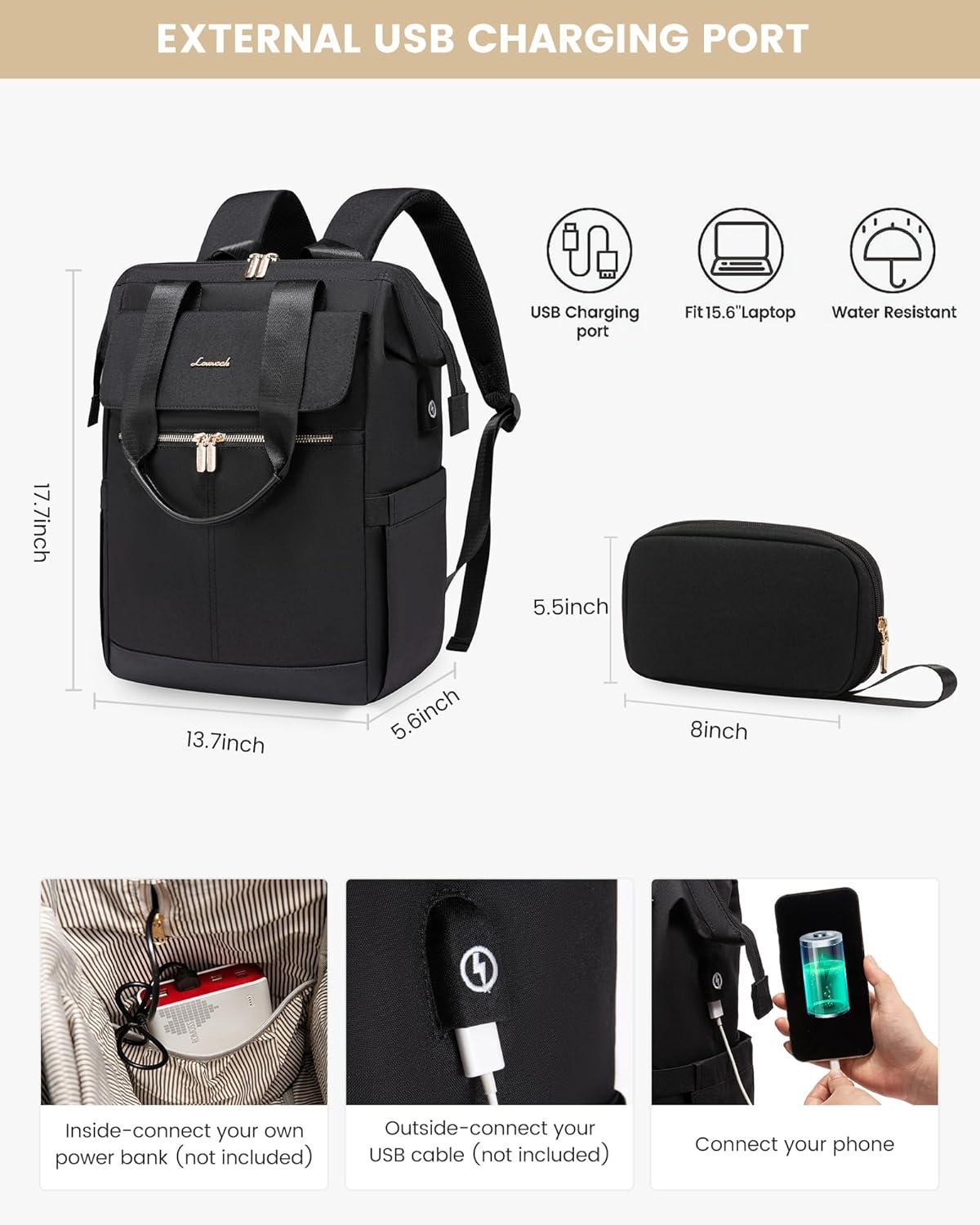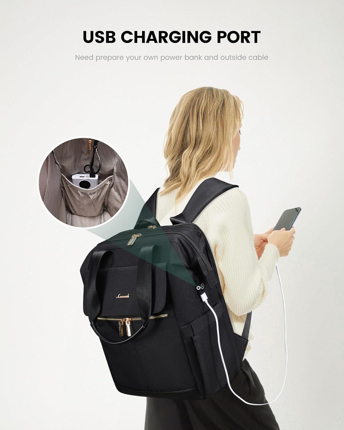 【USB Charging Port】Our lovevook backpack are equipped with a built-in USB charging port, easy to charge your phone when you walk and travel.(POWER BANK IS NOT INCLUDED)