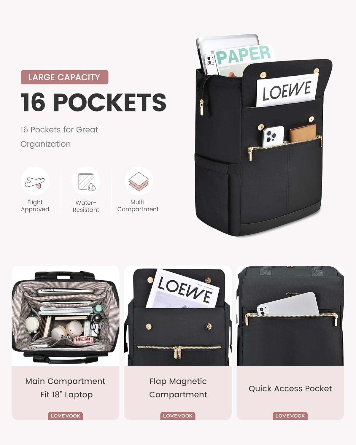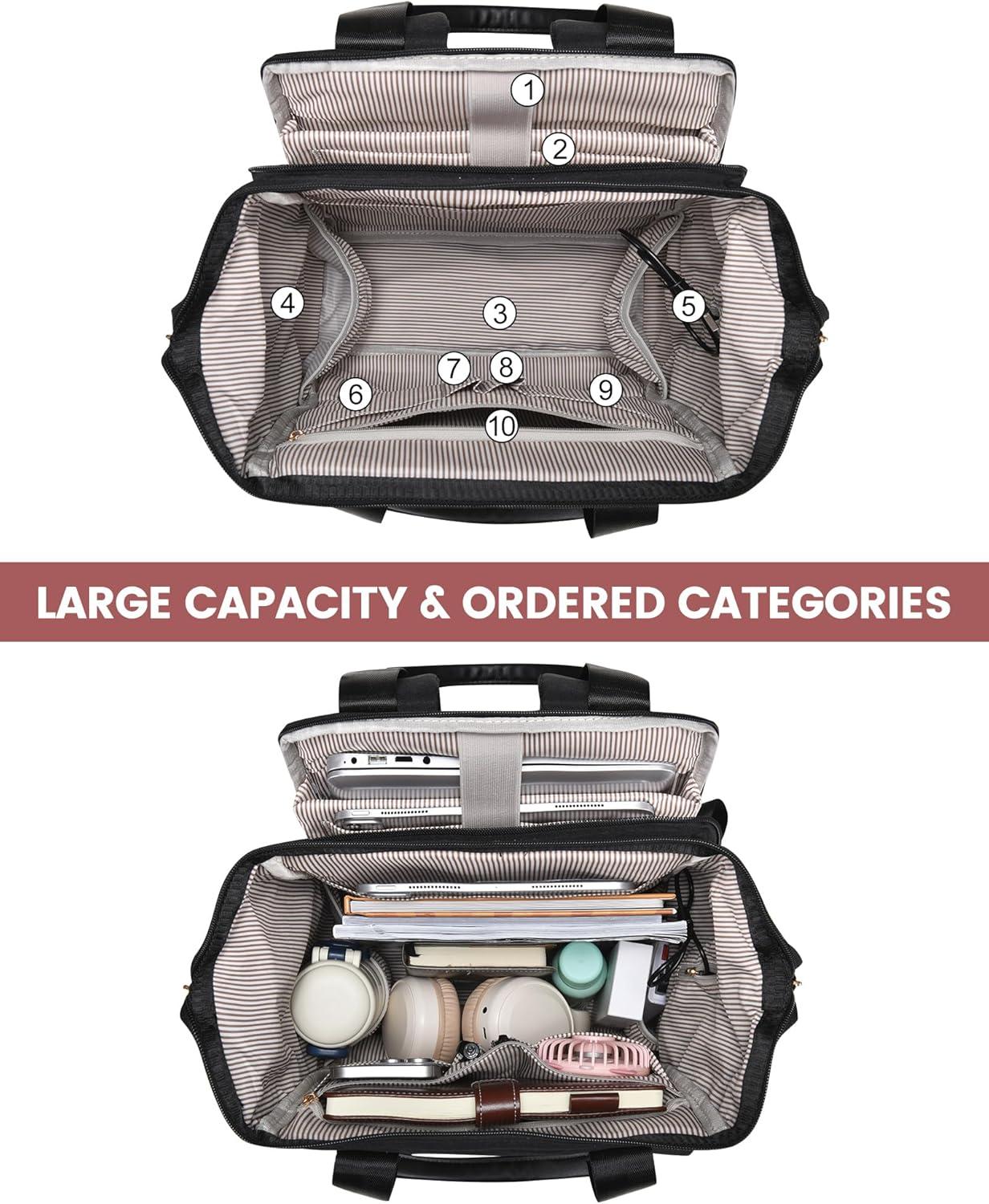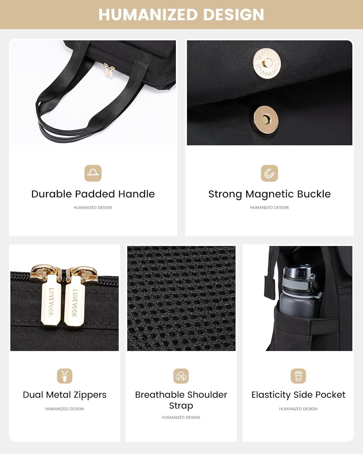 【Wide-Open & Anti-Theft Design】LOVEVOOK laptop bag for women uses a rectangular frame opening design to maintain large capacity and facilitate your quick access.The anti-theft pocket on the back makes your valuables safer and your travel easier.