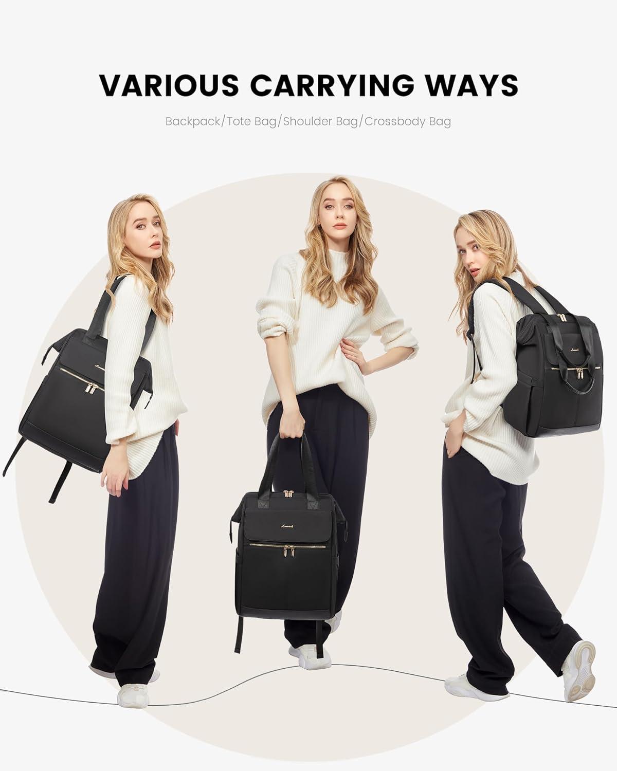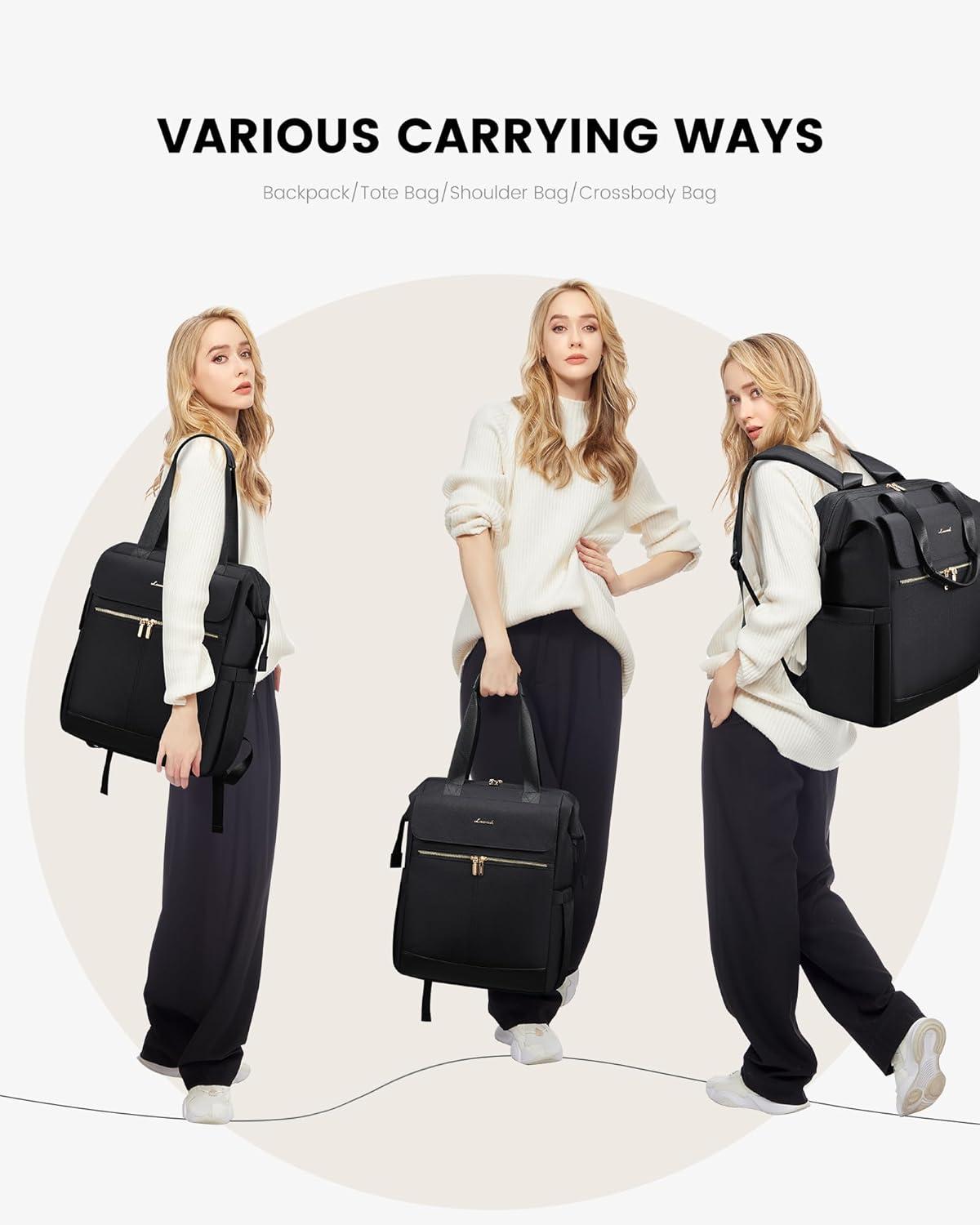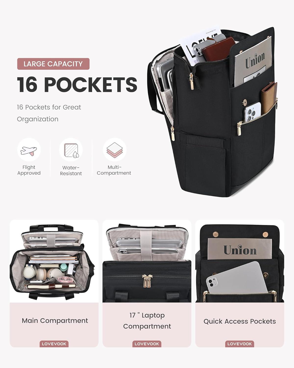 【Wide-Open & Anti-Theft Design】LOVEVOOK laptop bag for women uses a rectangular frame opening design to maintain large capacity and facilitate your quick access.The anti-theft pocket on the back makes your valuables safer and your travel easier.