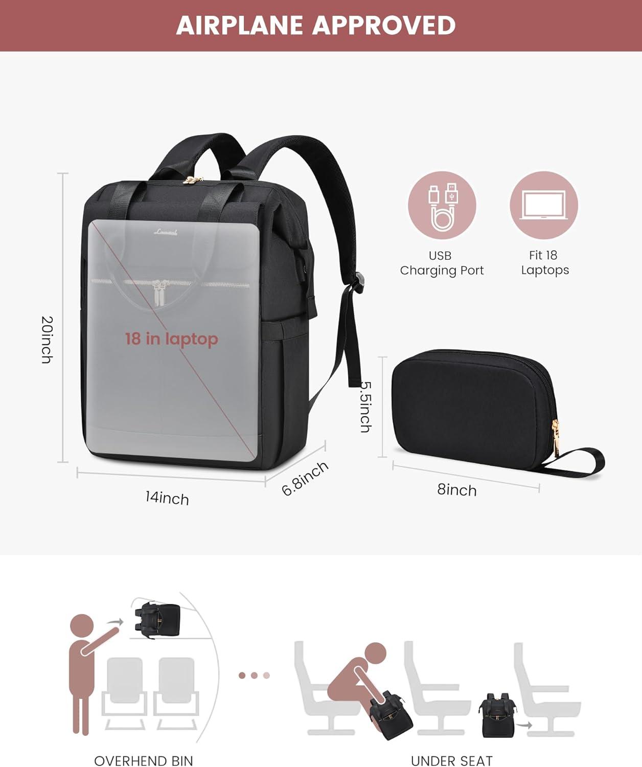 【Travel Backpack with Luggage Strap】Luggage strap allows you to easily fix your carry on backpack on the trolley case and liberate your shoulders. 4 compartments and more than 20 pockets, which can organize your travel items in an orderly manner.