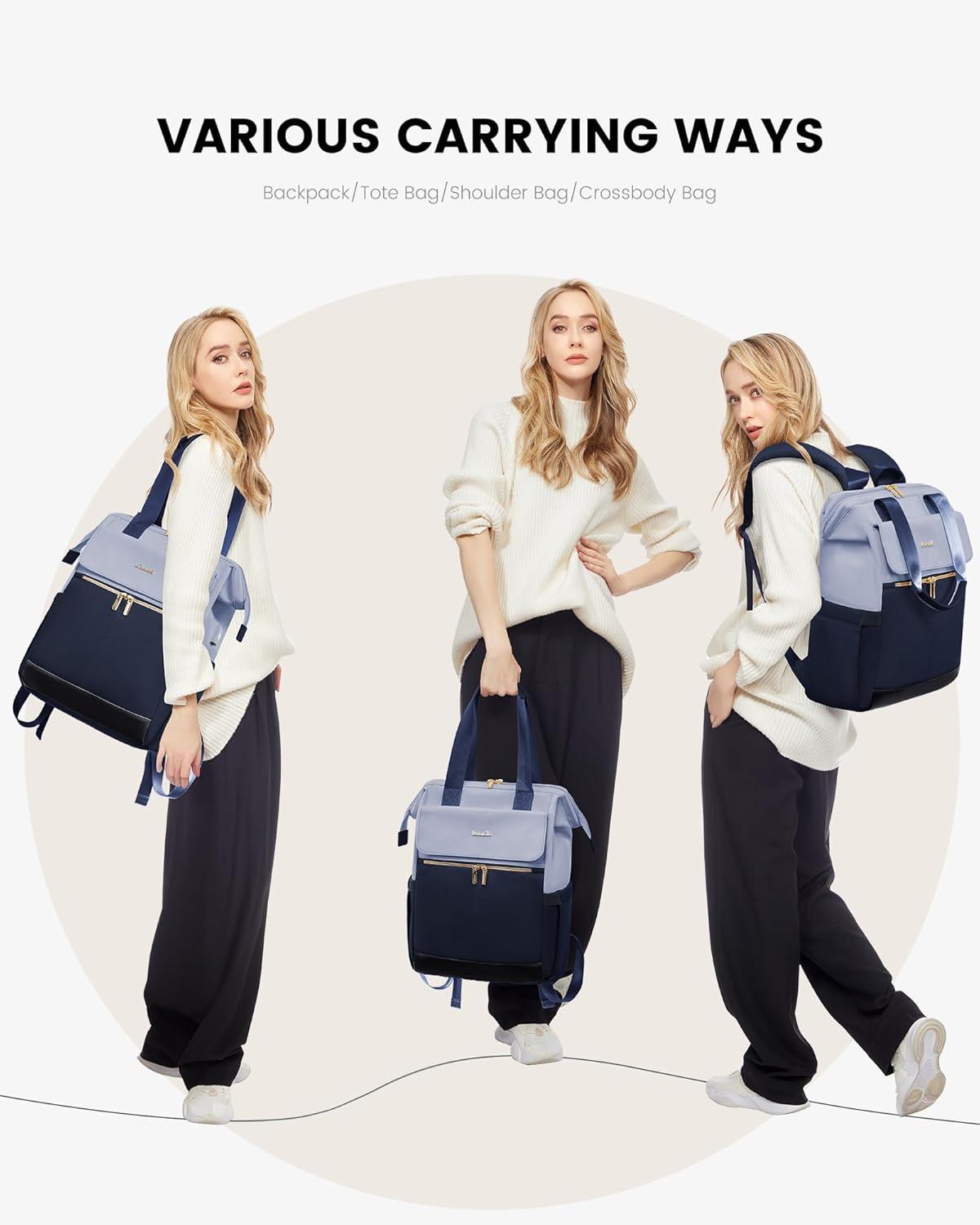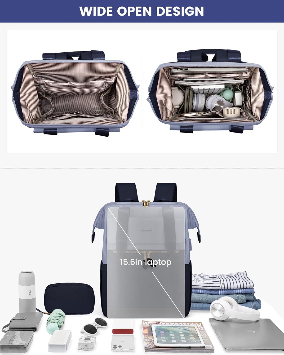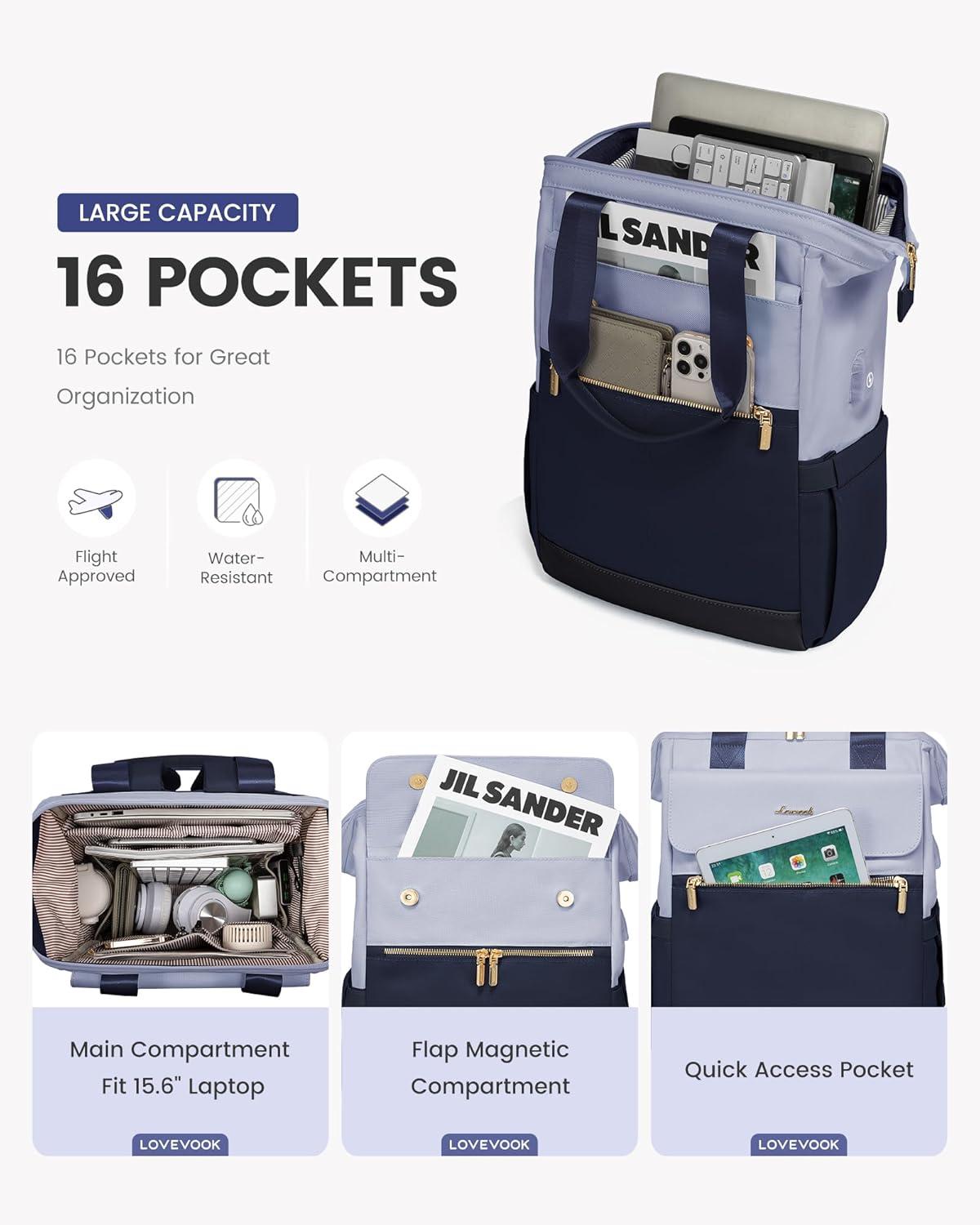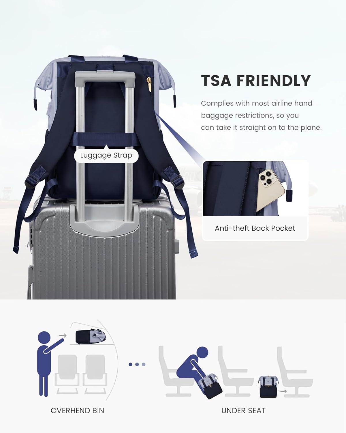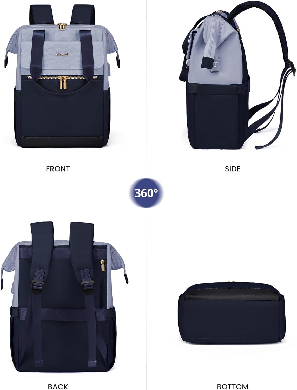 imageLOVEVOOK Laptop Backpack for Women 156 Inch Work Laptop Bag with USB Port Fashion Teacher Nurse Backpack Purse Waterproof Travel Computer Backpack with Organizer Bag 2PCS BeigeKhakiGrey Blue  Ink Blue