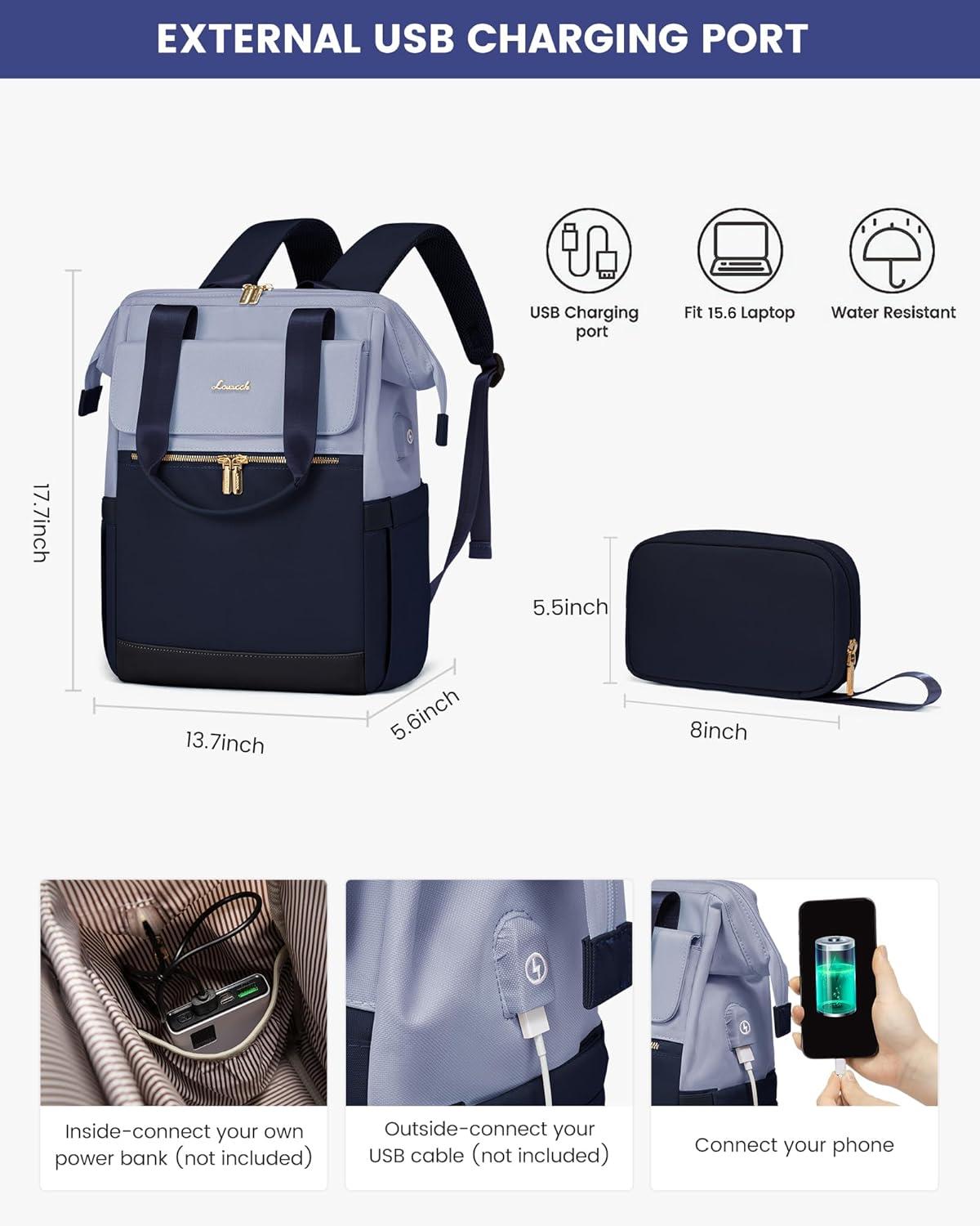 【USB Charging Port】Our lovevook backpack are equipped with a built-in USB charging port, easy to charge your phone when you walk and travel.(POWER BANK IS NOT INCLUDED)