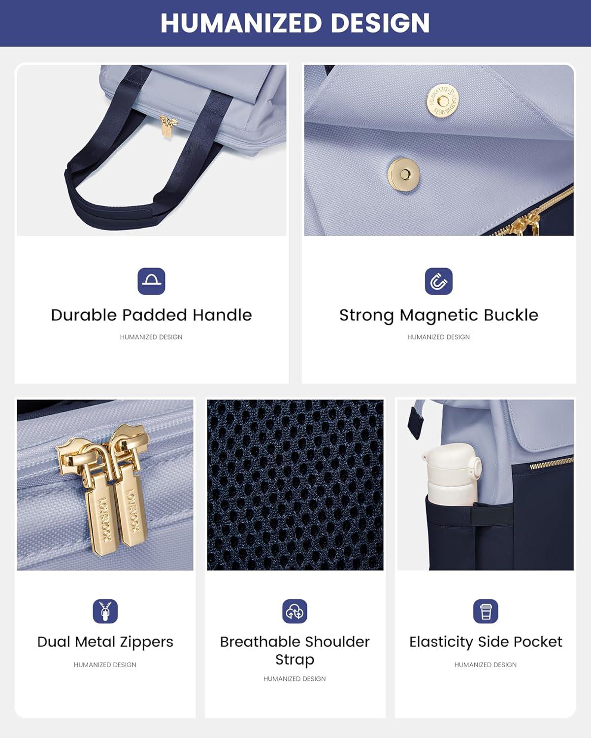 【Wide-Open & Anti-Theft Design】LOVEVOOK laptop bag for women uses a rectangular frame opening design to maintain large capacity and facilitate your quick access.The anti-theft pocket on the back makes your valuables safer and your travel easier.