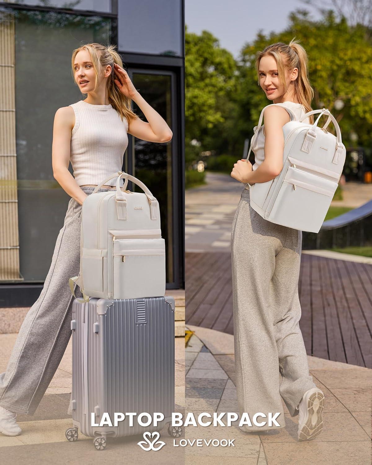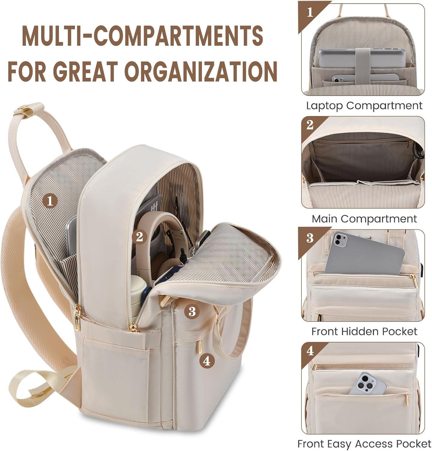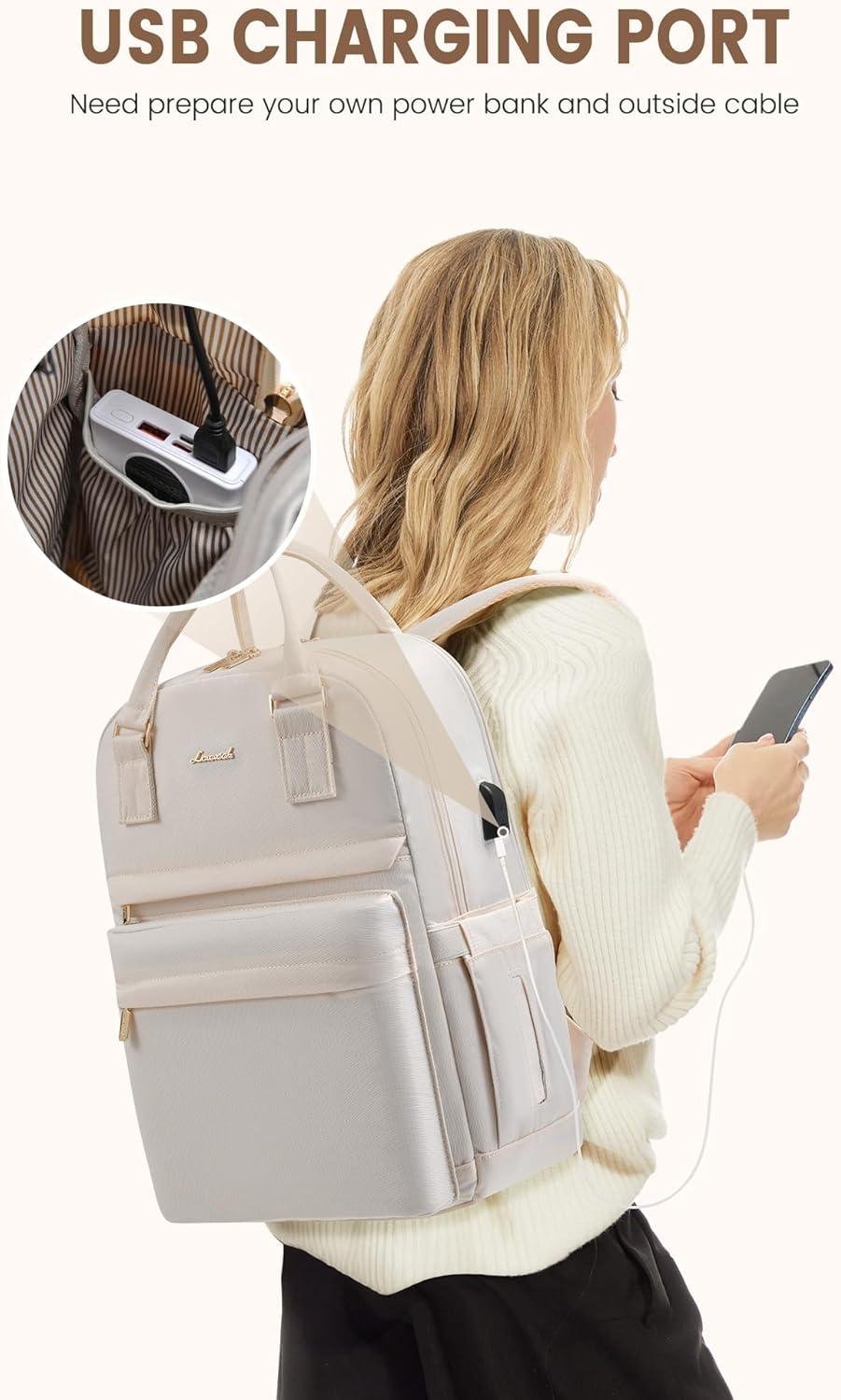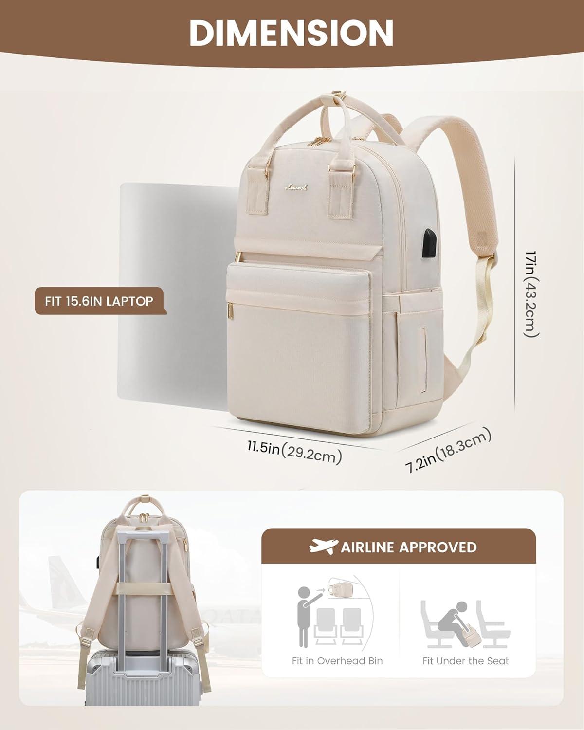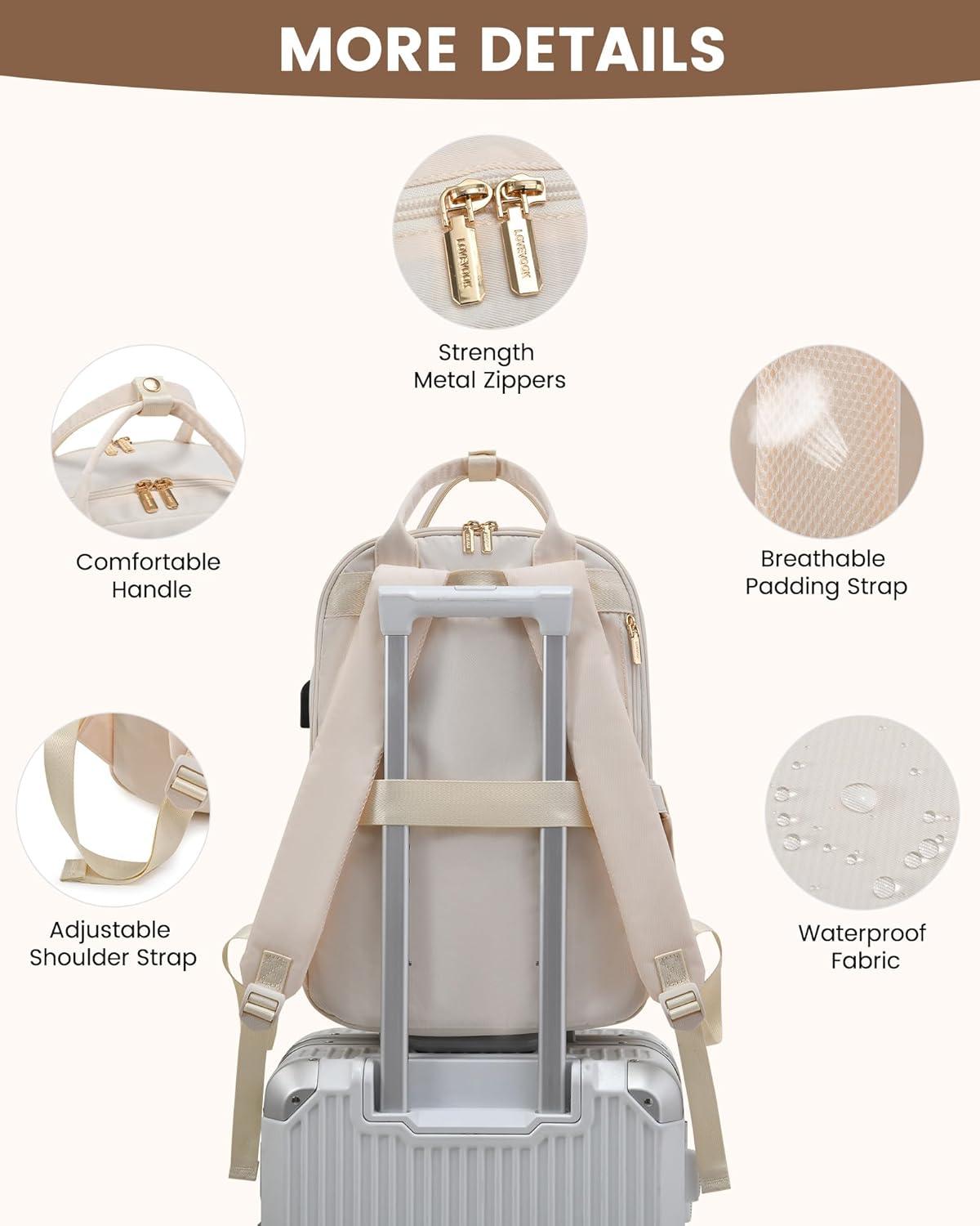 imageLOVEVOOK Laptop Backpack for Women Men 156 Inch Laptop Bag with USB Port Fashion Waterproof Backpacks Teacher Nurse Stylish Travel Bags Vintage Daypacks Bookbag for College School WorkBeige