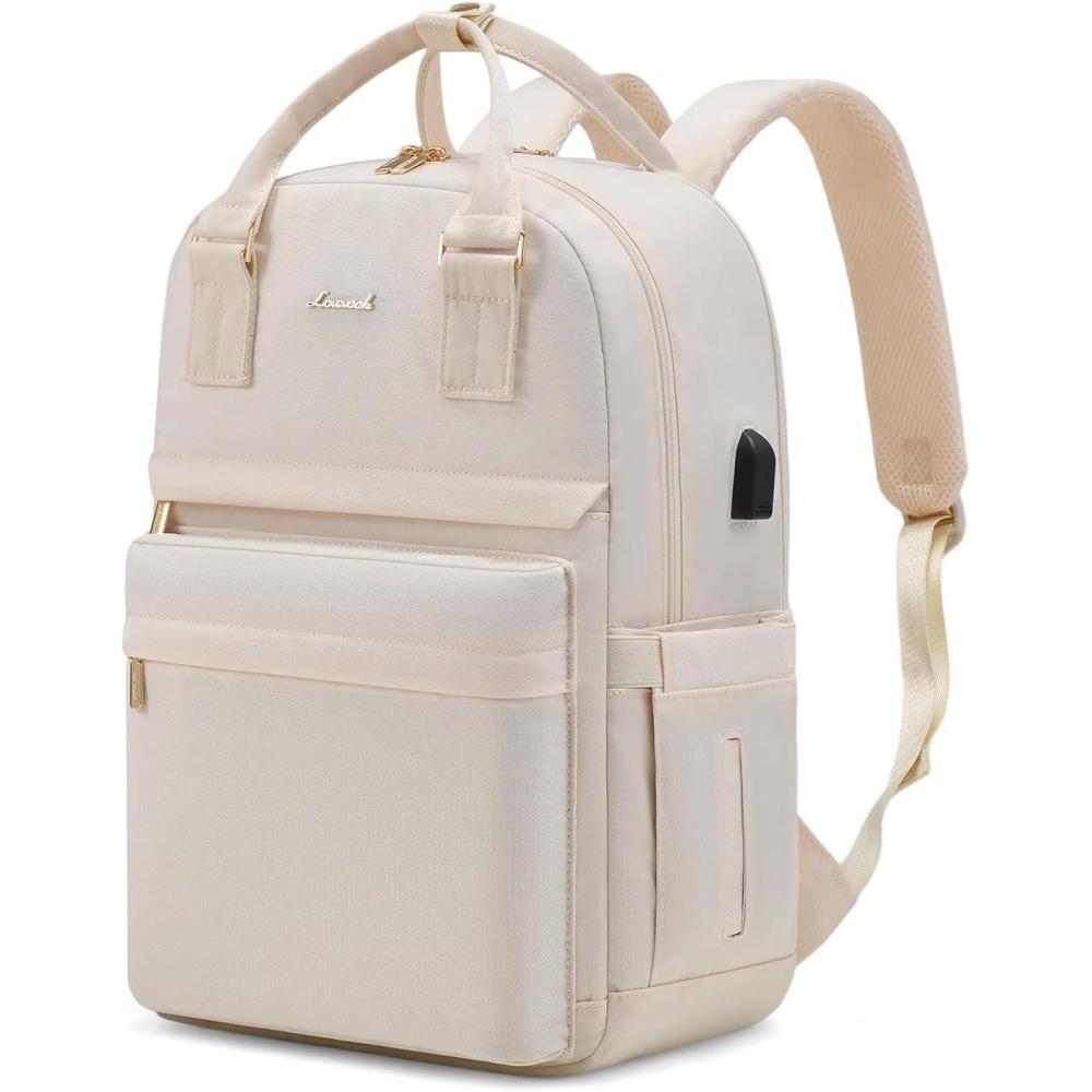 LOVEVOOK Laptop Backpack for Women Men 15.6 Inch Laptop Bag with USB Port Fashion Waterproof Backpacks Teacher Nurse Stylish Travel Bags Vintage Daypacks Bookbag for College School Work(Beige)
