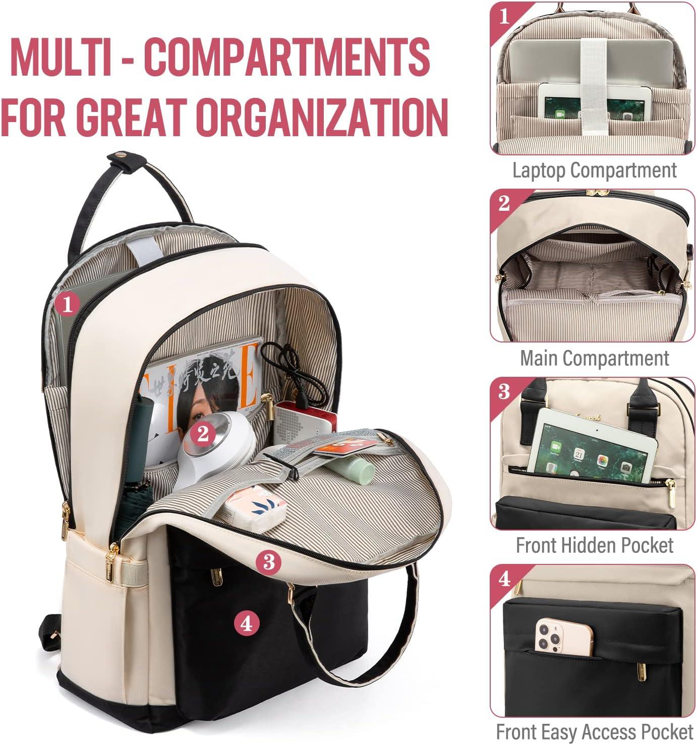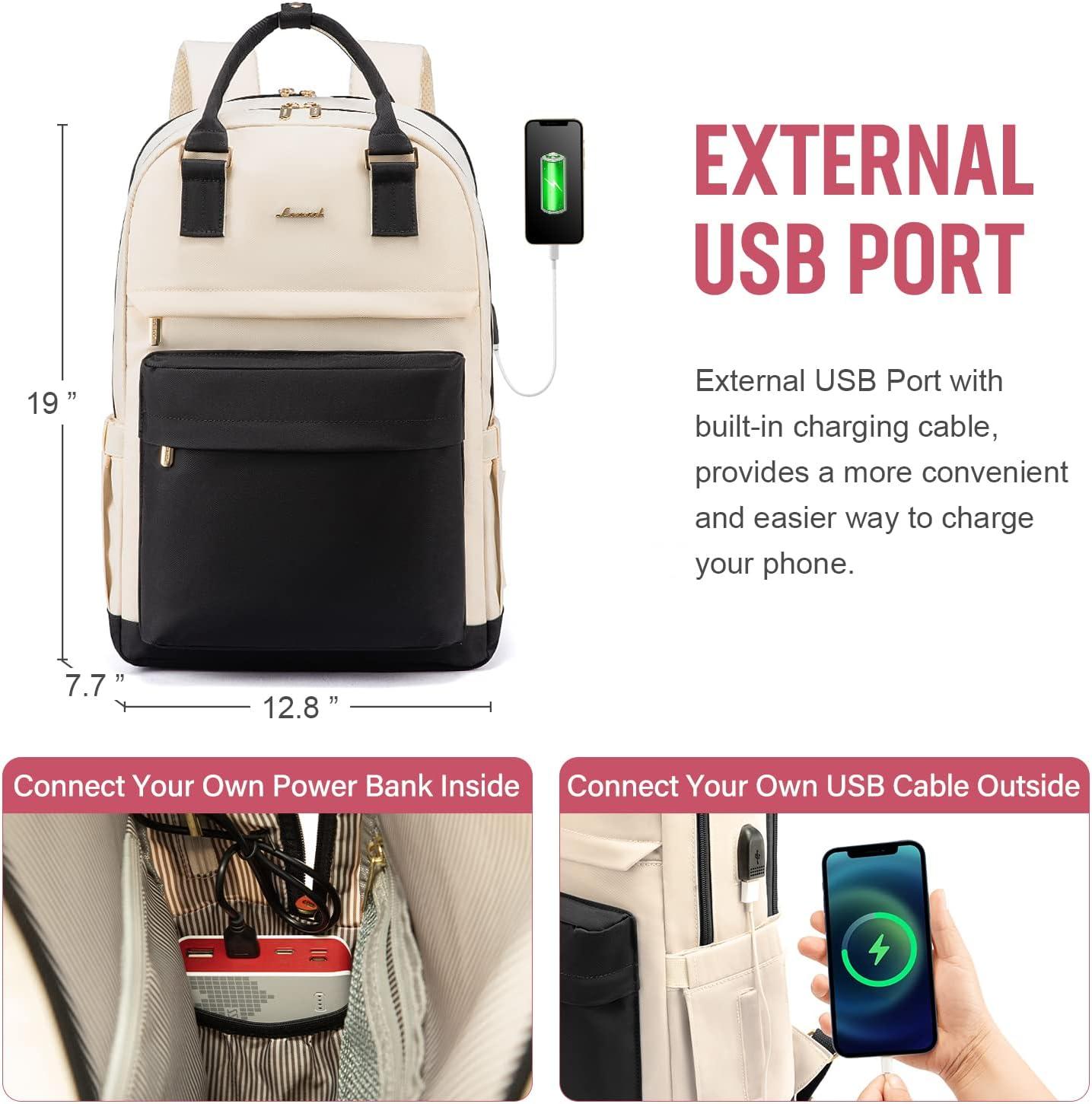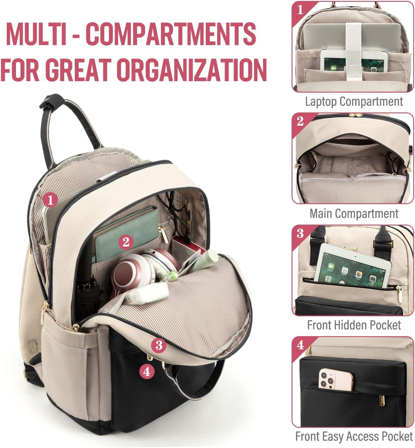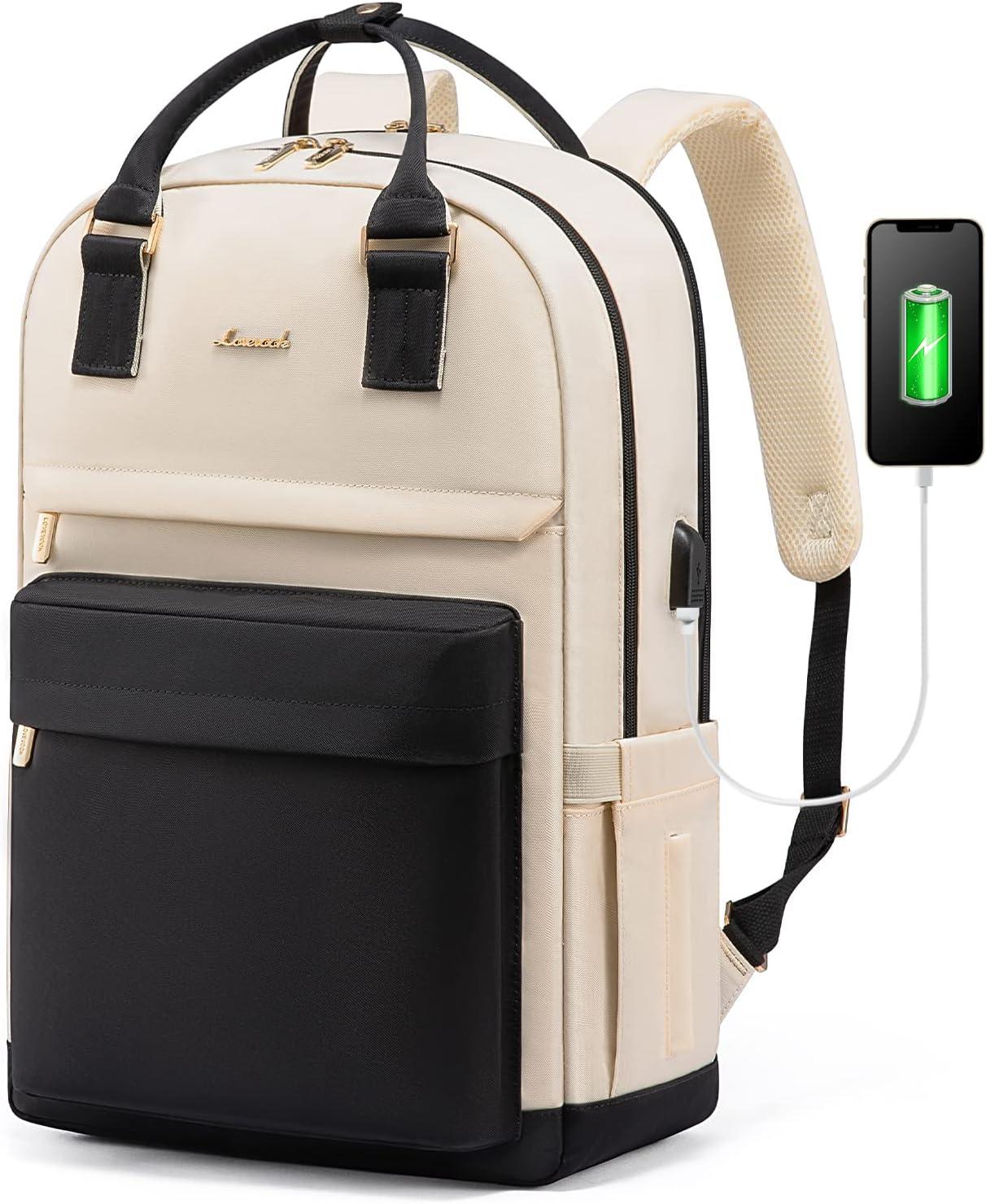 imageLOVEVOOK Laptop Backpack for Women Men 156 Inch Laptop Bag with USB Port Fashion Waterproof Backpacks Teacher Nurse Stylish Travel Bags Vintage Daypacks Bookbag for College School WorkBlack  Beige