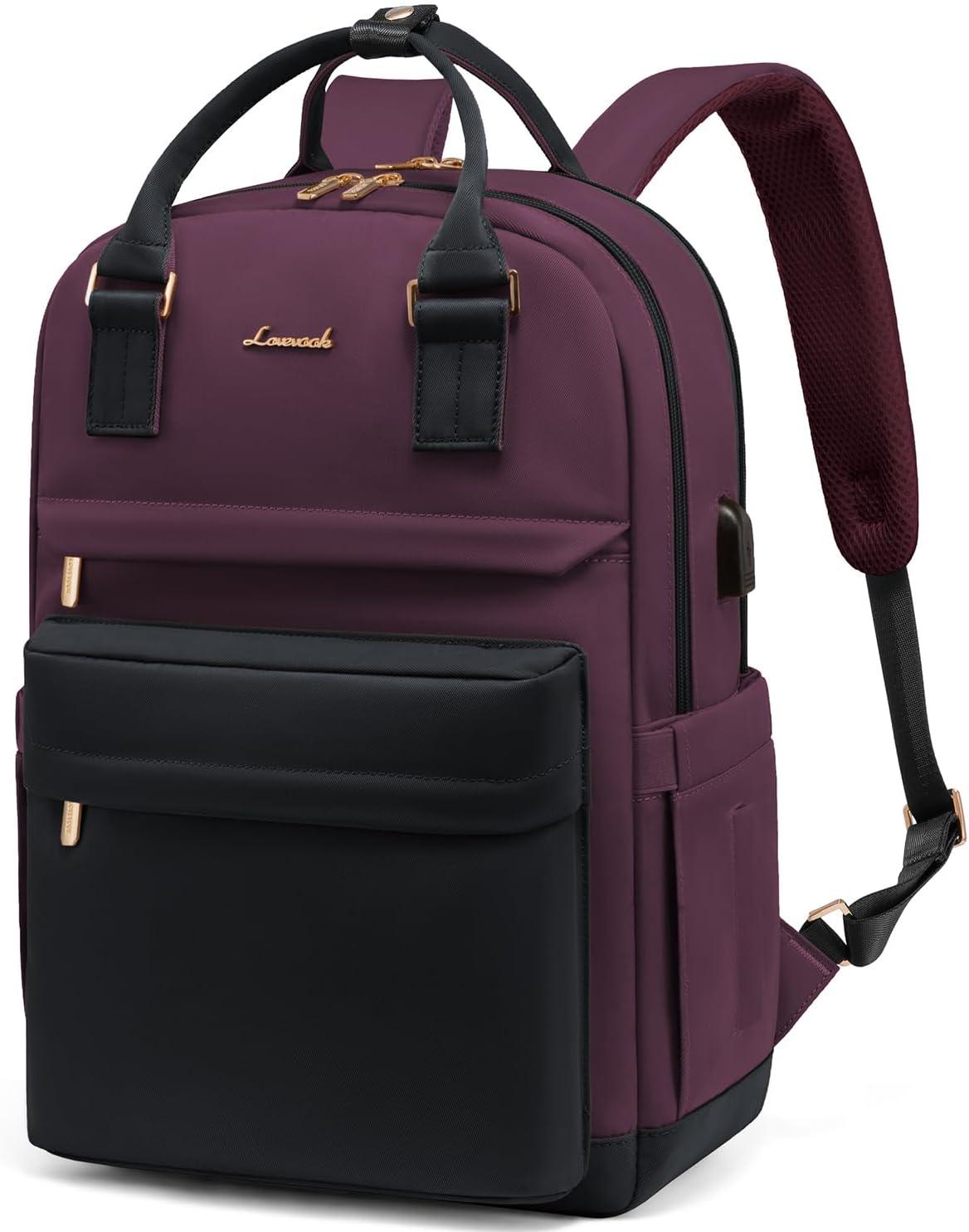 LOVEVOOK Laptop Backpack for Women Men 15.6 Inch Laptop Bag with USB Port Fashion Waterproof Backpacks Teacher Nurse Stylish Travel Bags Vintage Daypacks Bookbag for College School Work(Black & Dark Purple)
