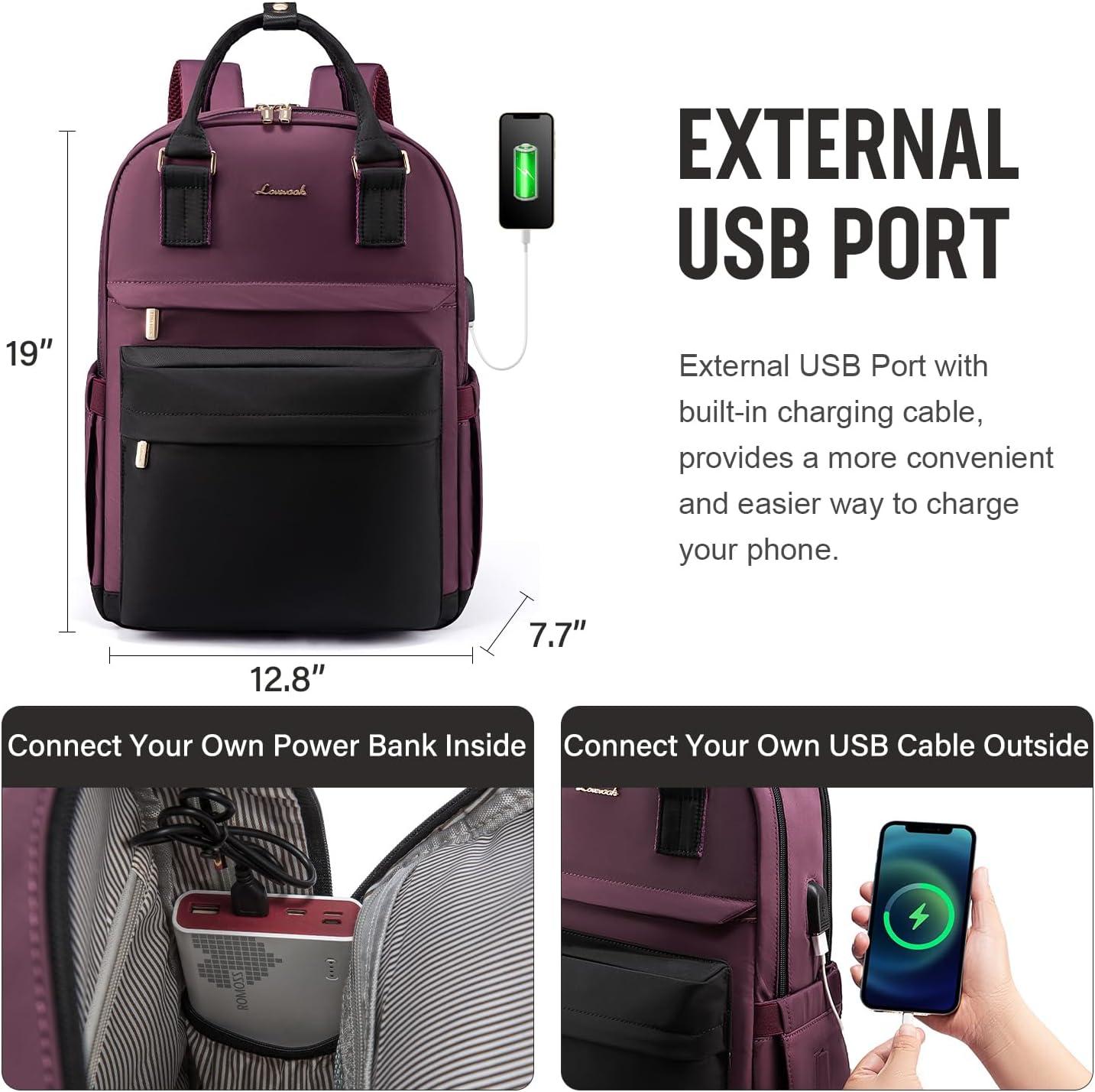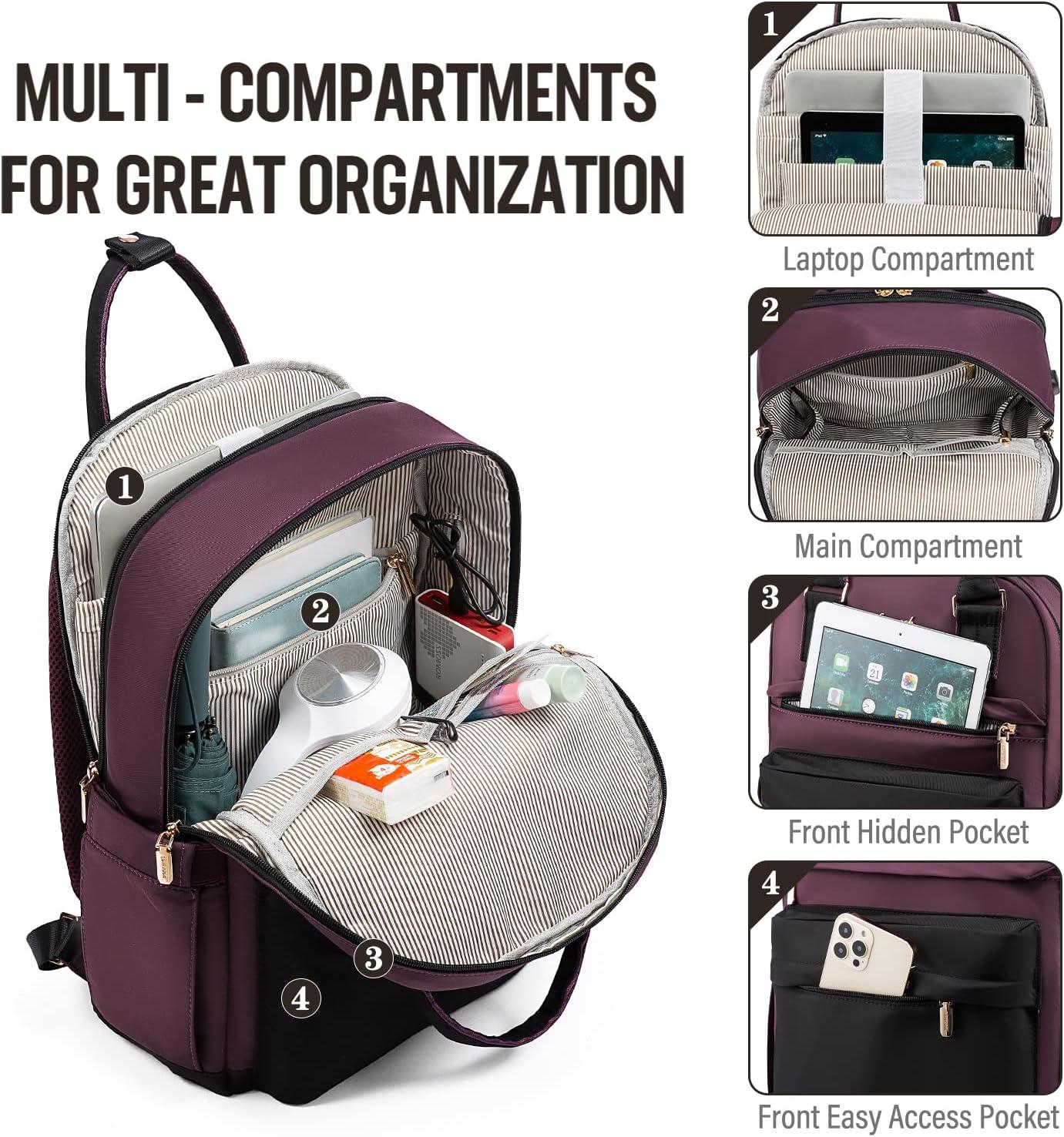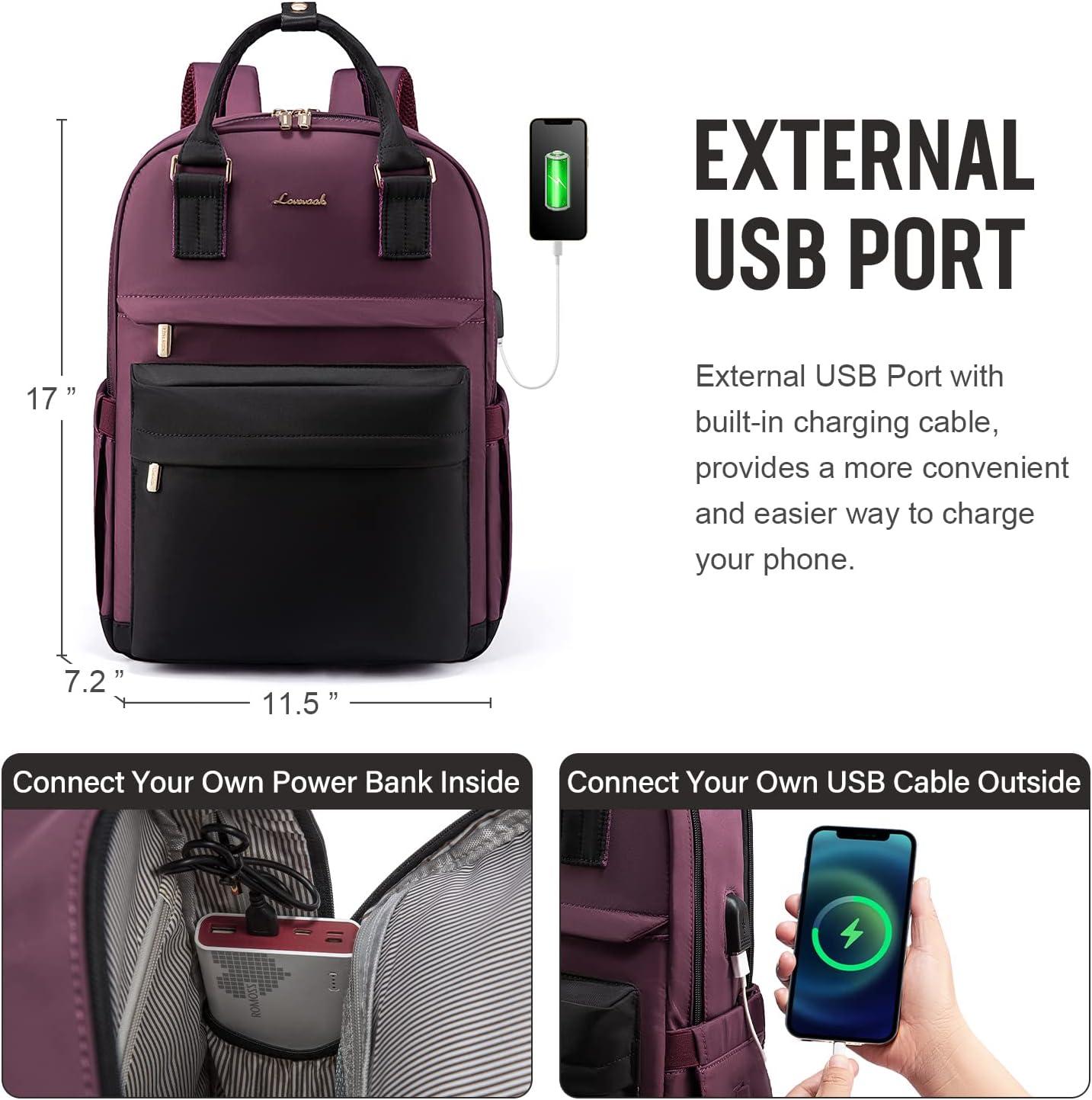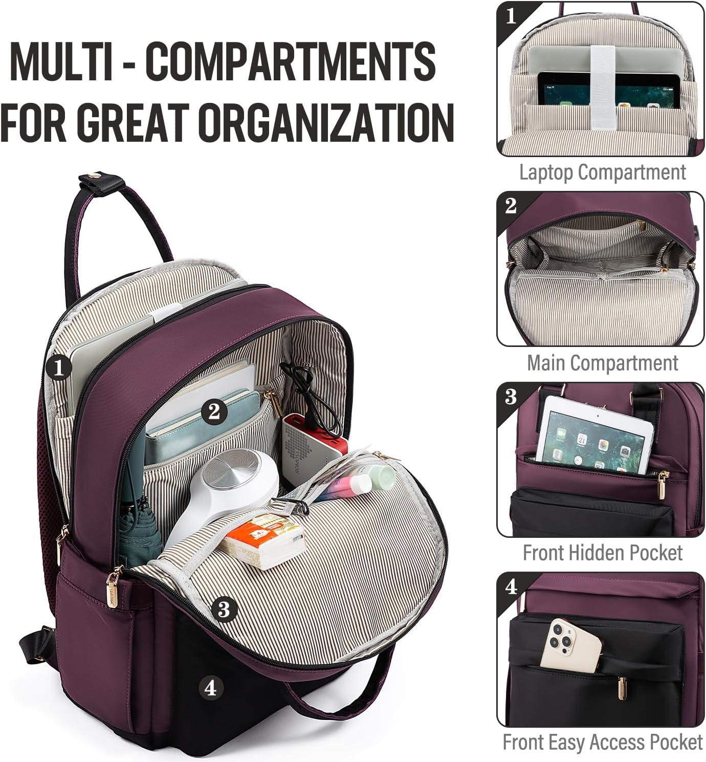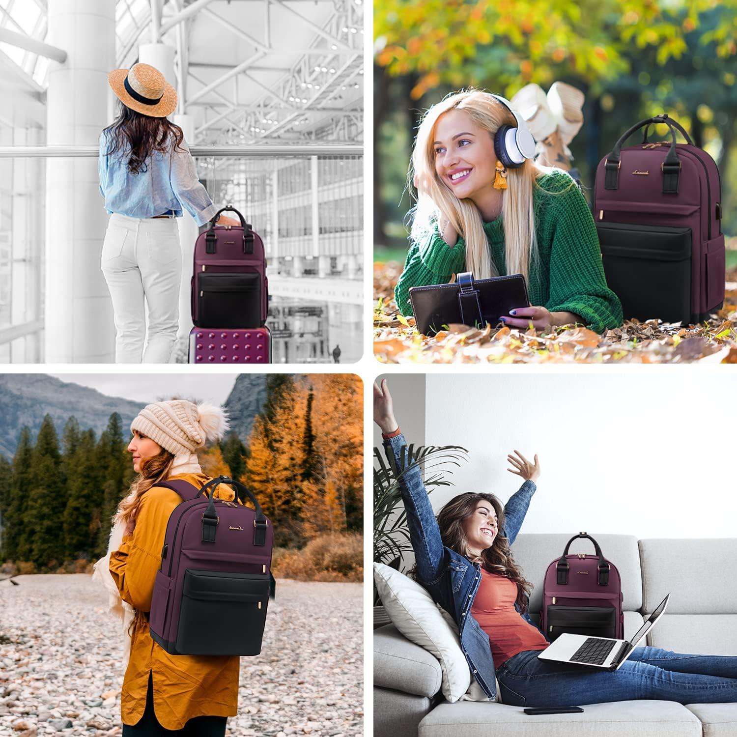imageLOVEVOOK Laptop Backpack for Women Men 156 Inch Laptop Bag with USB Port Fashion Waterproof Backpacks Teacher Nurse Stylish Travel Bags Vintage Daypacks Bookbag for College School WorkBlack  Dark Purple