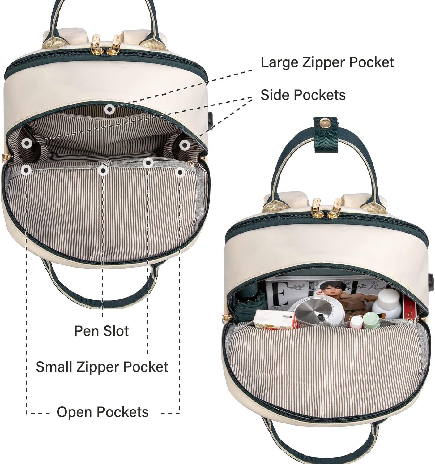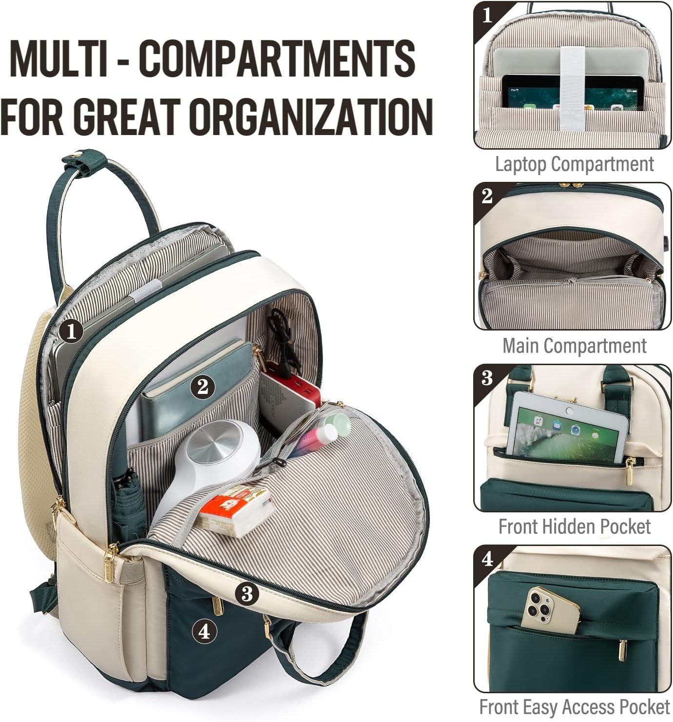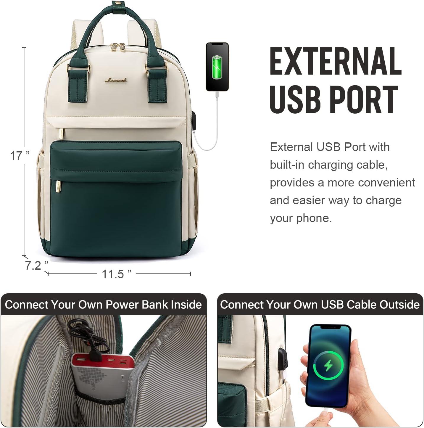 imageLOVEVOOK Laptop Backpack for Women Men 156 Inch Laptop Bag with USB Port Fashion Waterproof Backpacks Teacher Nurse Stylish Travel Bags Vintage Daypacks Bookbag for College School WorkGreen  Beige