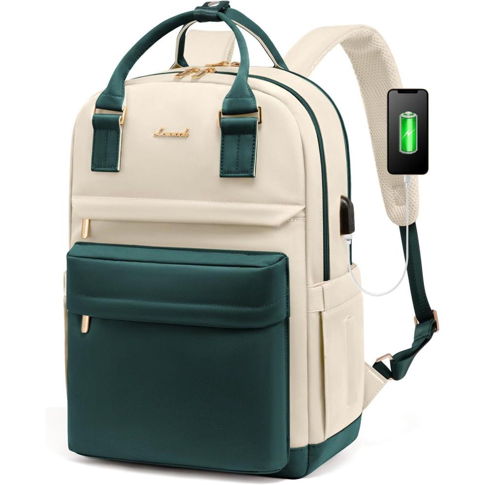 LOVEVOOK Laptop Backpack for Women Men 15.6 Inch Laptop Bag with USB Port Fashion Waterproof Backpacks Teacher Nurse Stylish Travel Bags Vintage Daypacks Bookbag for College School Work(Green & Beige)