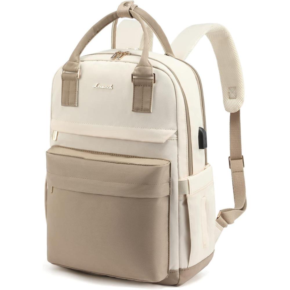 LOVEVOOK Laptop Backpack for Women Men 15.6 Inch Laptop Bag with USB Port Fashion Waterproof Backpacks Teacher Nurse Stylish Travel Bags Vintage Daypacks Bookbag for College School Work(Khaki & Beige)