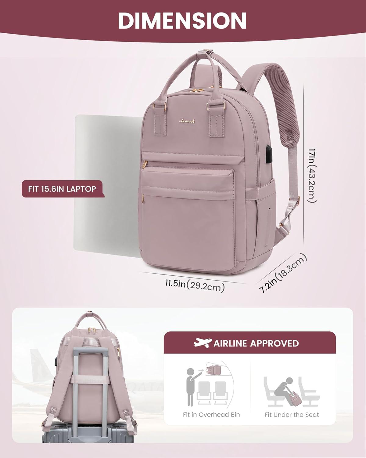 imageLOVEVOOK Laptop Backpack for Women Men 156 Inch Laptop Bag with USB Port Fashion Waterproof Backpacks Teacher Nurse Stylish Travel Bags Vintage Daypacks Bookbag for College School WorkLight Pink