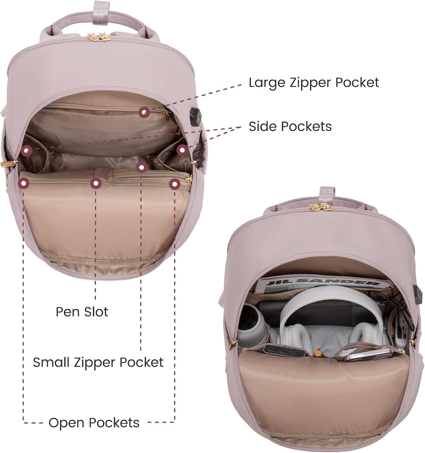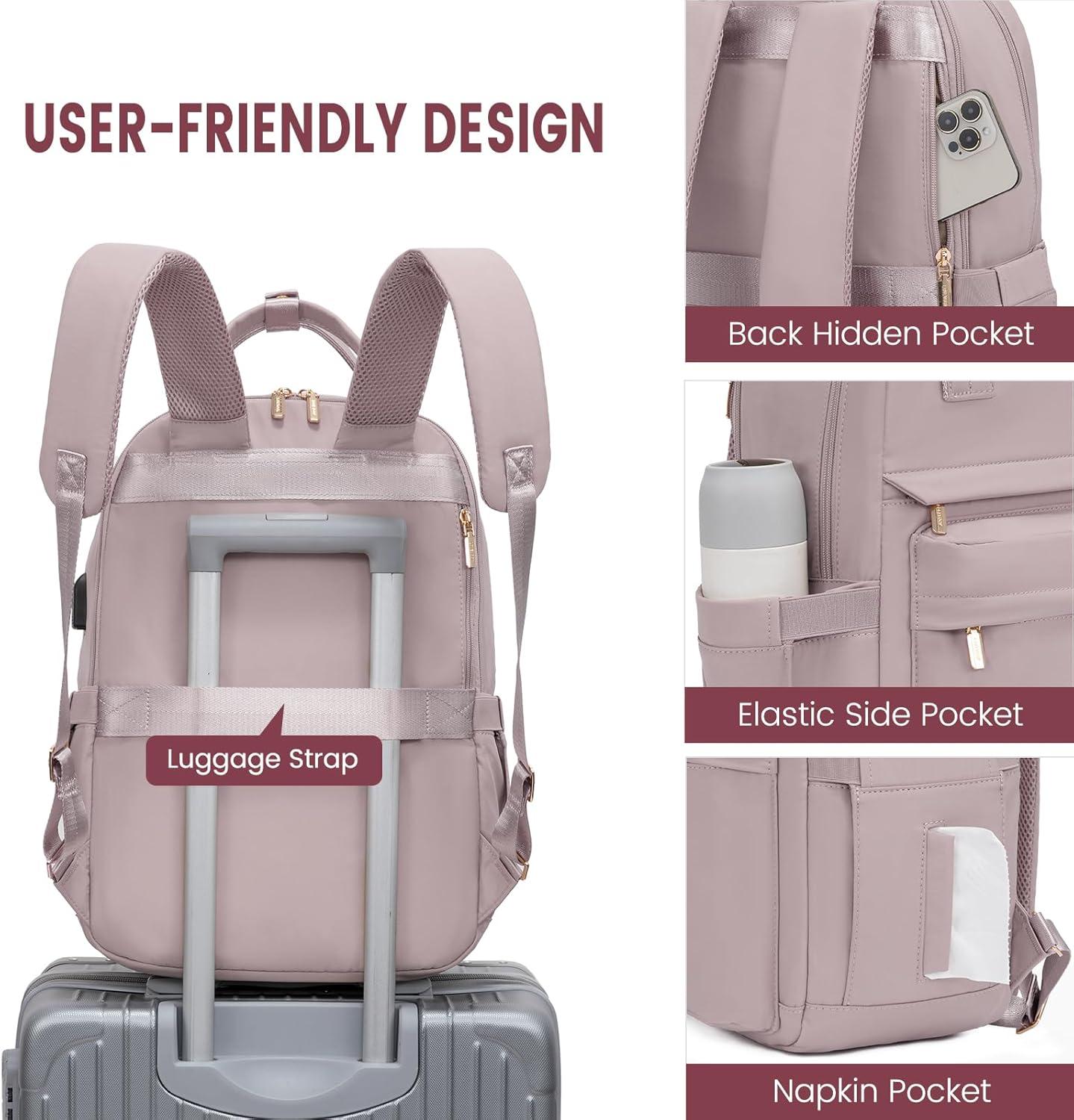 LOVEVOOK Laptop Backpack for Women Men 15.6 Inch Laptop Bag with USB Port Fashion Waterproof Backpacks Teacher Nurse Stylish Travel Bags Vintage Daypacks Bookbag for College School Work(Light Pink)