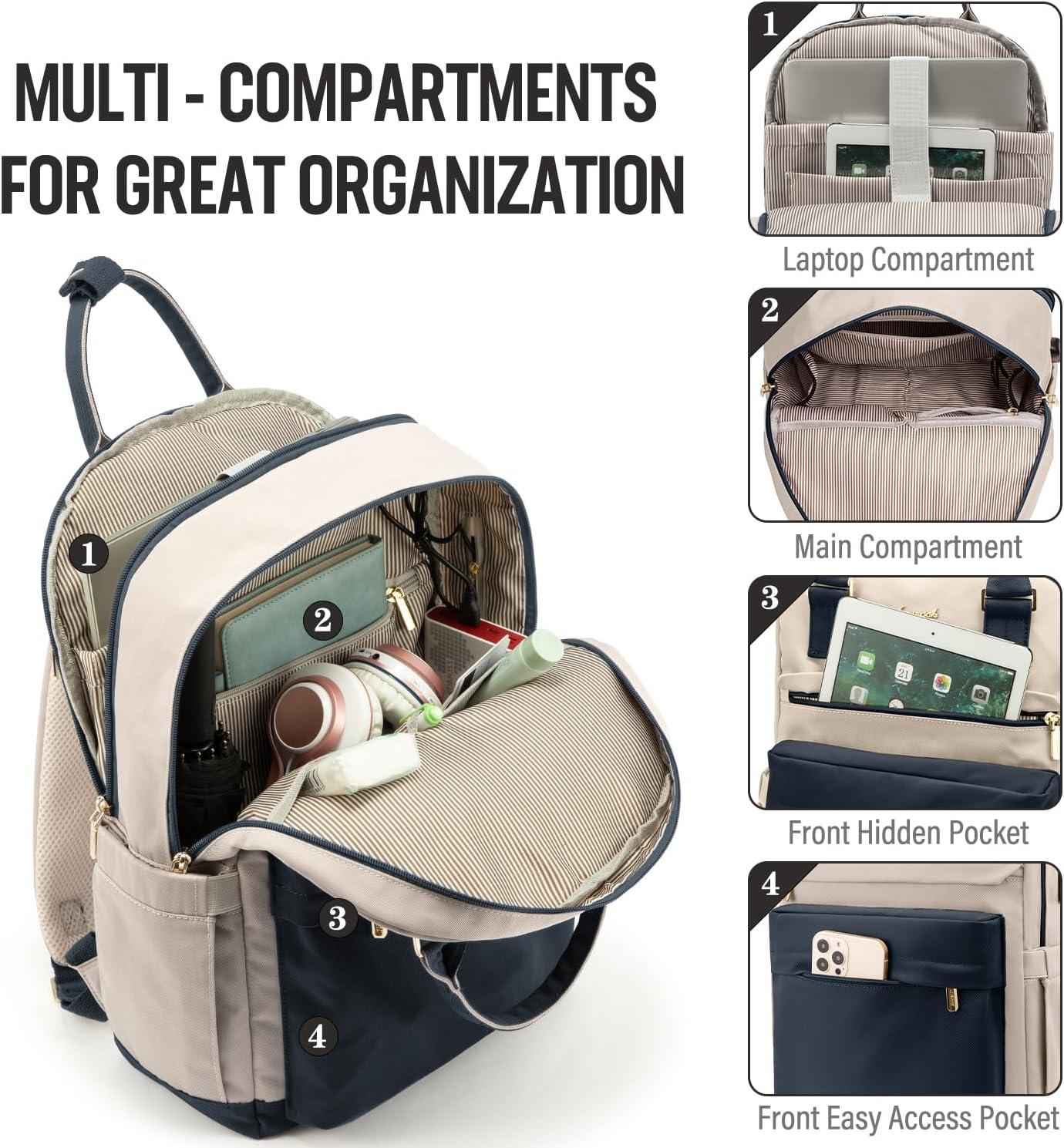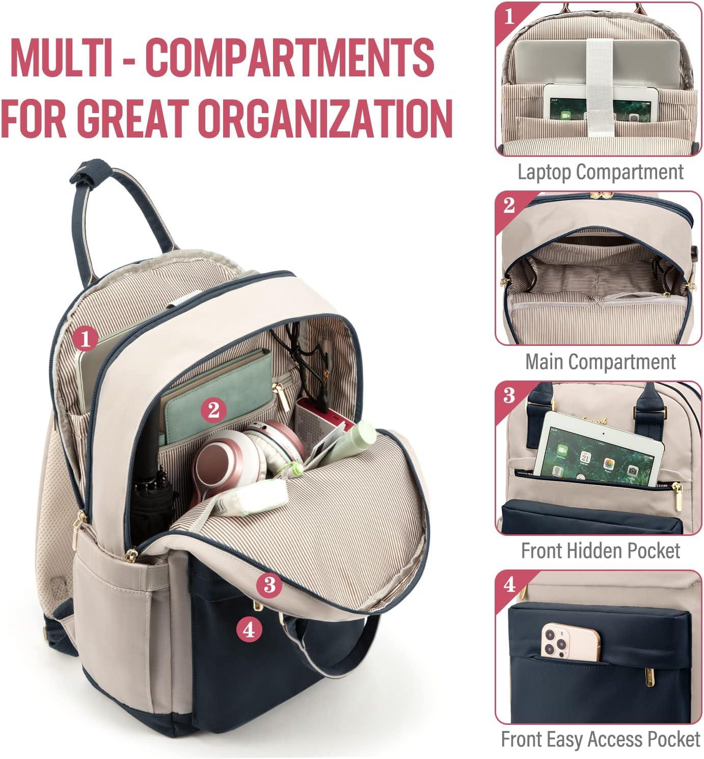 imageLOVEVOOK Laptop Backpack for Women Men 156 Inch Laptop Bag with USB Port Fashion Waterproof Backpacks Teacher Nurse Stylish Travel Bags Vintage Daypacks Bookbag for College School WorkNavy  Dark Apricot