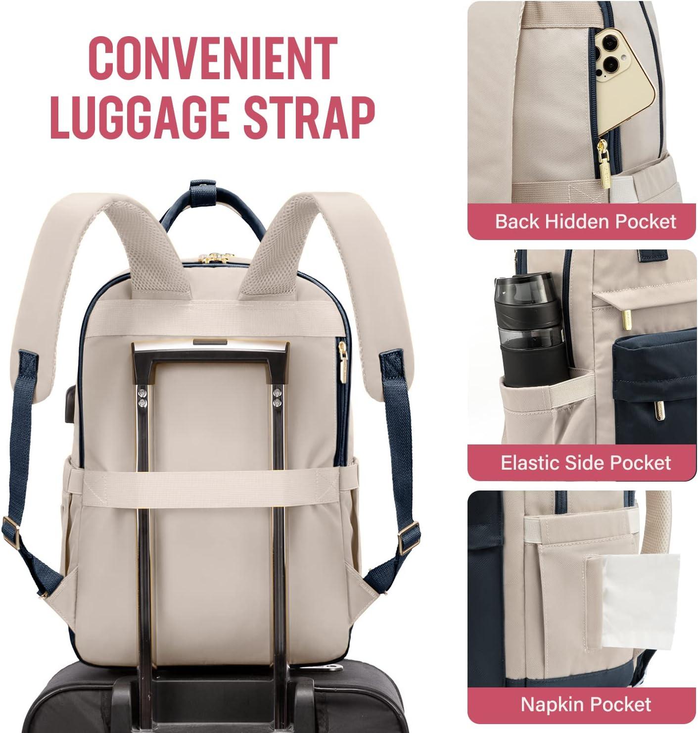 imageLOVEVOOK Laptop Backpack for Women Men 156 Inch Laptop Bag with USB Port Fashion Waterproof Backpacks Teacher Nurse Stylish Travel Bags Vintage Daypacks Bookbag for College School WorkNude