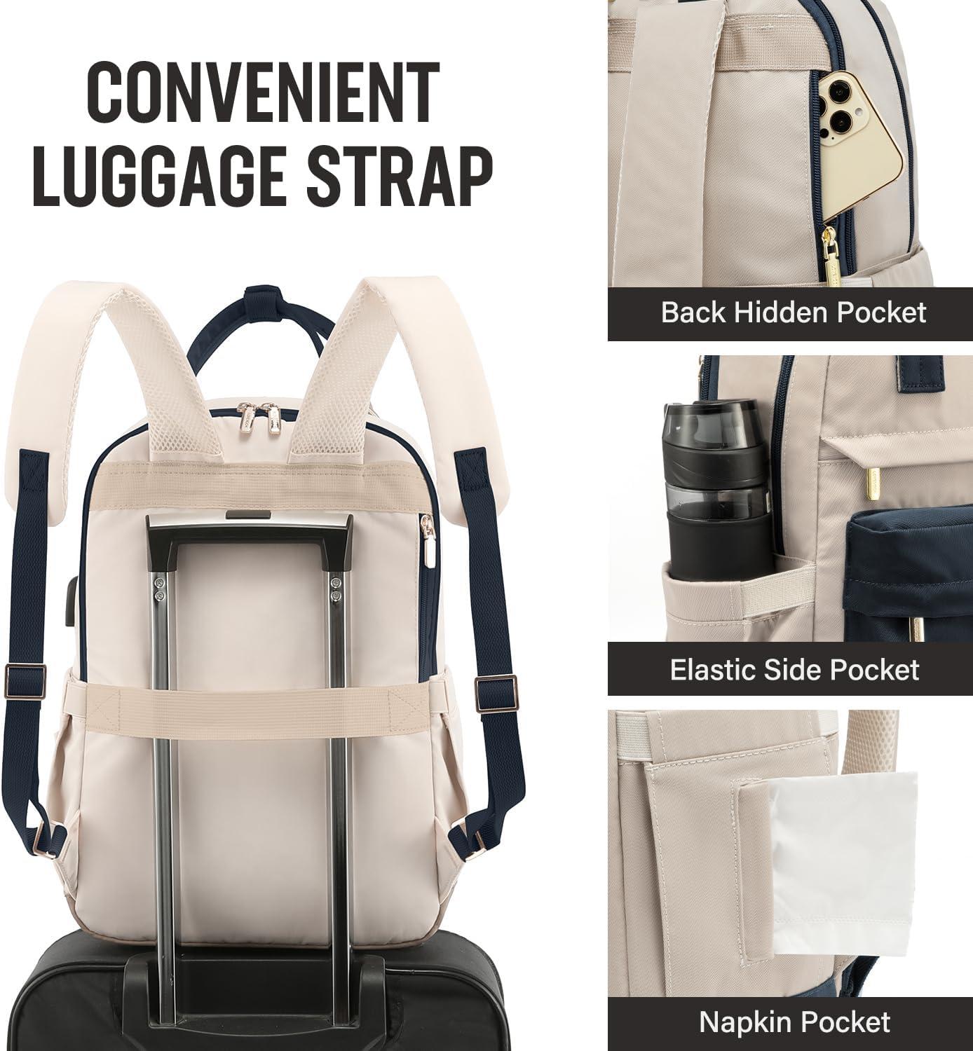 LOVEVOOK Laptop Backpack for Women Men 15.6 Inch Laptop Bag with USB Port Fashion Waterproof Backpacks Teacher Nurse Stylish Travel Bags Vintage Daypacks Bookbag for College School Work(Nude)