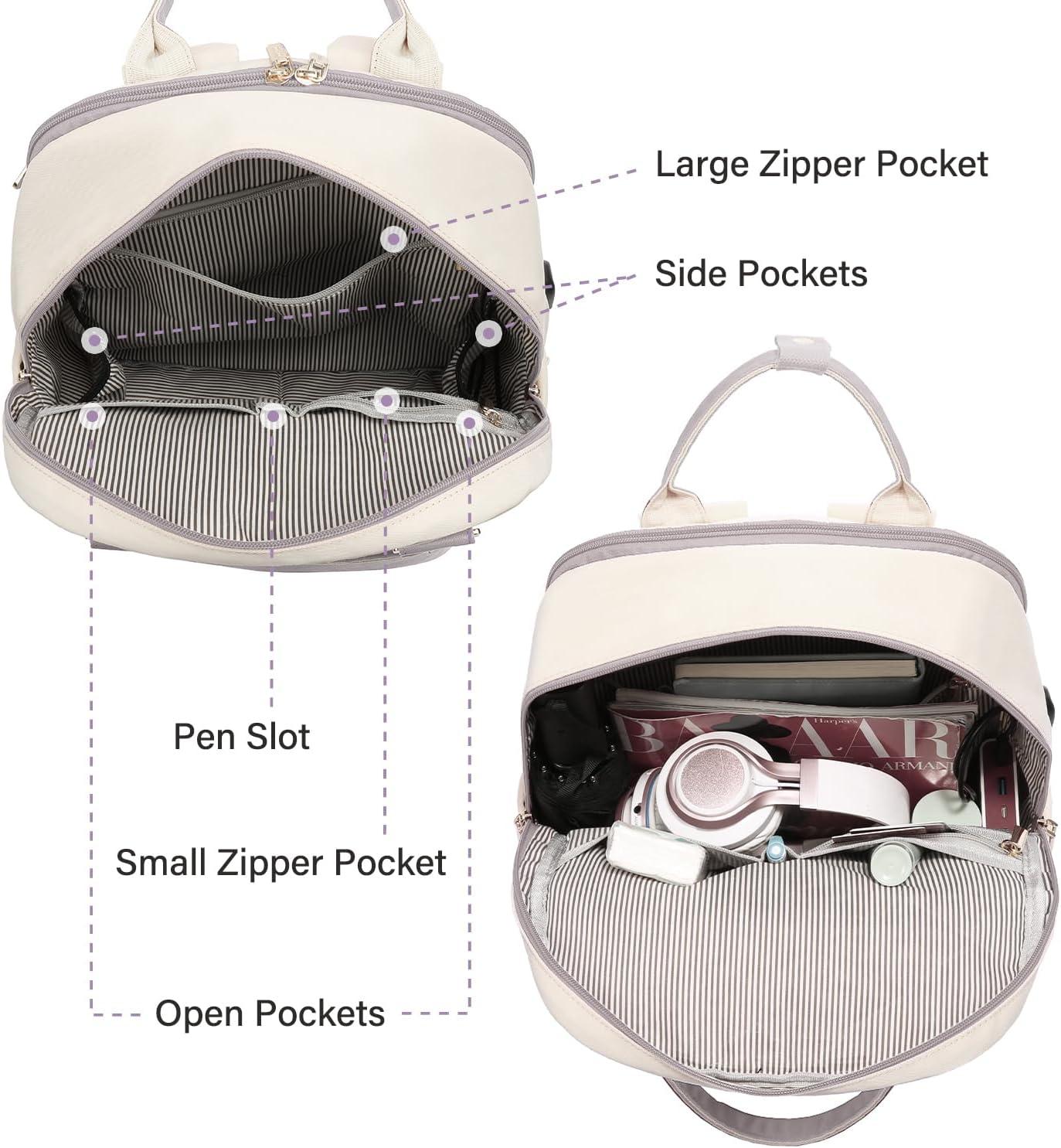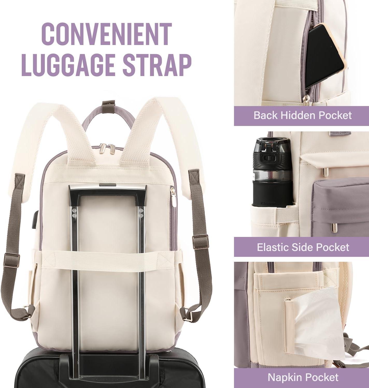 LOVEVOOK Laptop Backpack for Women Men 15.6 Inch Laptop Bag with USB Port Fashion Waterproof Backpacks Teacher Nurse Stylish Travel Bags Vintage Daypacks Bookbag for College School Work(Nude & Pinkish Beige)