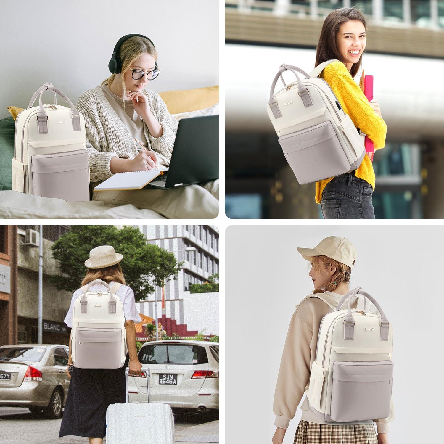 imageLOVEVOOK Laptop Backpack for Women Men 156 Inch Laptop Bag with USB Port Fashion Waterproof Backpacks Teacher Nurse Stylish Travel Bags Vintage Daypacks Bookbag for College School WorkNude