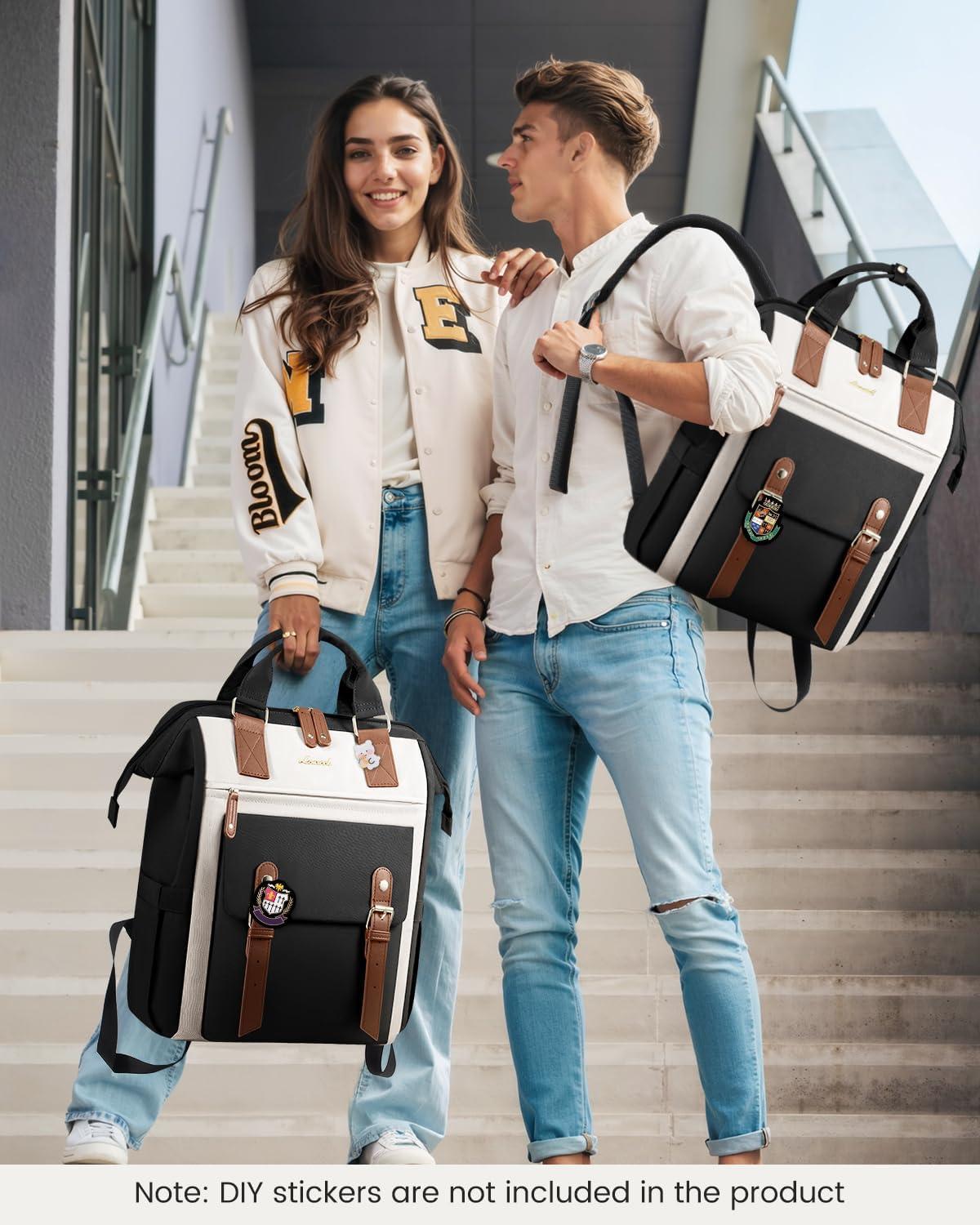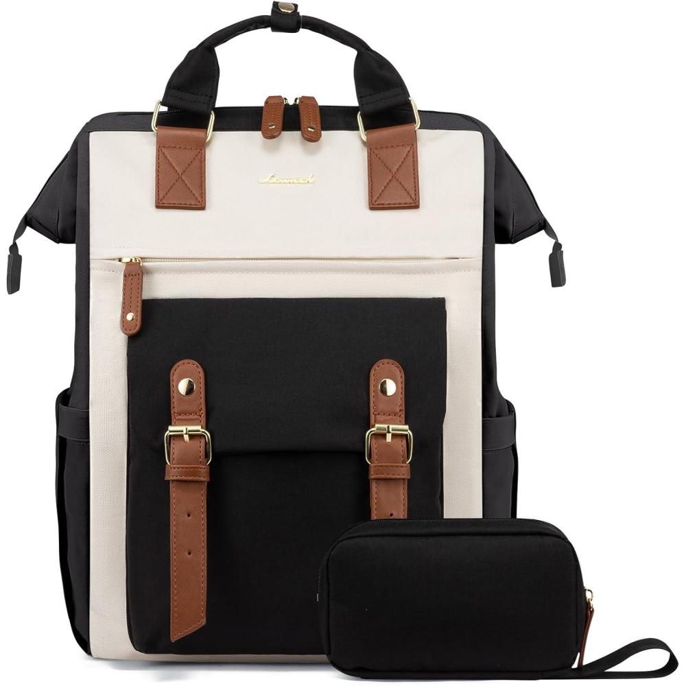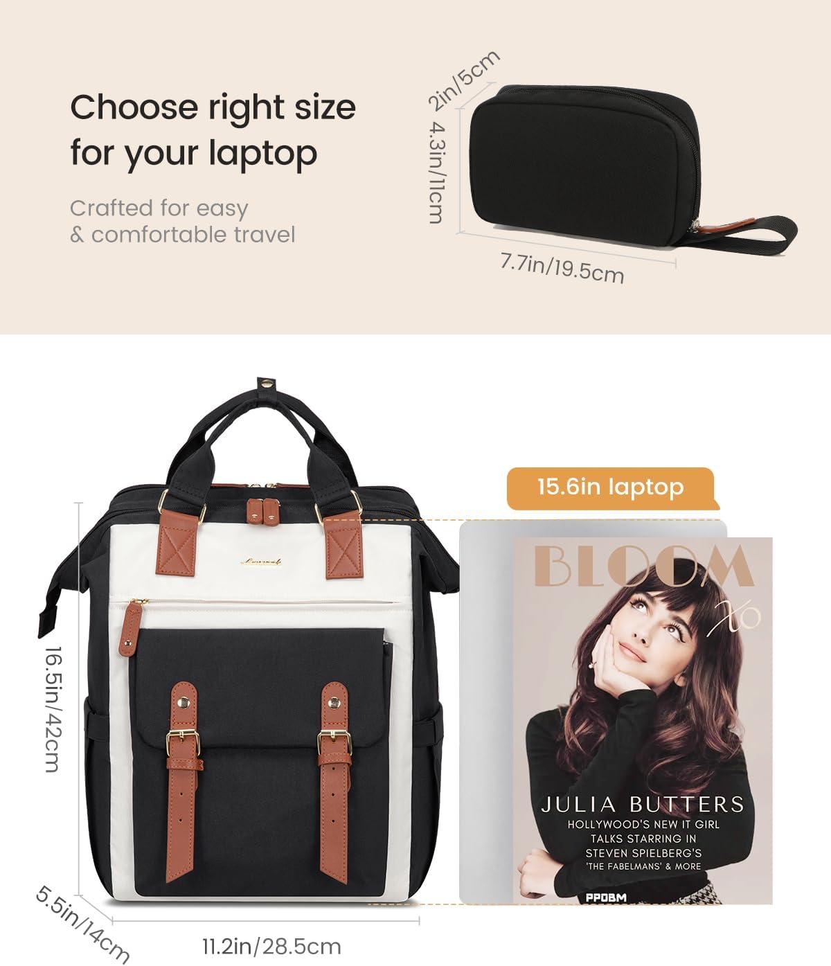 LOVEVOOK Laptop Backpack for Women, Teacher Bag Work Backpack Purse Laptop Computer Back Pack, Business Travel Backpack, Nursing College School Bookbag, 15.6 Inch, Black-Beige-Brown(Black-beige-brown)