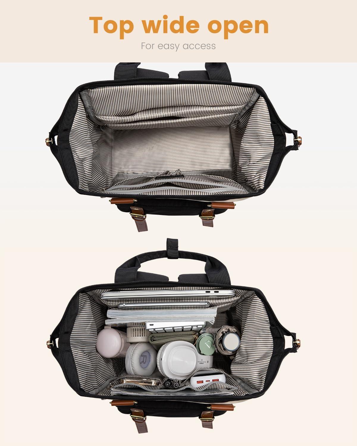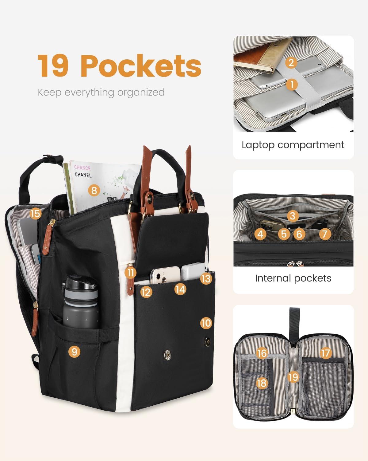 LOVEVOOK Laptop Backpack for Women, Teacher Bag Work Backpack Purse Laptop Computer Back Pack, Business Travel Backpack, Nursing College School Bookbag, 15.6 Inch, Black-Beige-Brown(Black-brown (Upgraded))