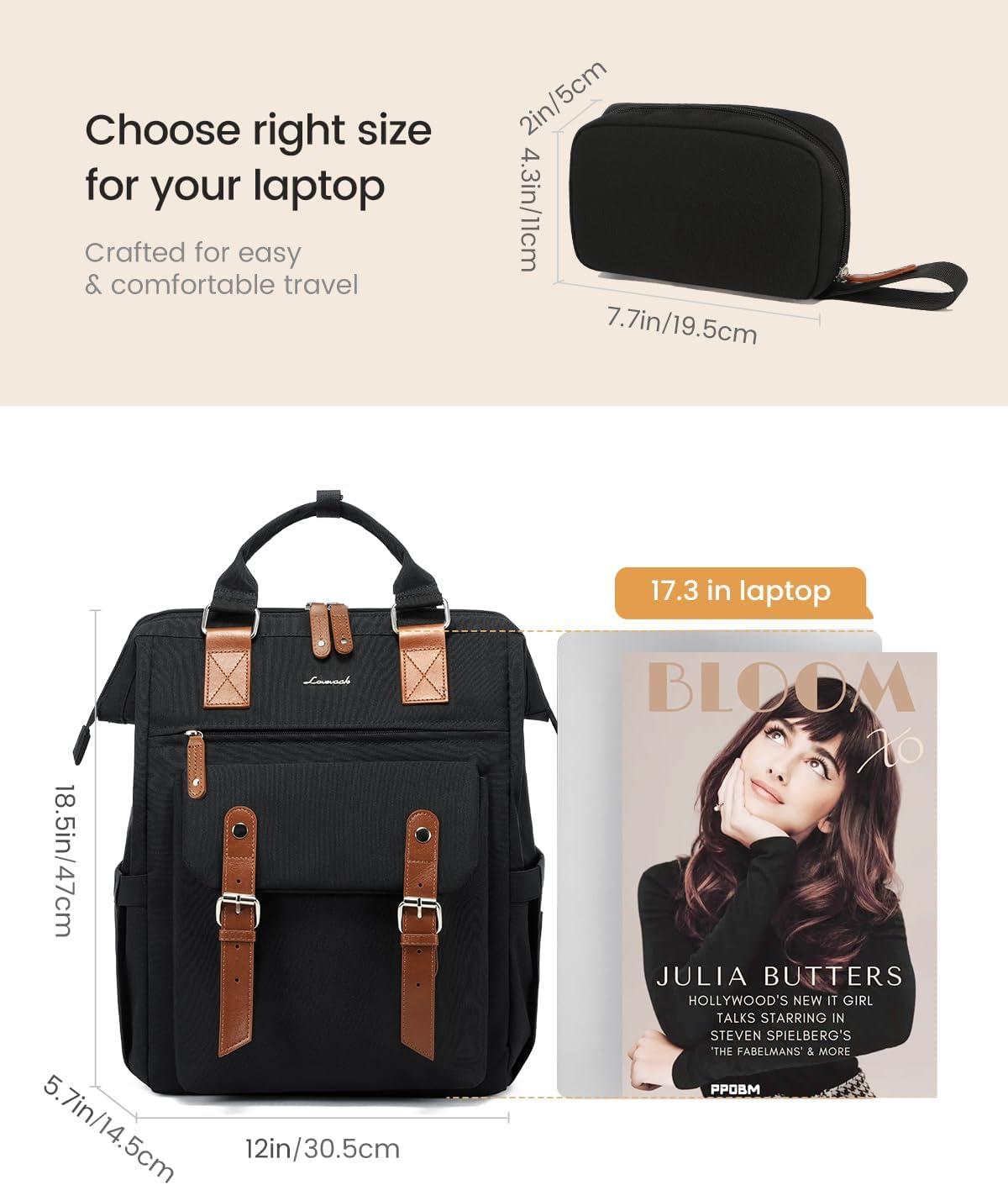 Durable Backpack Purse for Women: Dimension-11.2″L x 5.5″W x 16.5″H. Electronics Organizer Case Size: 7.7″L x 2″W x 4.3″H. Comes with a dust bag for storage. The padded backpack with laptop compartment, is a great laptop bag for women work, applicable to teachers, doctors, nurses, comutters. Easy to organize all supplies and fit up to 15.6″ laptops well.
